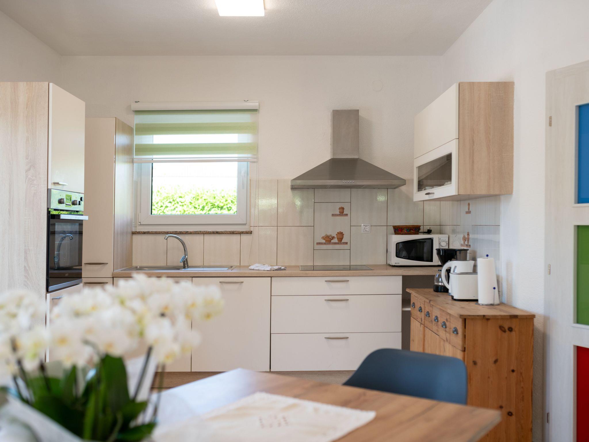 Inside, Villa Tara boasts a spacious interior with air-conditioning available throughout the property for your comfort during those warm Istrian days. The house comes equipped with 4 cozy bedrooms, ensuring a restful night's sleep for all guests. The 2 bathrooms, including a bath tub, cater to your preparation and relaxation needs. For your entertainment and convenience, a flat-screen TV is provided along with a washing machine for sole use. The kitchen is fully equipped, featuring a dishwasher, coffee machine, and an electric kettle, making meal preparation a breeze.