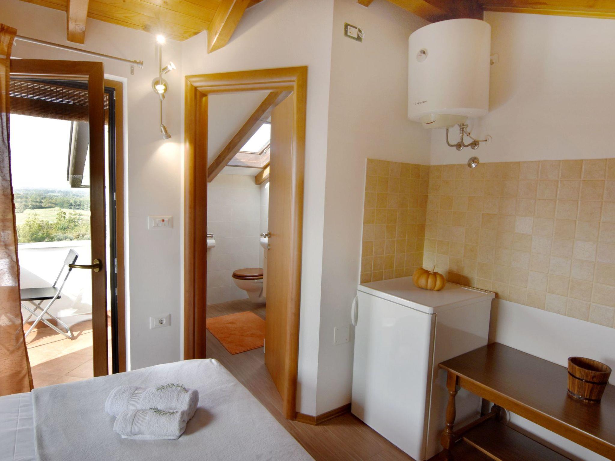 In the neighbourhood you will find an oasis of peace, surrounded by several private houses and beautiful nature. Lovers of tranquillity and green landscapes will get their money's worth here with meadows and walking paths nearby. For daily needs, there is a grocery shop in the village of Juricani, 2.5 km away. The centre of Umag with its supermarkets, beaches and numerous leisure activities is just a 10-minute drive away. The surroundings of Umag also offer opportunities for tennis, golf, water sports and much more, rounded off by excellent gastronomy.
