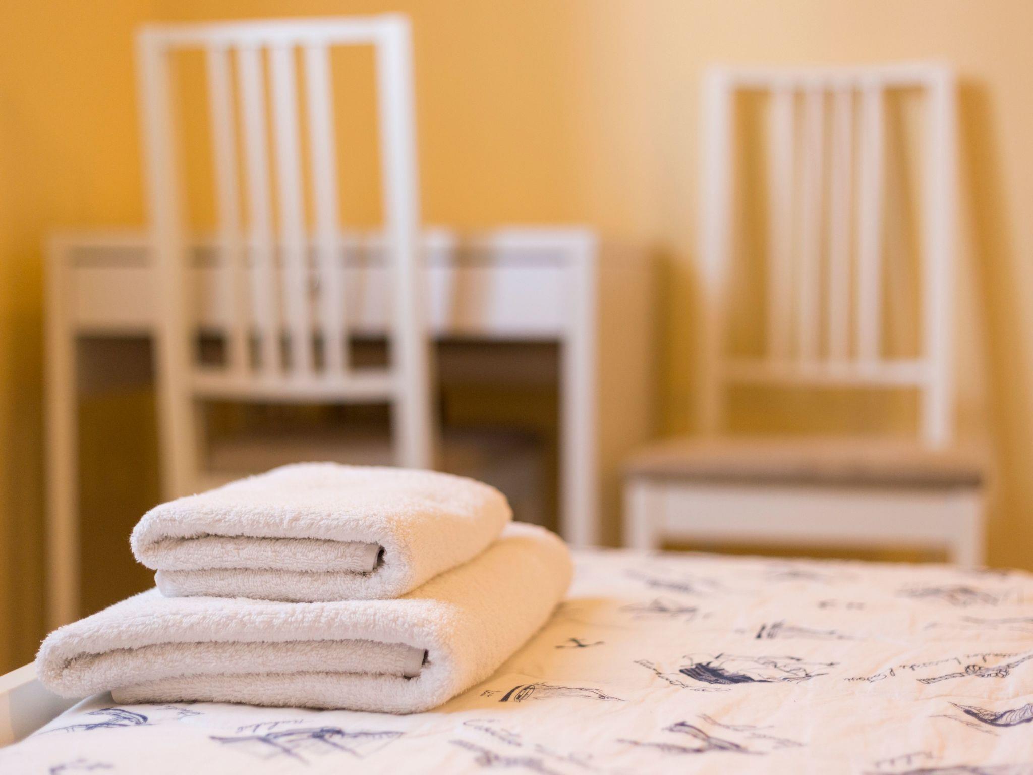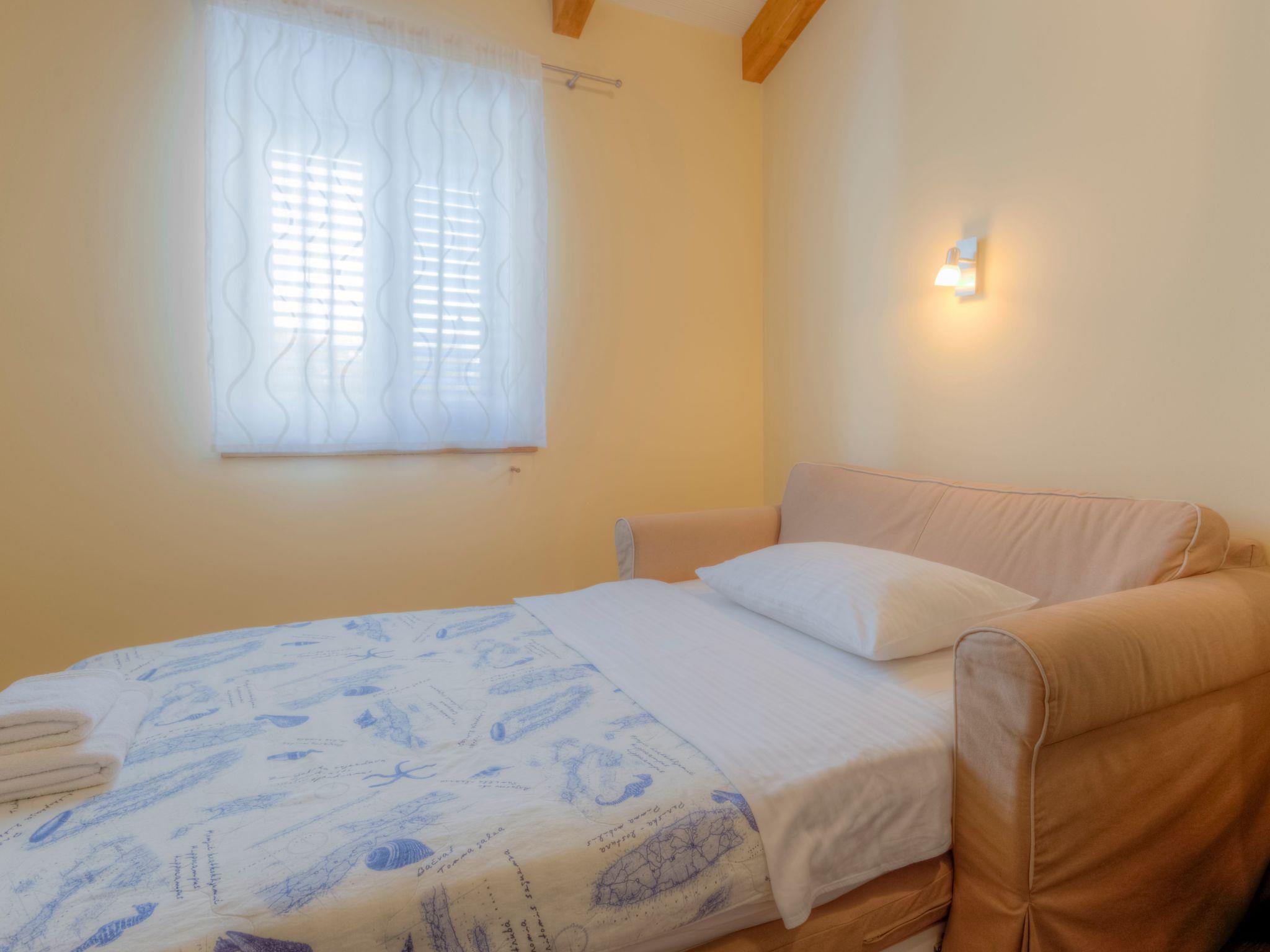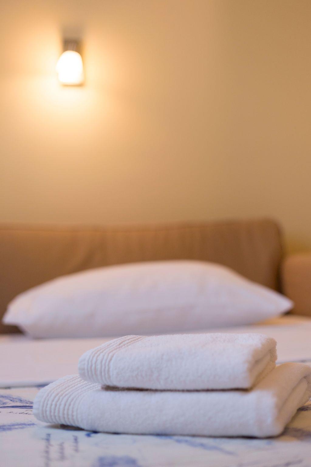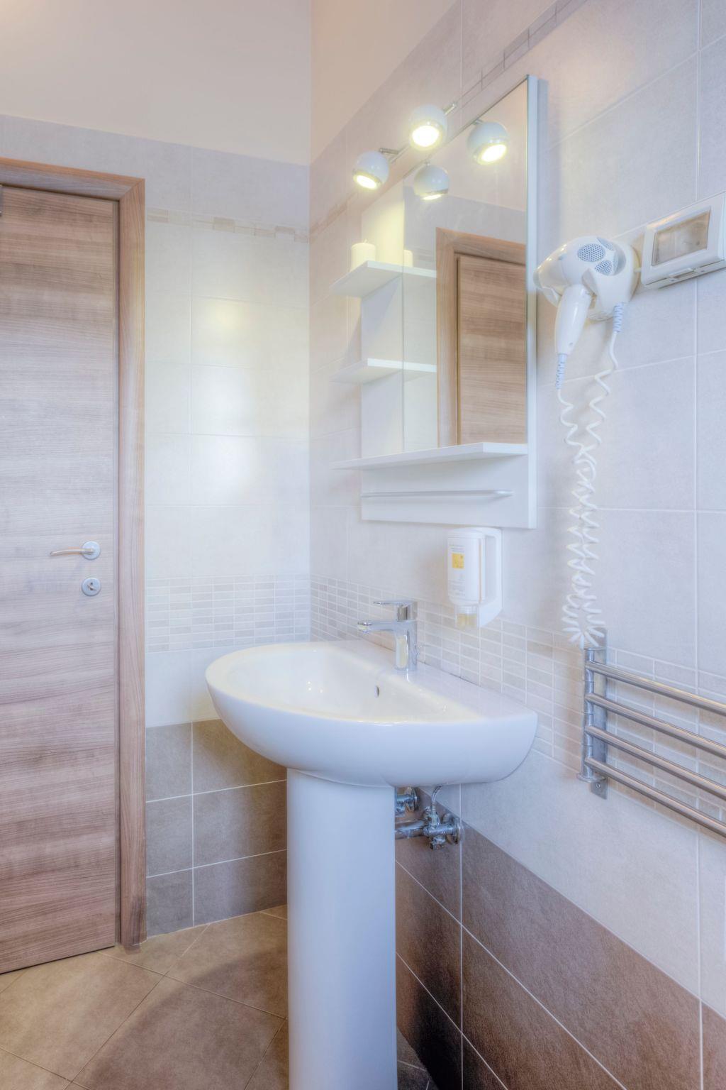 This apartment is modern and fully furnished. It is on the first floor and receives ample daylight. It has three rooms. Two bedrooms are with a double bed and one with a single bed of 120x200cm. There is also a sofa bed for children or teenagers in the living room. There is a fully-equipped, open kitchen with a living and dining area, with a dining table and chairs. Here there is also a TV with satellite reception and wireless Internet access is available. The two bathrooms have a shower and WC and there is also an outdoor shower. A hairdryer and an iron are provided.