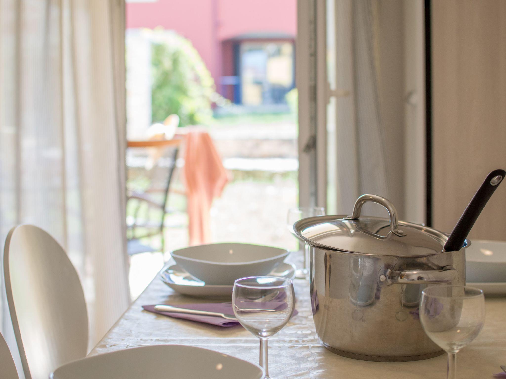 Inside, each apartment is thoughtfully designed to cater to your comfort and needs. The one-bedroom apartment for four people, situated on the ground floor, is furnished to enhance your stay. The cozy living/dining room features satellite TV and a double sofa bed, ensuring ample space for relaxation. The bedroom, with its comfortable double bed, promises a restful night's sleep. The open kitchen is fully equipped with a filter coffee machine, dishwasher, and electric kettle, making meal preparation a breeze. Additionally, the presence of air conditioning in parts of the house ensures your comfort, regardless of the weather outside.