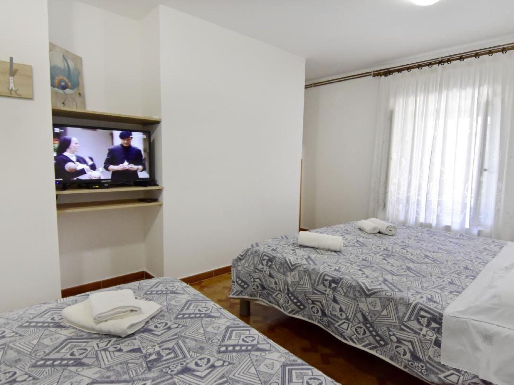 The apartment has a bedroom with a double bed and a single bed for a child up to 10 years on request, bed linen provided (changed weekly), two bedside tables with night lamps, wardrobe, flat-screen satellite TV, air conditioning and a private bathroom with shower, sink and toilet. The living area has a dining table with 4 chairs, sofa bed for two people, air conditioner, flat-screen satellite TV, wardrobe, free Wi-Fi internet connection. From the living area access to the kitchen equipped with oven, refrigerator, microwave oven, stove with 4 gas burners, kettle, coffee machine, plates, cutlery, glasses and kitchen utensils, dining table. From the kitchen, access to the second complete bathroom with shower, washing machine, toilet, sink with cabinet and mirror, hairdryer, and bathroom towels two per person provided (changed weekly). At the entrance of the apartment, the large terrace is equipped with garden furniture and a table and chairs to enjoy the morning coffee or a glass of Istrian wine in the evening. Covered parking with two parking spaces is available in front of the house.