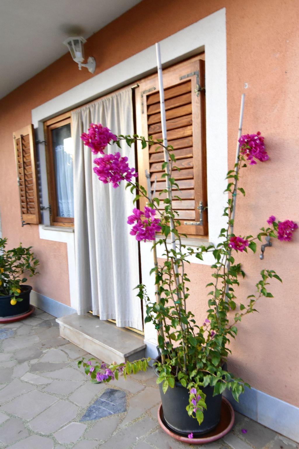 The apartment is located on the ground floor of a family house with two other apartments, one near the ground floor which is rented and one on the first floor where the friendly owners live. The terrace covered with vines will allow you to spend wonderful moments in the shade admiring the beautiful colorful flowers of the well-kept garden.