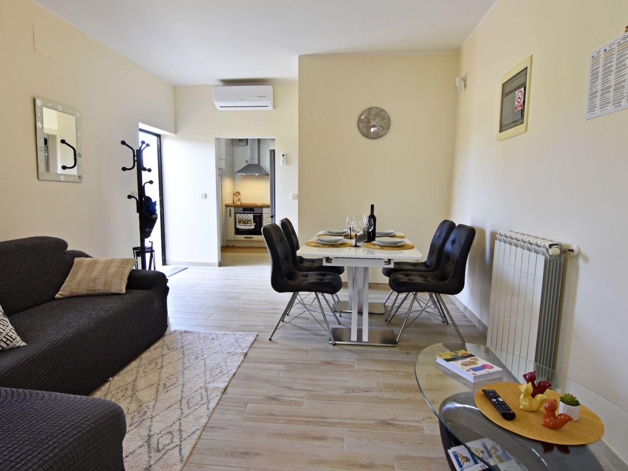 The new and comfortable flat is located on the ground floor of the house with a large private terrace covered by a magnificent pergola and equipped with a table and benches at the entrance.the kitchen is modern and equipped with fridge with freezer compartment, dishwasher, ceramic hob with 4 hotplates, extractor bonnet, oven, microwave, coffee maker, kettle, toaster, crockery, cutlery and kitchen utensils. The bathroom with shower, washbasin with mirror and vanity unit, outside window, bidet, toilet, wardrobe, two towels per person are available, the flat offers a bedroom with double bed (180x200), bedside tables and night lamps, large wardrobe. The living area consists of the dining and living area. The dining area has a table with 4 chairs, a coat hanger. The living room is equipped with a flat-screen satellite TV, a coffee table, a sofa bed for two people, air conditioning and a free Wi-Fi internet connection.
