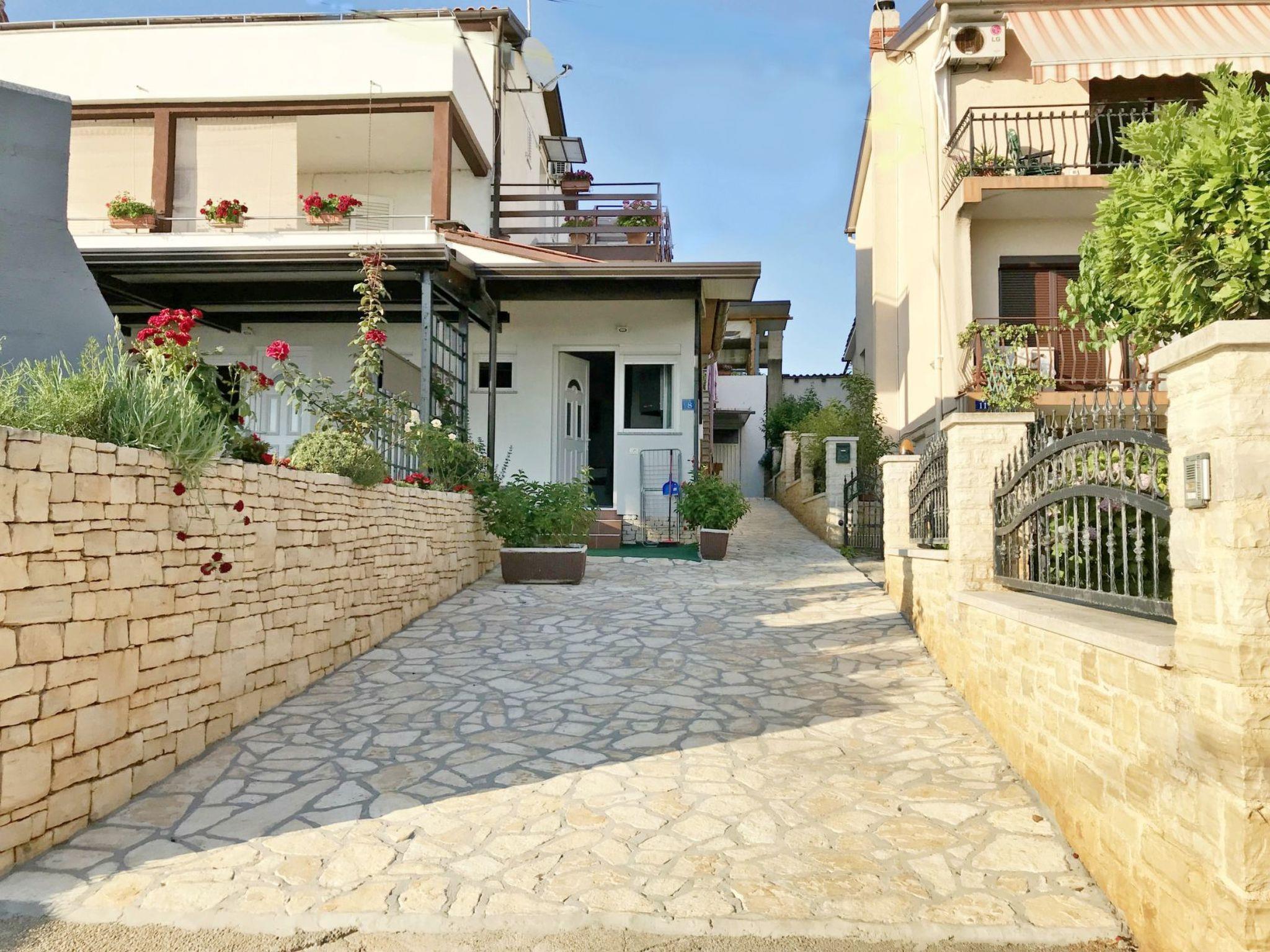 The studio located on the ground floor of a family house facing the sea where 5 other apartments are rented is located in a small village Zambratija near Umag. Private parking in front of the house, rocky beach 50 m, grocery store 200 m, sandy beach, café and bakery 150 m