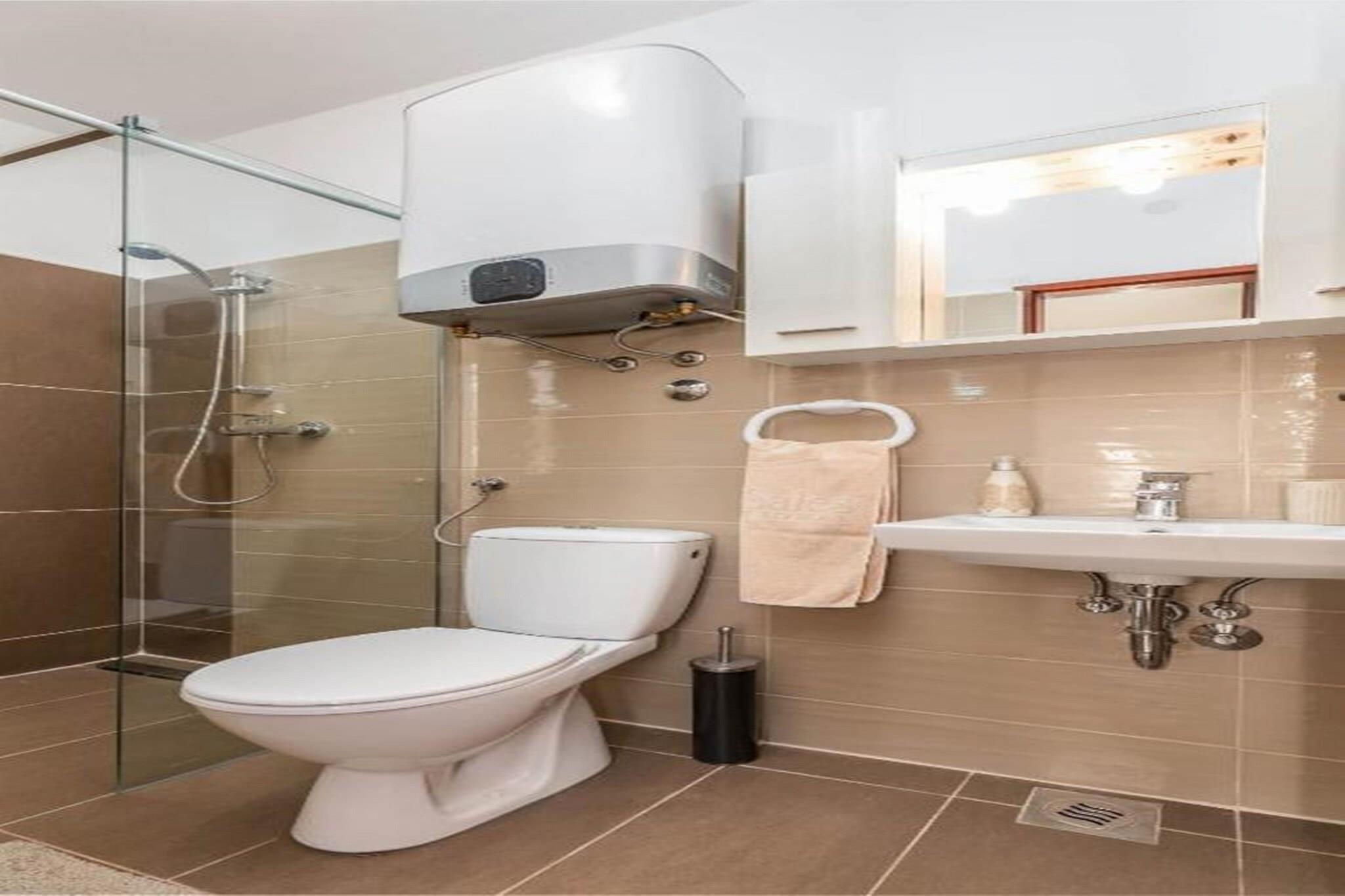 Ejendommen tilbyder sammen med sin indbydende og fredelige atmosfære en hyggelig studielejlighed perfekt til par eller små familier. Studiet har en ekstra stor dobbeltseng og en enkelt sovesofa, der kan rumme op til tre personer. Gæsterne kan nyde en afslappende tid på den private terrasse, møbleret til udendørs spisning eller blot nyde den friske luft. Dette feriehus er kæledyrsfrit, og det giver yderligere faciliteter såsom gratis Wi-Fi, aircondition og parkering på stedet. Gæsterne kan opbevare cykler i garagen og få adgang til vaskeservice for ekstra bekvemmelighed. Ejendommen er beliggende i den rolige by Valbandon i Fažana kommune og tilbyder nem adgang til nærliggende attraktioner og faciliteter. Den nærmeste restaurant, Jedro, ligger blot 50 meter derfra, mens en købmand ligger 500 meter fra ejendommen. Valbandon Strand ligger kun 800 meter væk, perfekt til en dag ved vandet, og Fažana ligger kun 2 km fra lejligheden. Gæster kan også besøge nationalparken Brijuni, som er tilgængelig med båd fra Fažana, og som tilbyder en uforglemmelig sightseeingoplevelse. Lejligheden har et fuldt udstyret køkken og badeværelse, hvilket gør den ideel til selvforplejning. Opholdsstuen i åbent plan omfatter en spiseplads, hvor gæsterne kan nyde hjemmelavede måltider eller grill. Med sine komfortable faciliteter, herunder aircondition og en afslappende udendørs terrasse, er denne lejlighed et perfekt tilflugtssted for dem, der søger både komfort og bekvemmelighed under deres ophold i den charmerende by Valbandon.
