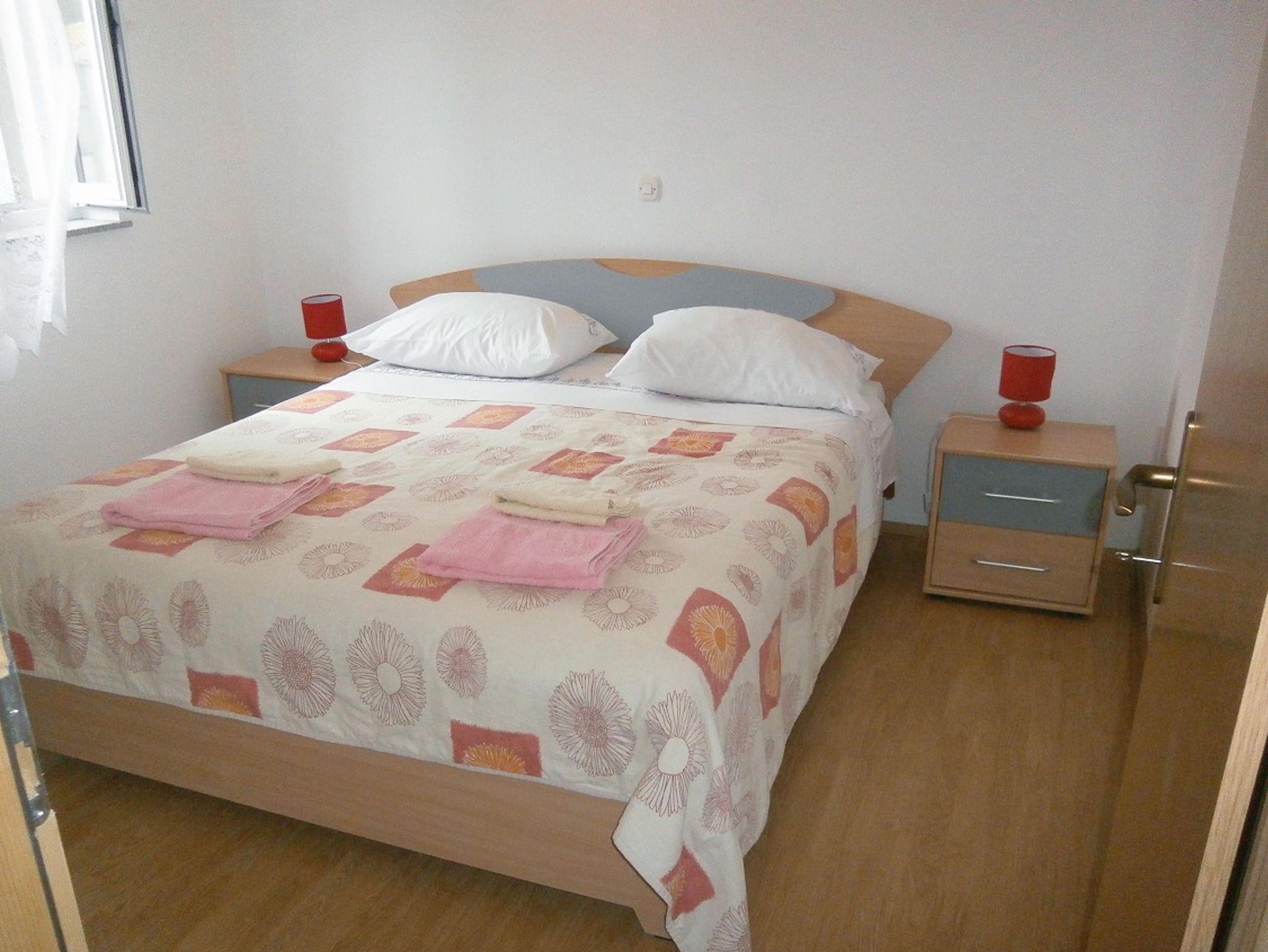 Ferienwohnung bietet Platz für 5 Gäste. Die Betten sind in Schlafzimmern, die es 2 gibt, innerhalb einer Gesamtfläche von 57m2, angeordnet. Die Gäste haben eine eigene Terrasse zur Verfügung, auf der sie in warmen Sommernächten genießen können. Es ist erlaubt, Speisen auf dem Gemeinschafts-Grill vorzubereiten. IM PREIS INBEGRIFFEN: Kurtaxe, Endreinigung, Parkplatz, Internet, Wäschewaschen, Bügeleisen, Bügelbrett, Föhn, tragbarer Grill. VERBINDLICHE ZUSÄTZLICHE KOSTEN: Aufzahlung für Kurzaufenthalte (prozentualer Zuschlag pro Nächtigungsanzahl: 30% - 1, 20% - 2, 10% - 3). UNVERBINDLICHE ZUSÄTZLICHE KOSTEN: Klimatisierung (4,00 € pro Nacht), Zusatzbett (10,00 € pro Nacht). Die Verfügbarkeit zusätzlicher Dienstleistungen in Ihrem reservierten Termin und die Preise derselben (falls nicht aufgeführt) müssen im Voraus überprüft werden. Zusätzliche Dienstleistungen die in der Zahlungsaufforderung nicht aufgeführt sind werden direkt beim Vermieter bezahlt, angenommen der Gast nutzt auch diese. Ermäßigung auf den Grundpreis: Gratistag 14=13 (bei einem Aufenthalt von 14 Tagen oder mehr erhalten Sie einen Gratistag für den Aufenthalt bis 31.12.26).