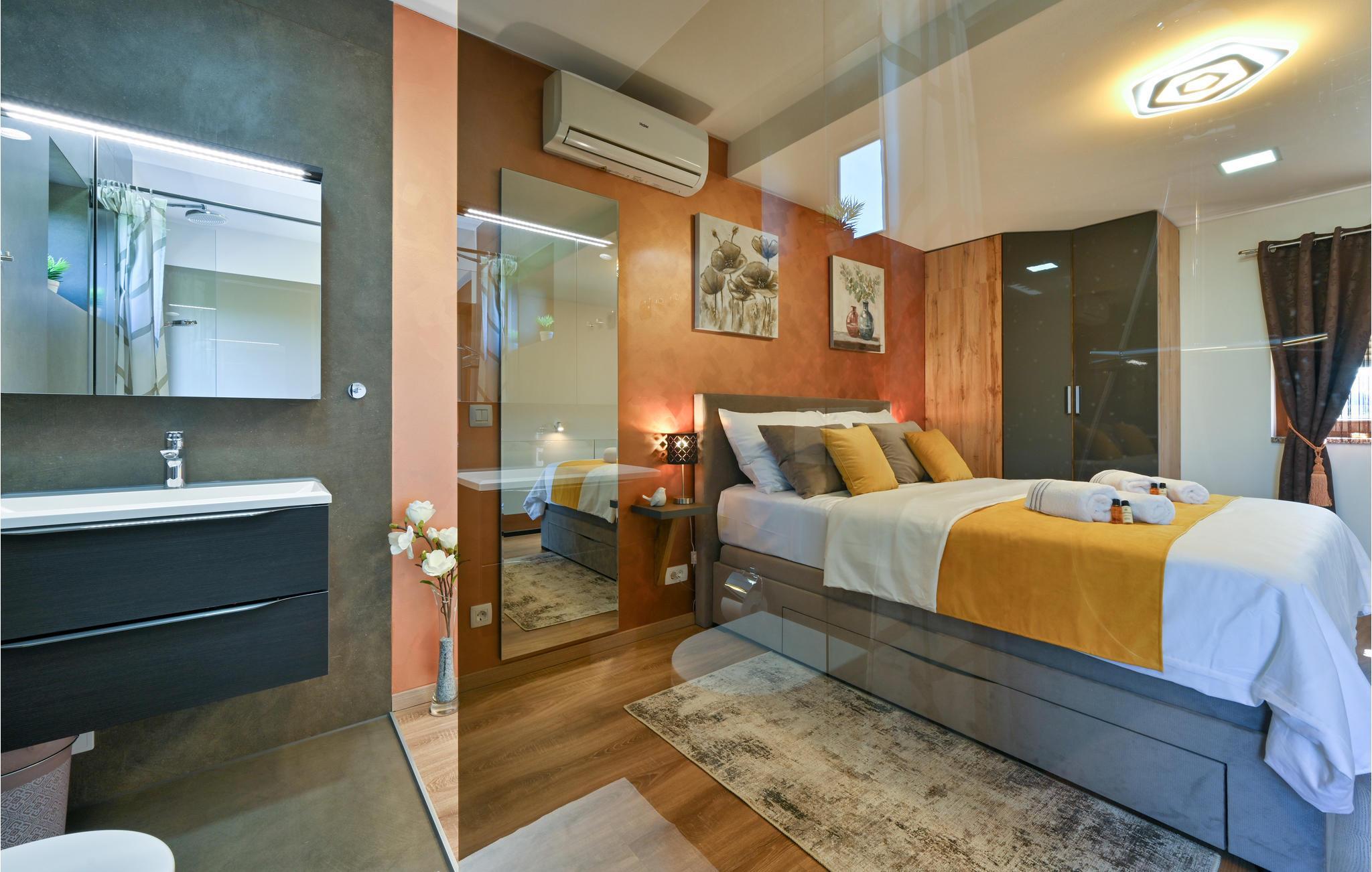 Velkommen til det indbydende hus, som imponerer med sin komfortable indretning og fantastiske beliggenhed midt i et malerisk landskab. Varme farver og moderne indretning danner rammerne for en vellykket pause fra jeres hektiske hverdagsprogram. Slap af i en skøn atmosfære, nyd ren afslapning i hotellets sauna og glæd jer til hyggelige aftener i jeres feriebolig.