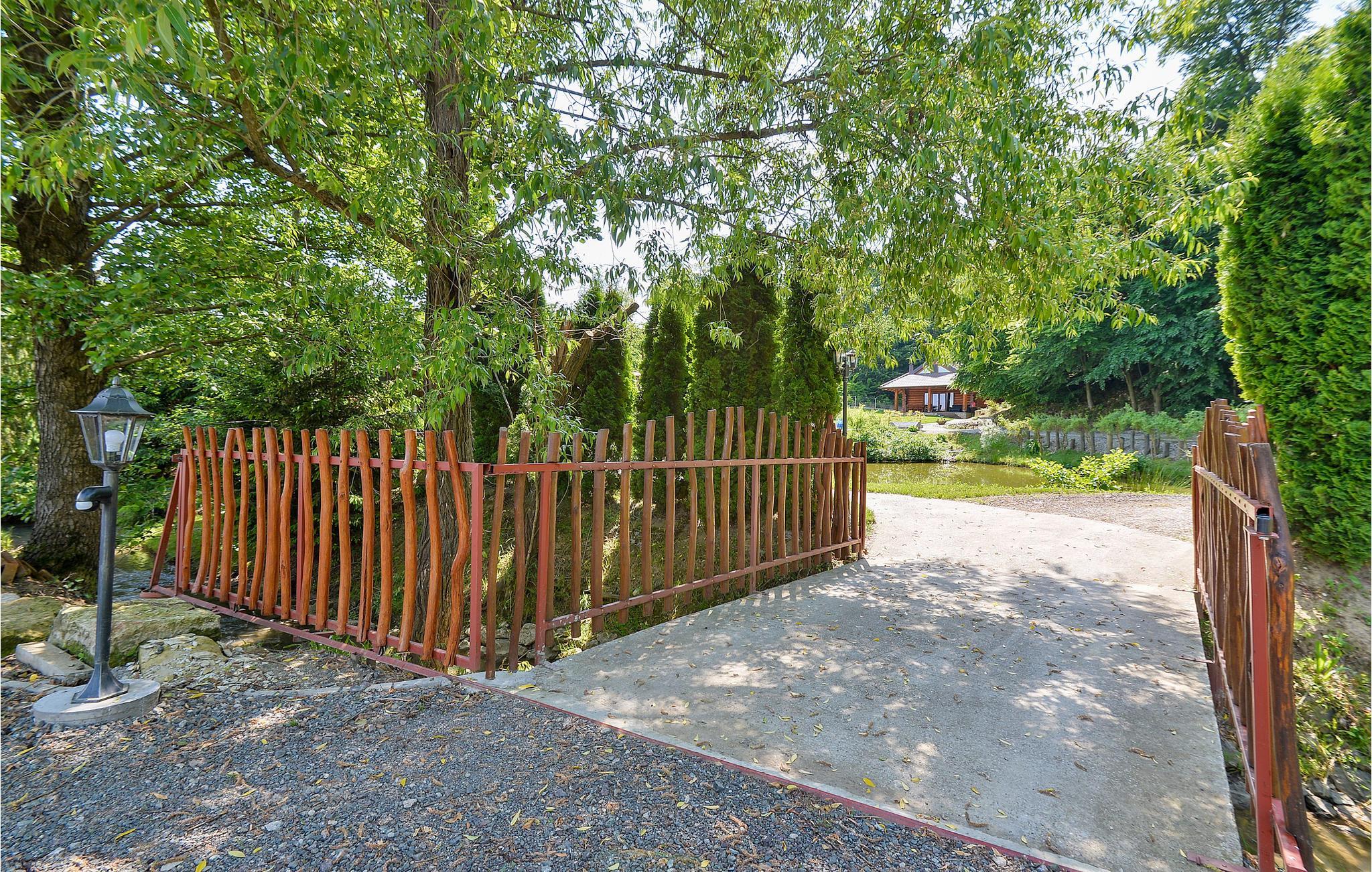 Dette romantiske feriehus består af to etager med en intern trappe, der fører til soveværelserne. Der er en sø på ejendommen, hvor man kan fiske og lidt længere fremme er der et lille vandløb krydset af en bro. Slap af i den smukke pool, hvor terrassen lægger op til solbadning og afslapning. Selve ferieboligen er rig på underholdning og sportsmuligheder. Minimum loftshøjde er ca 50 cm. En ikke-asfalteret vej fører jer de sidste 100 meter til huset.
