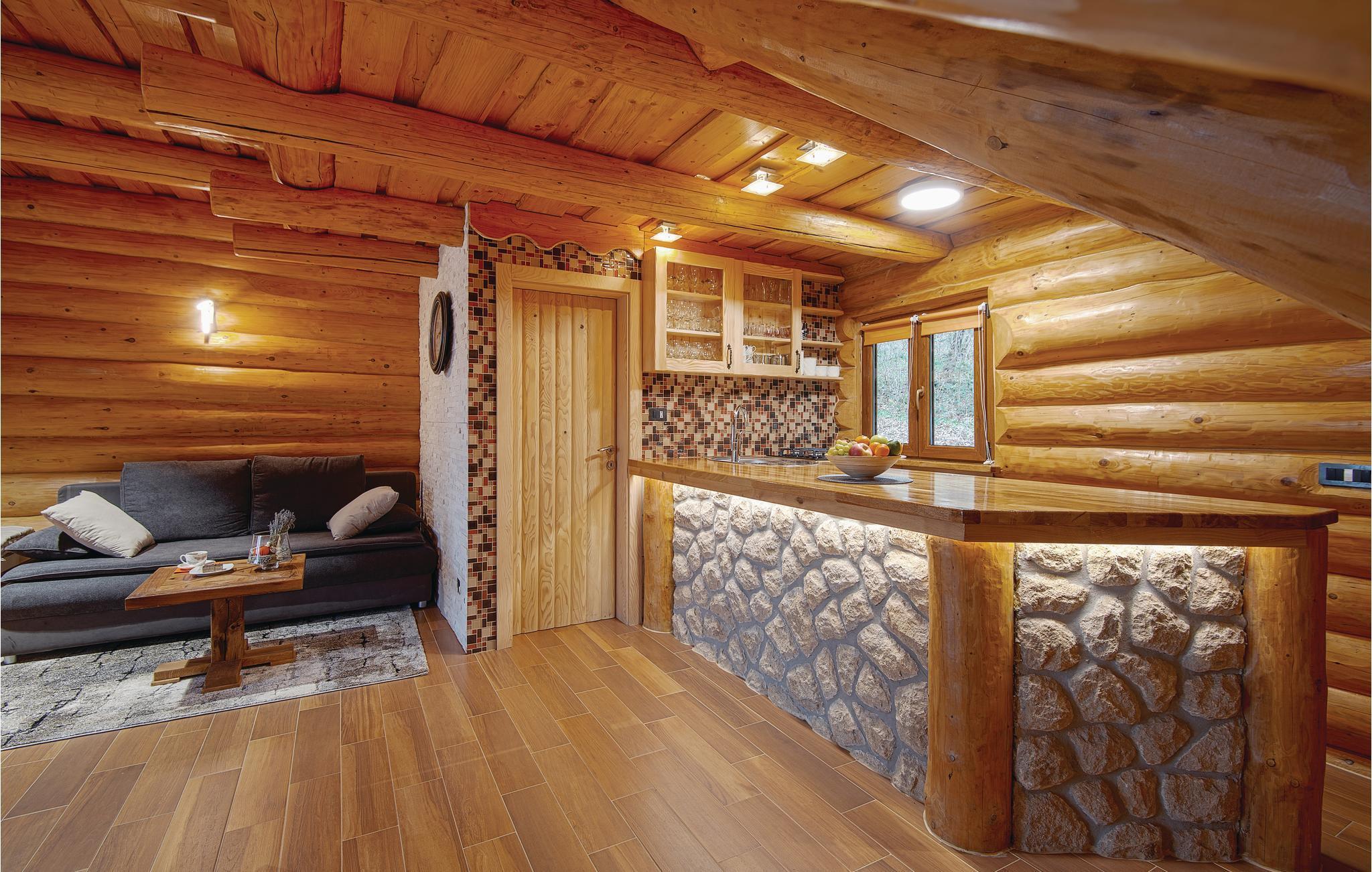 Dette smukke træhus i alpestil ligger ved foden af ??en bakke, omgivet af uberørt grønne områder.