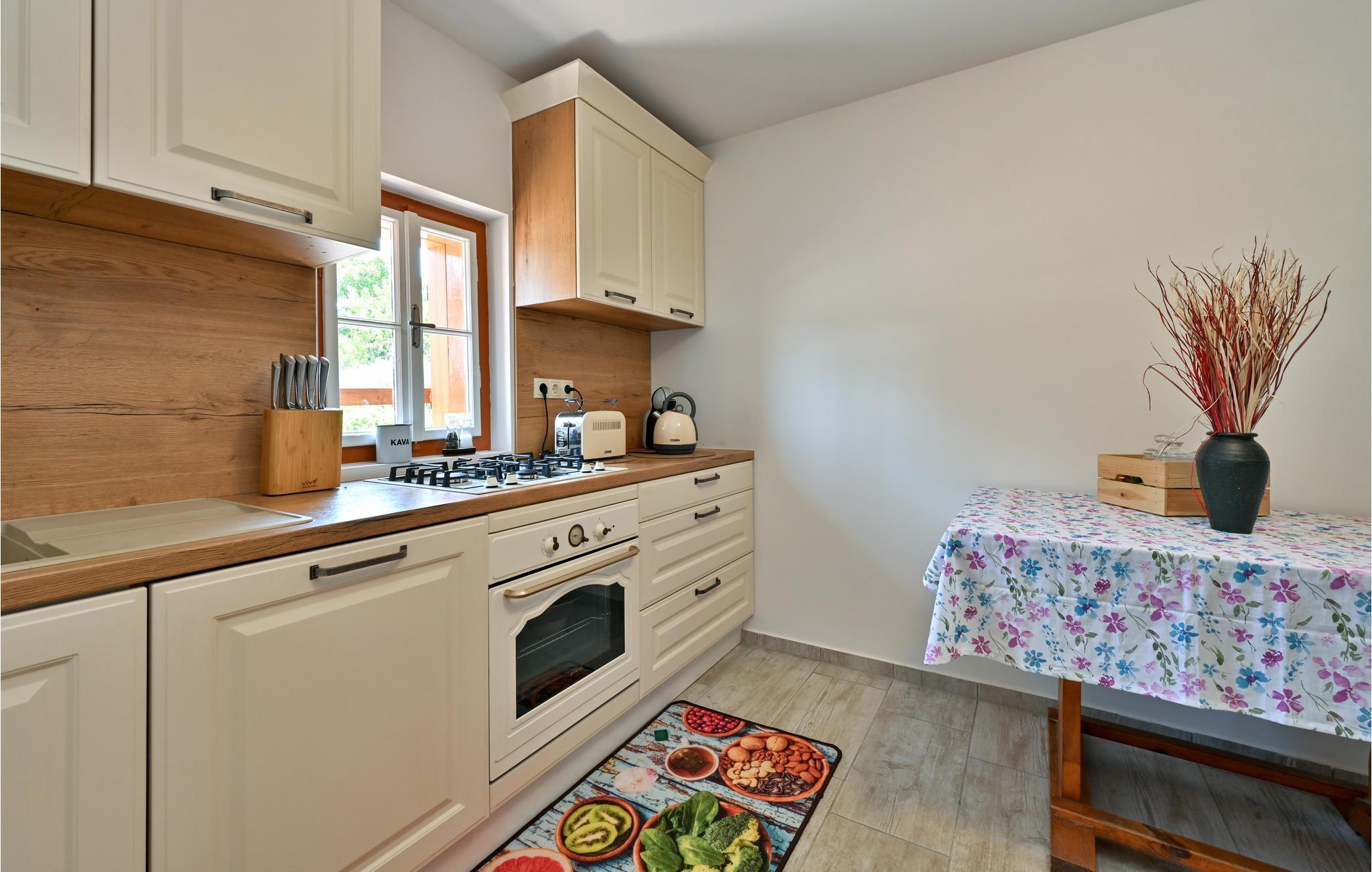 Slap af i det kroatisk-slovenske grænseområde, omgivet af frugtplantager og vinmarker med udsigt til bakkerne og den uberørte natur. Dette smukke og rustikke landsted emmer af en masse charme og byder på masser af plads til jeres udvidede familie. Find jer godt til rette ved kakkelovnen, spil kort ved spisebordet og tryll lækre retter frem i landkøkkenet. Men der er også et skønt udekøkken med muret grill på den overdækkede terrasse. Her kan I runde de sociale aftener af efter at have tilbragt dagen i og omkring poolen og slappet af i den indendørs sauna.