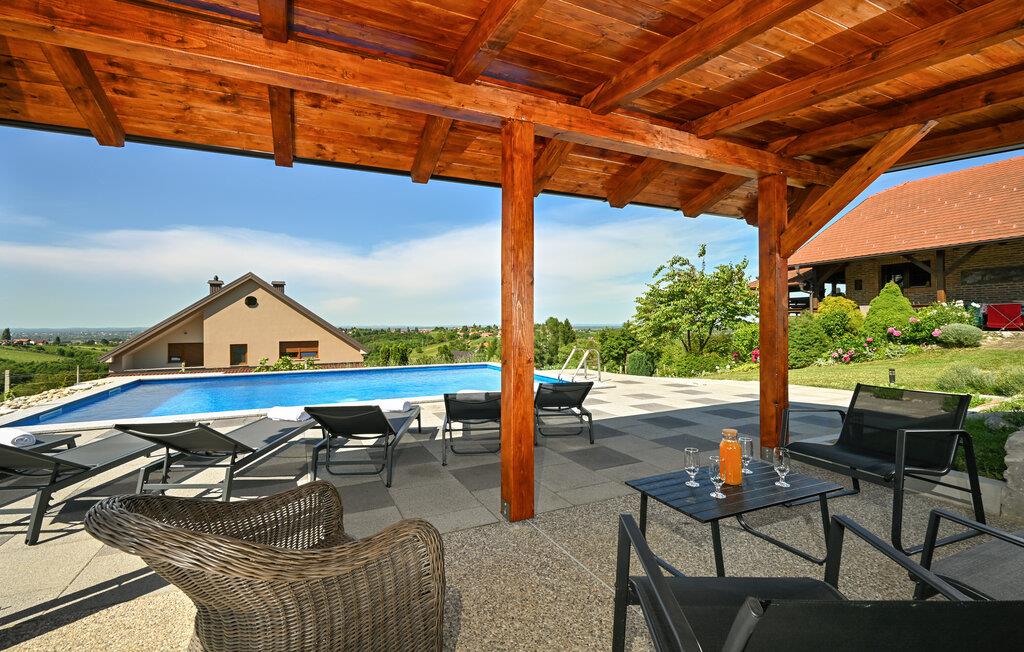 Glæd jer til wellness og afslapning i dette rummelige feriehus med pool og panoramaudsigt.