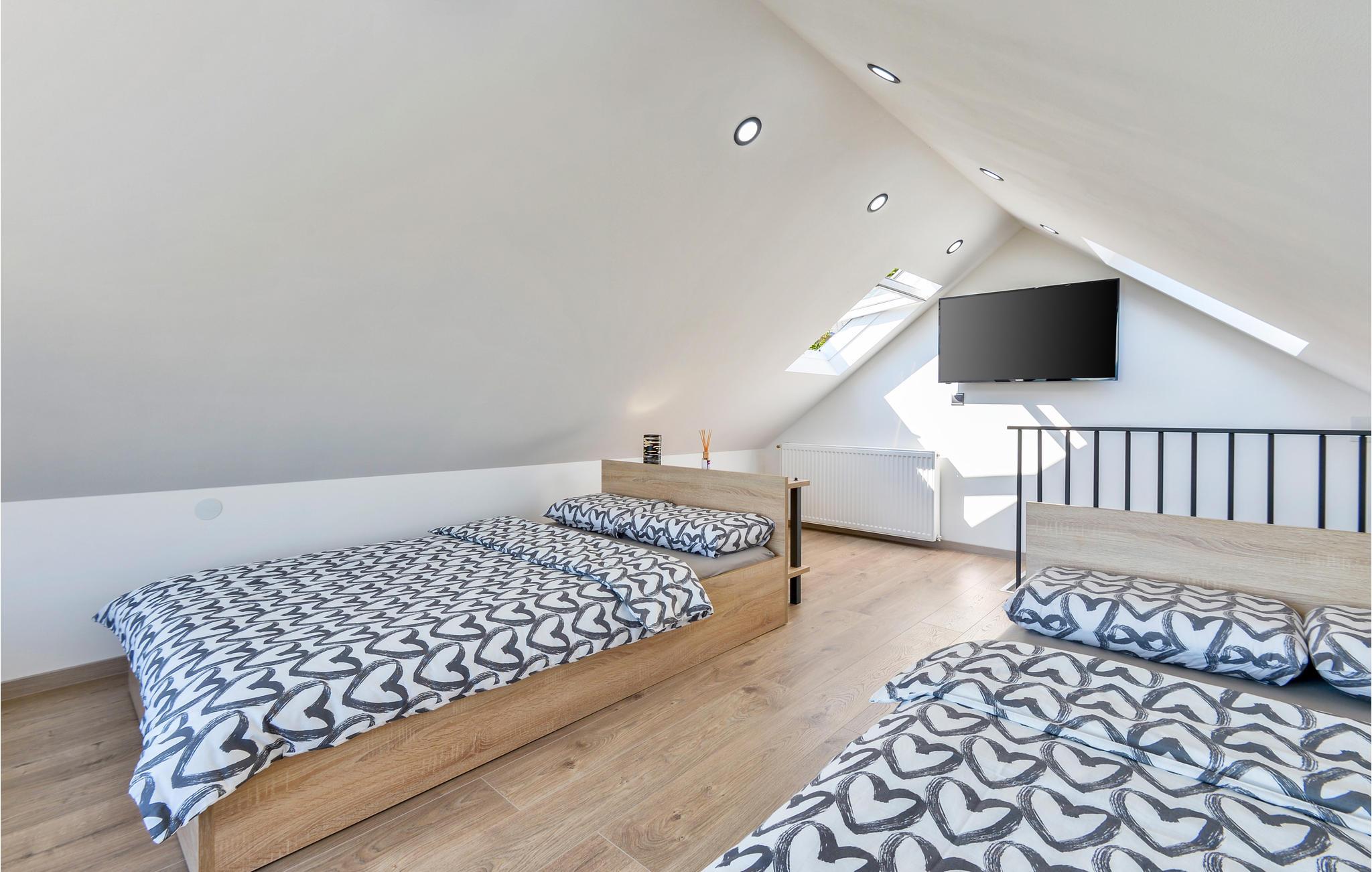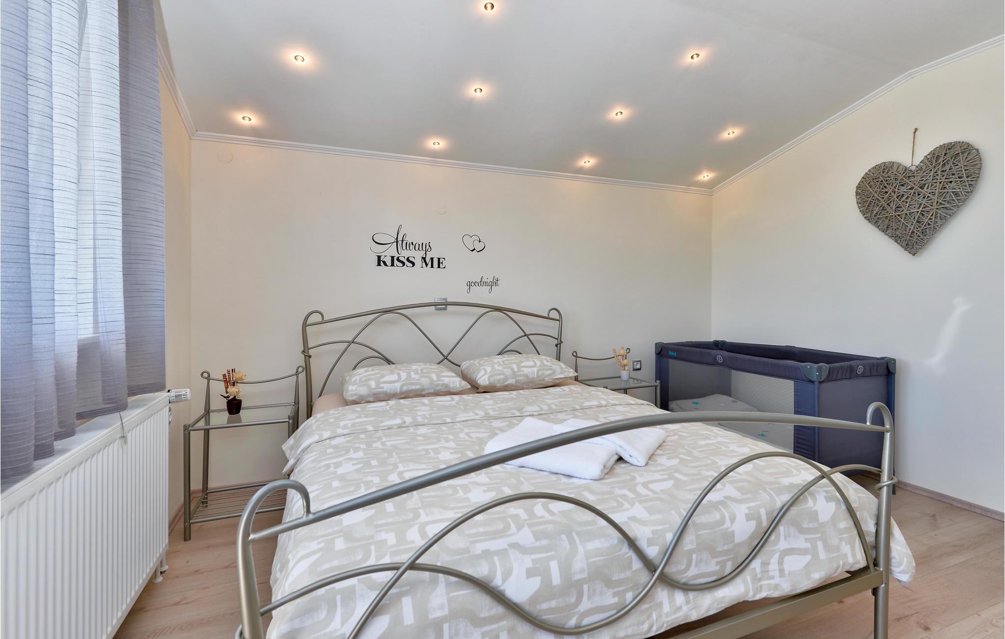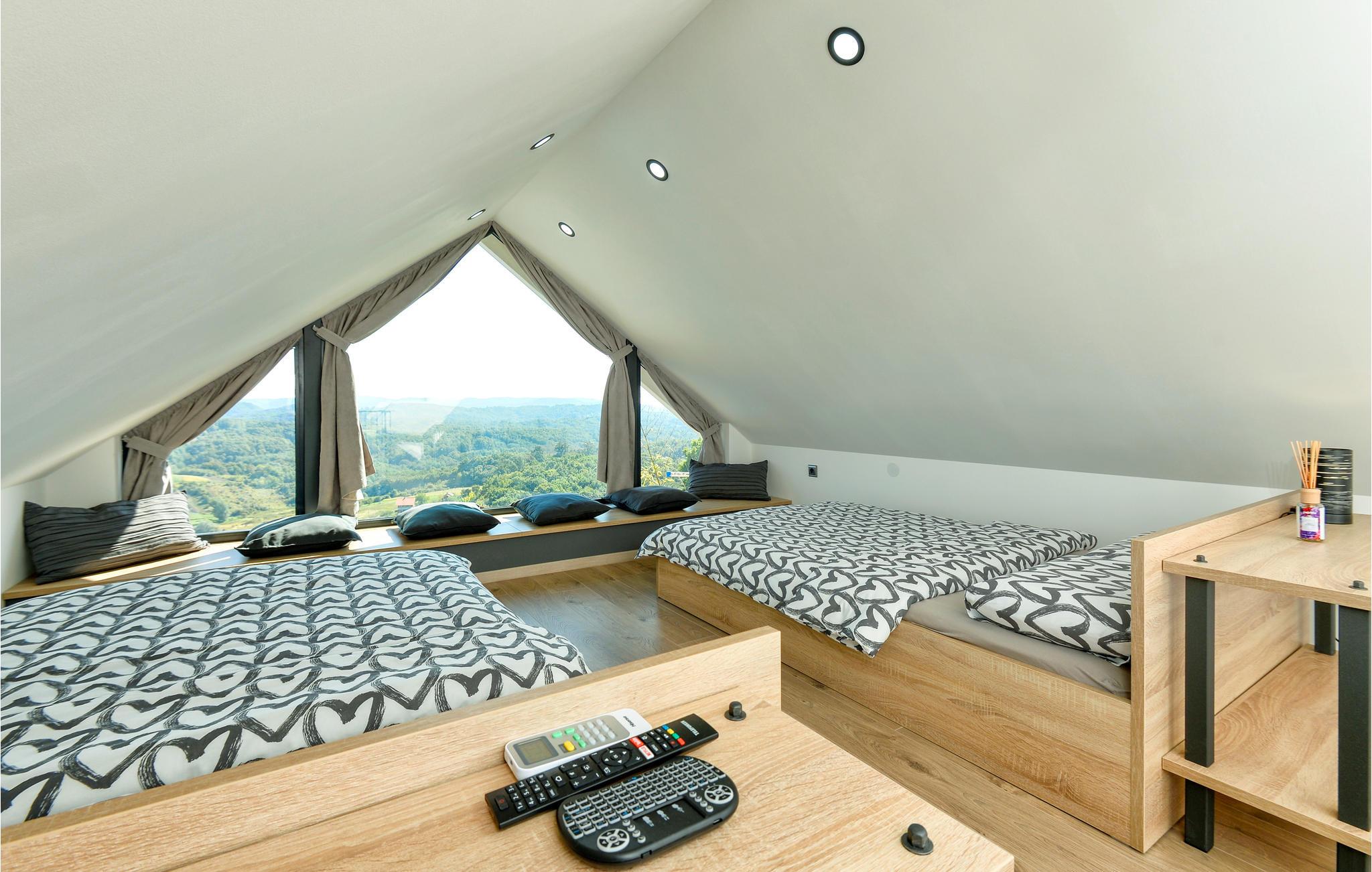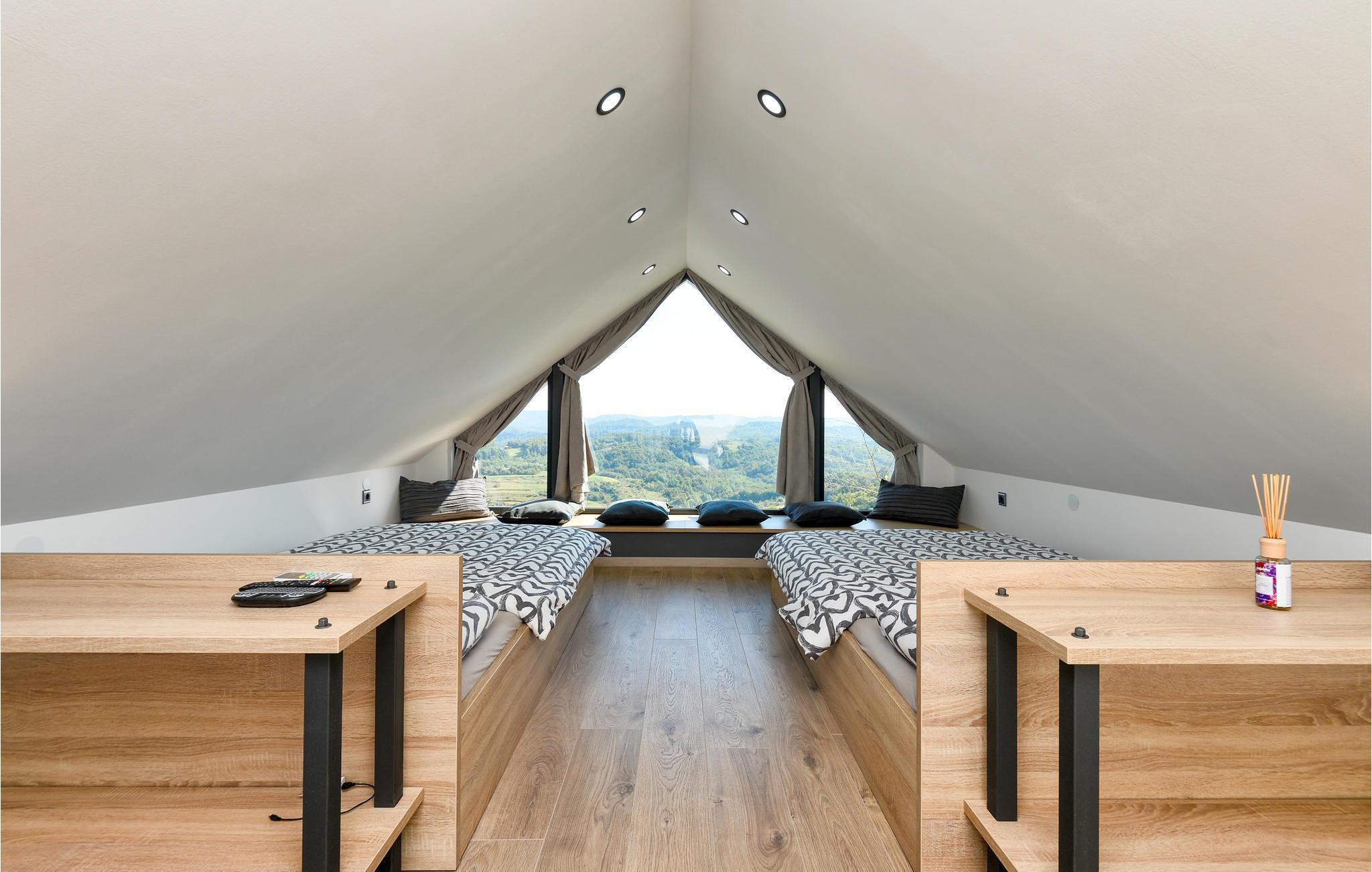 På en bakke og med en vidunderlig udsigt over de omkringliggende bjerge ligger dette smukke sommerhus med pool. På ejendommen kan du solbade, svømme i poolen eller tilberede lækre grillede retter i det udendørs køkken. Stueetagen består af et køkken med spiseplads, et soveværelse med badeværelse og sauna, mens der på første sal er en stue, to soveværelser og et badeværelse. Der er en gokartbane i nærheden af huset, der byder på sjov for både børn og voksne. Til elskere af vandre- og cykelture i naturen anbefaler vi besøget af Grebengrader-bjerget. En offentlig swimmingpool ligger også i nærheden af feriehuset. Anbefalet er en tur til den barokke by Varazdin, der også er kendt som en spa-by, og hvis barokke paladser, harmoniske pladser og romantiske gader er en sand oplevelse.
