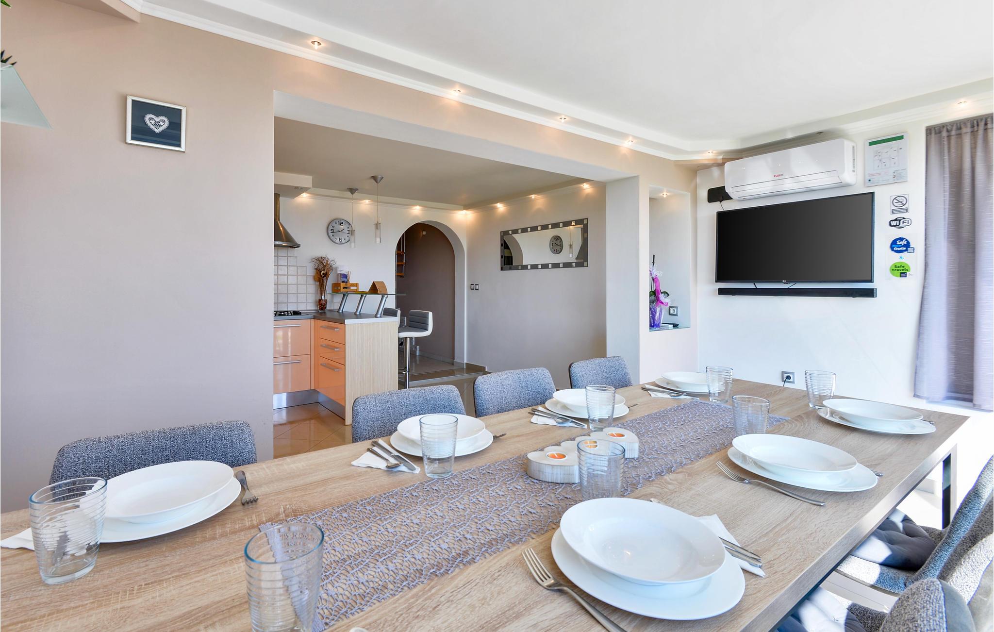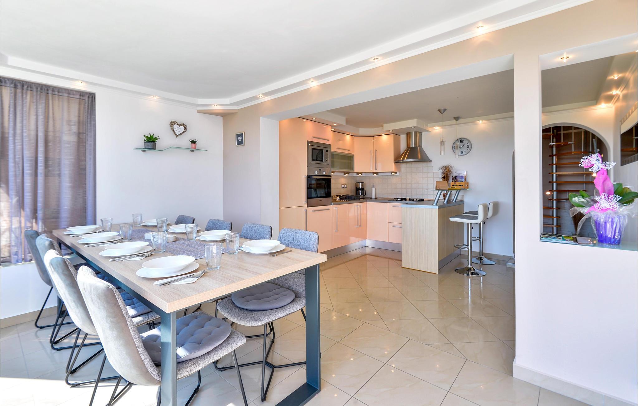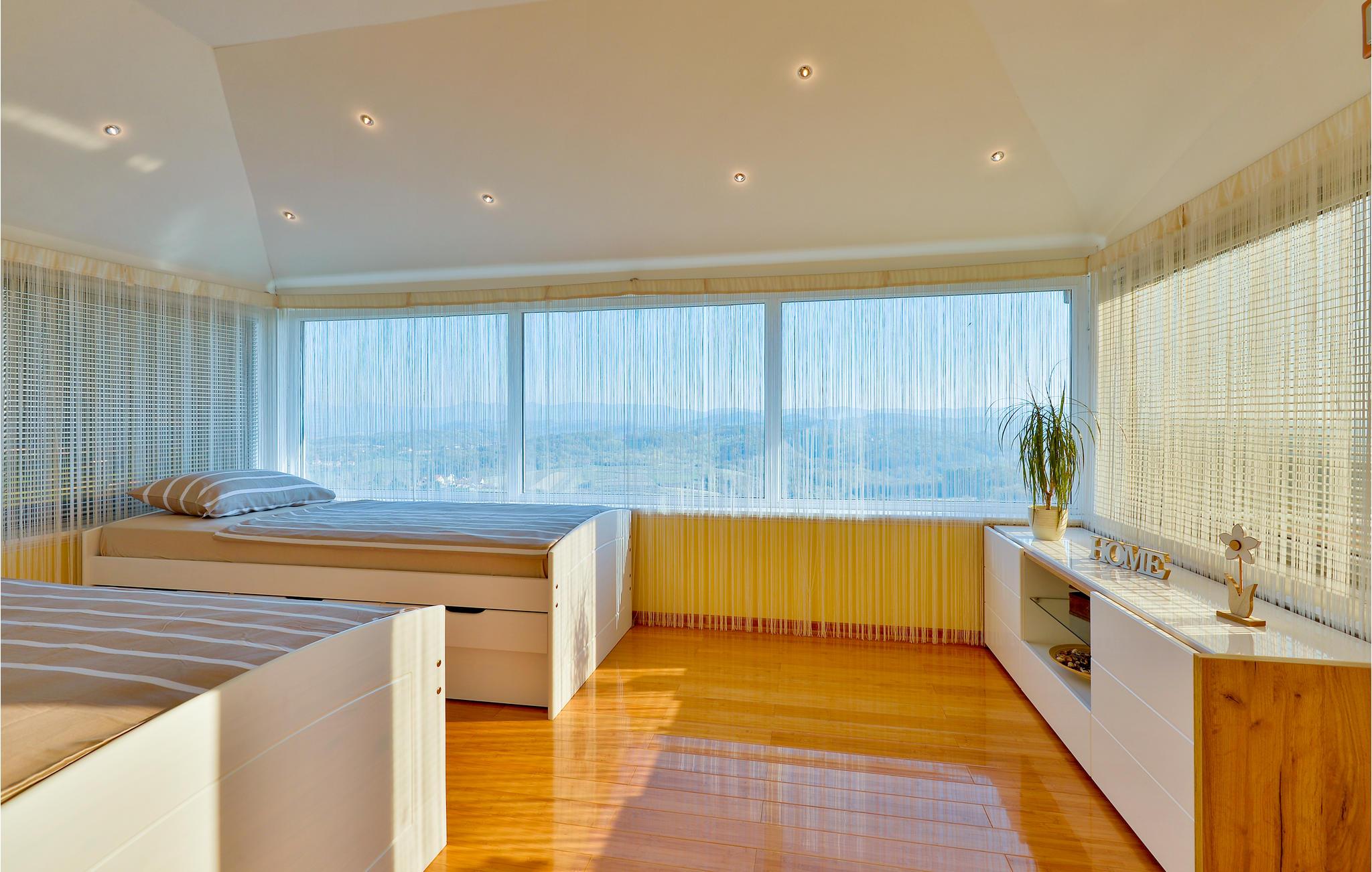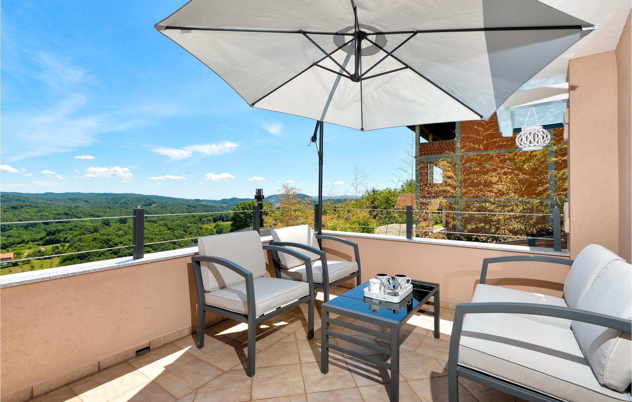 På en bakke og med en vidunderlig udsigt over de omkringliggende bjerge ligger dette smukke sommerhus med pool. På ejendommen kan du solbade, svømme i poolen eller tilberede lækre grillede retter i det udendørs køkken. Stueetagen består af et køkken med spiseplads, et soveværelse med badeværelse og sauna, mens der på første sal er en stue, to soveværelser og et badeværelse. Der er en gokartbane i nærheden af huset, der byder på sjov for både børn og voksne. Til elskere af vandre- og cykelture i naturen anbefaler vi besøget af Grebengrader-bjerget. En offentlig swimmingpool ligger også i nærheden af feriehuset. Anbefalet er en tur til den barokke by Varazdin, der også er kendt som en spa-by, og hvis barokke paladser, harmoniske pladser og romantiske gader er en sand oplevelse.