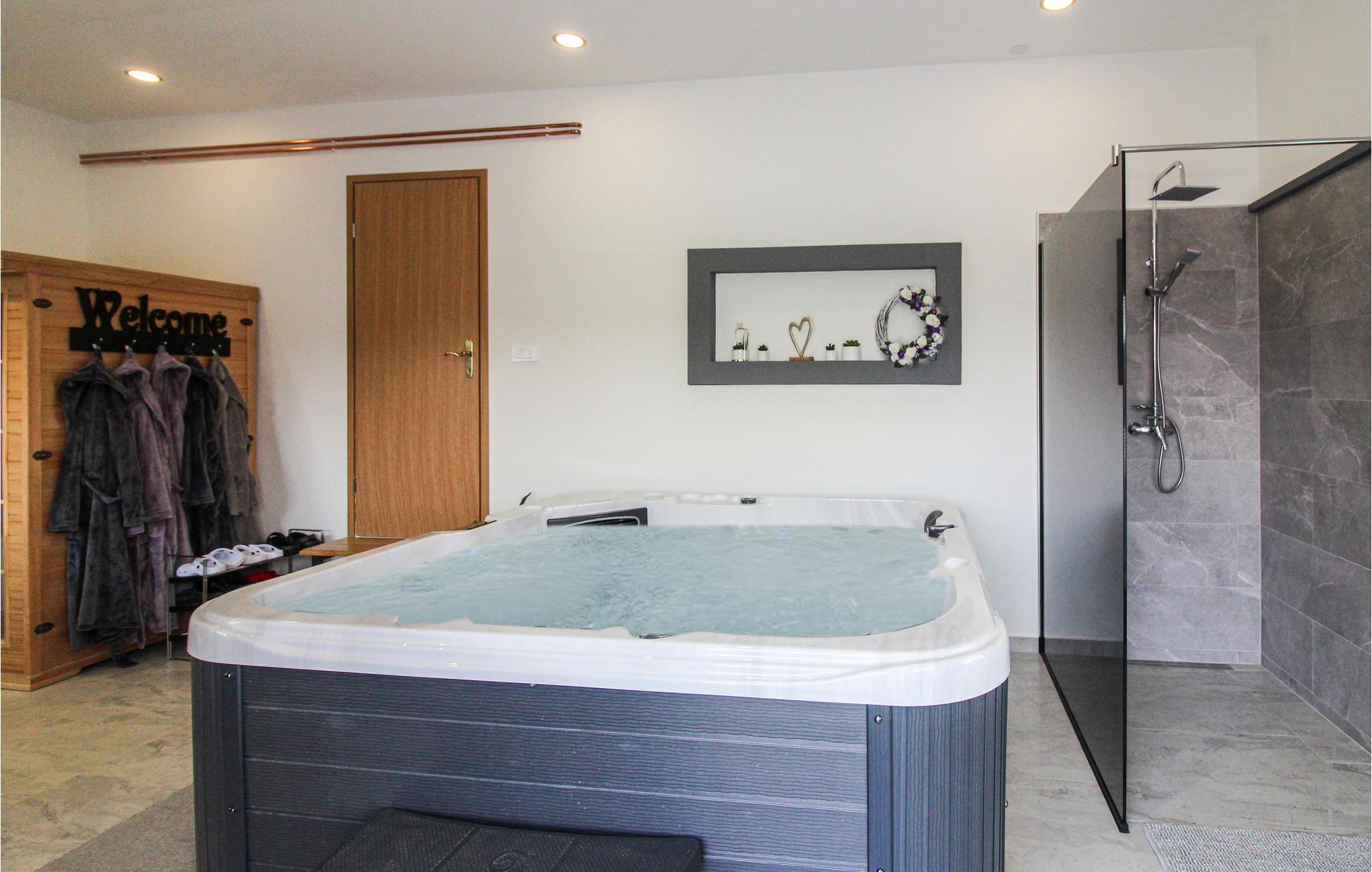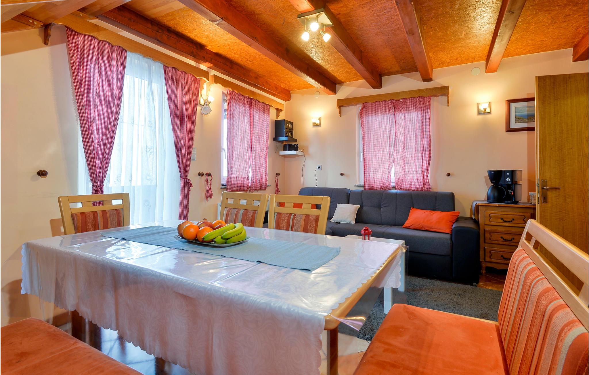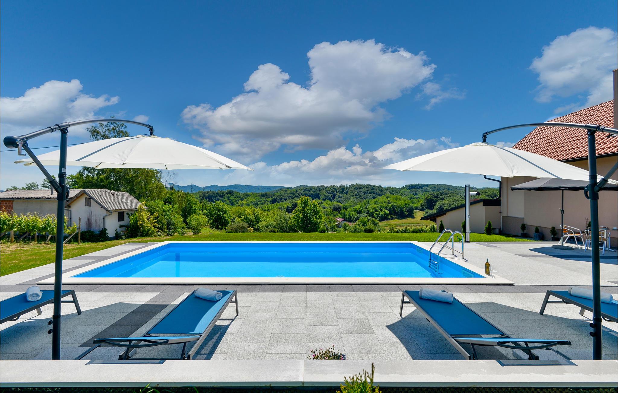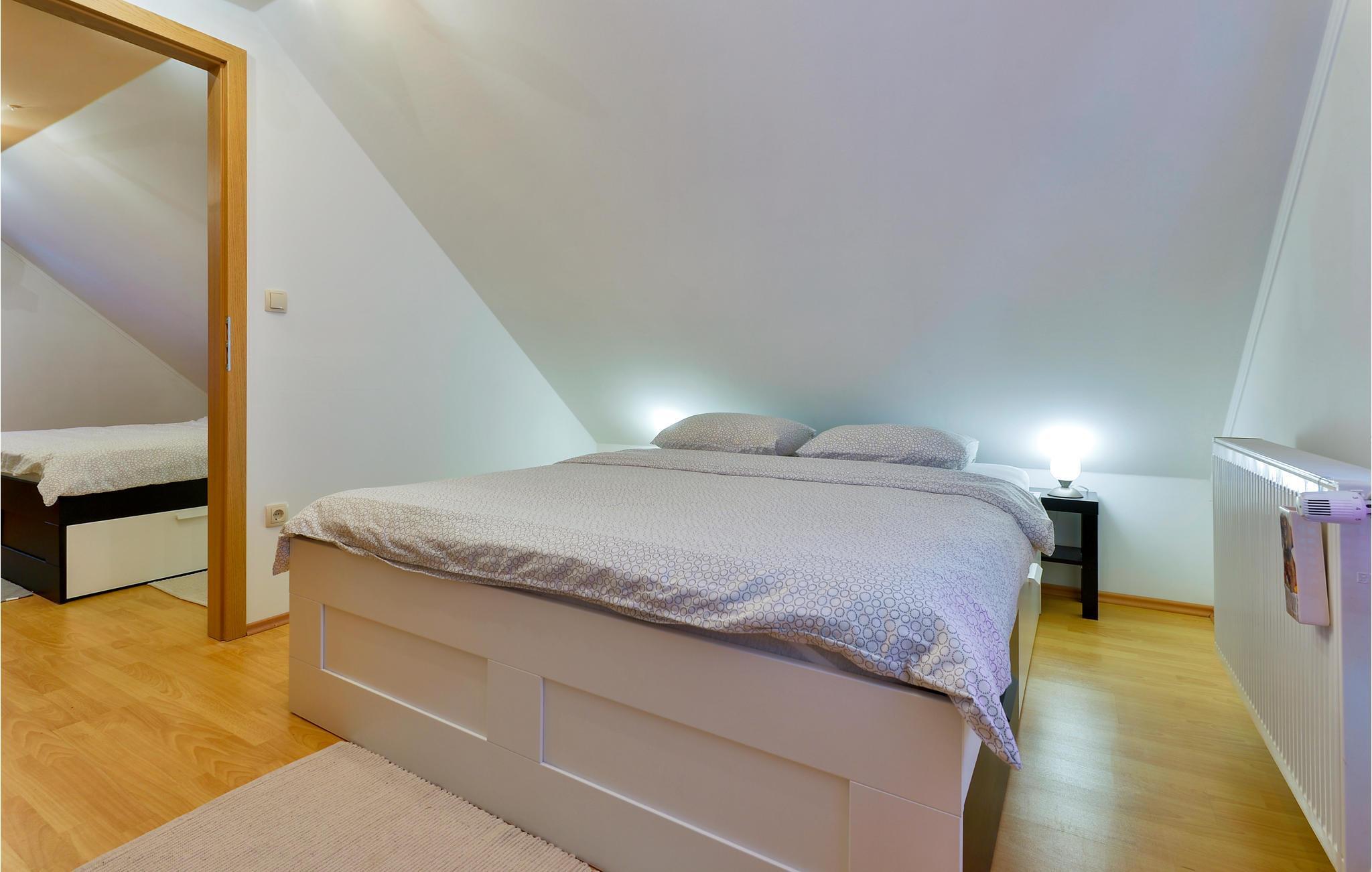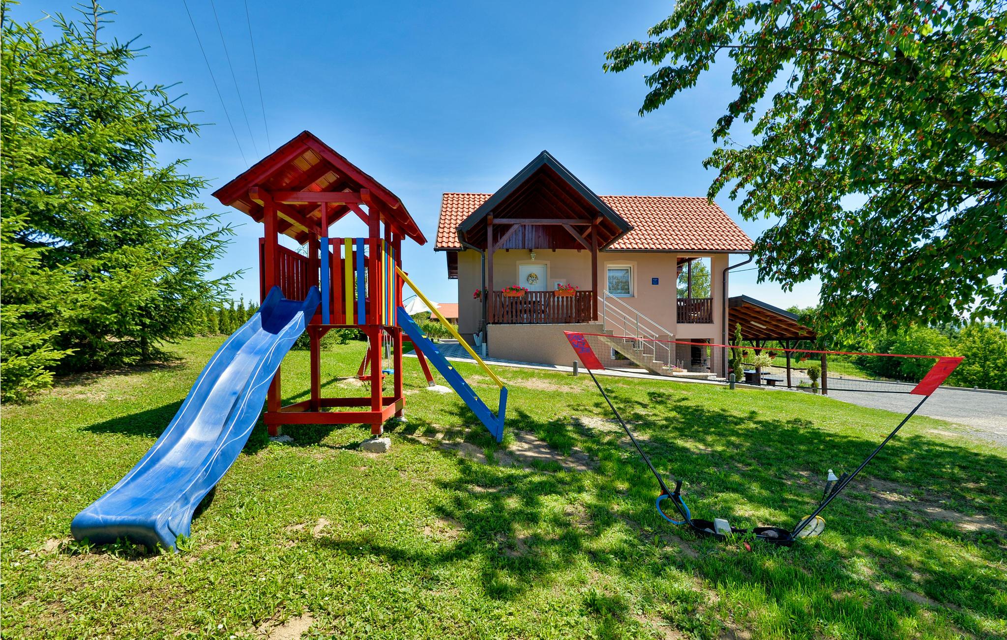 På en bakke nær Novi Marof ligger dette smukke feriehus, omgivet af frugthave, vinbjerge og vidunderlig natur, er det som skabt til en afslappet ferie langt væk fra det pulserende byliv. I stueplan er der en overdækket terrasse med en grill, et badeværelse og et opholdsrum med køkken, et soveværelse og et badeværelse, samt to terrasser, hvor I kan nyde et godt glas vin og fordybe jer i snak eller en bog. På øverste etage er der en laveste loftshøjde på ca. 40 cm i siden (skrå vægge) er der to soveværelser, det ene er et gennemgangsrum. I haven ved siden af huset er den en pool, der på de varme dage er skøn at hoppe i. Der er også sørget for legetøj til jeres børn, så de ikke behøver kede sig. I løbet af opholdet kan I besøge Varaždin, der med sin historiske fortid, velholdte barokpaladser, harmoniske pladser og romantiske små stræder har en ganske særlig charme. Besøg det nærliggende kurbad med utallige sports- og fritidstilbud, promenader og cykelstier.