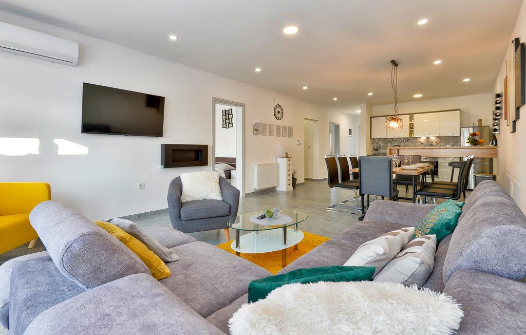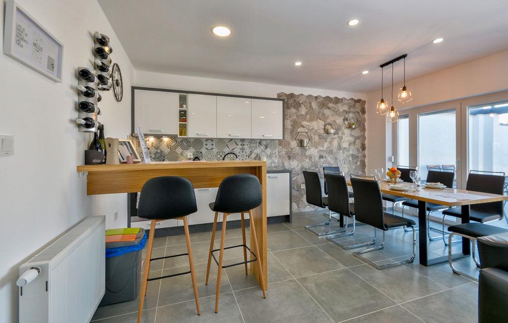 Dette XXL-feriehus er ideelt, hvis I vil tilbringe en afslappende ferie i smukke omgivelser med flere familier. Huset består af tre boligenheder, hver med en separat indgang. Det er moderne møbleret og udstyret med alt hvad I behøver for et afslappende og fredeligt ophold. Med Playstation3, WLAN og Smart TV bliver det garanteret ikke kedeligt, og saunaen og boblebadet sørger for ekstra komfort og afslapning.