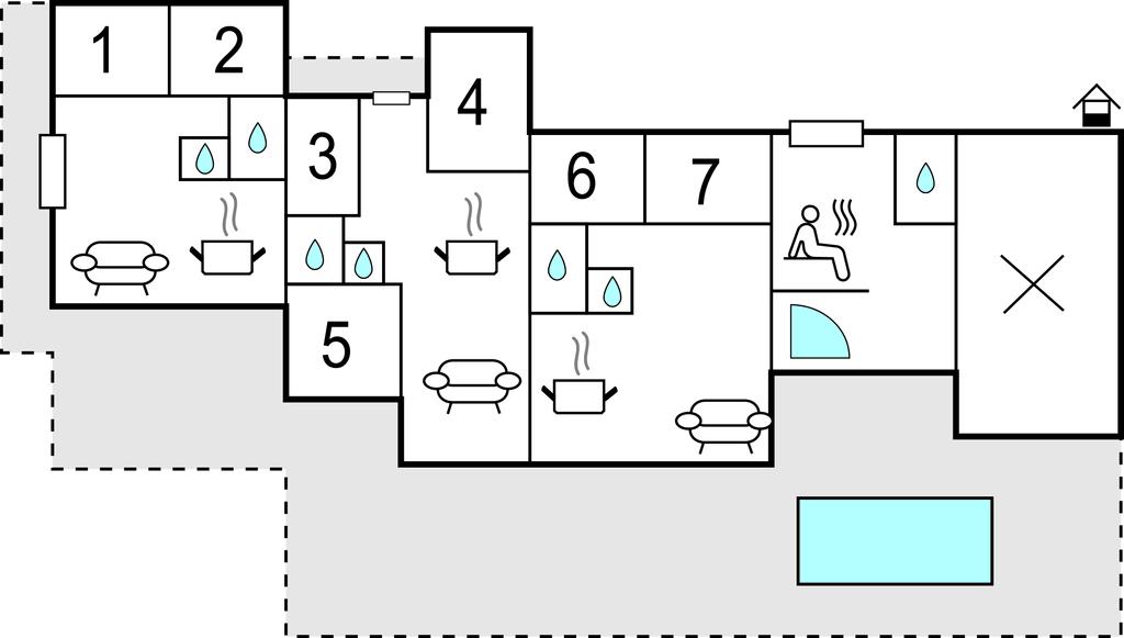 Udenfor venter en privat swimmingpool på jer, som lover nedkøling og badesjov i sommermånederne. Slap af på liggestolene ved poolen og glem hverdagen. Der er underholdning for børnene med en gynge, sandkasse, klatrestativ og lignende. Om aftenen kan I afslutte dagen med en lækker grillmiddag på en af ??terrasserne.