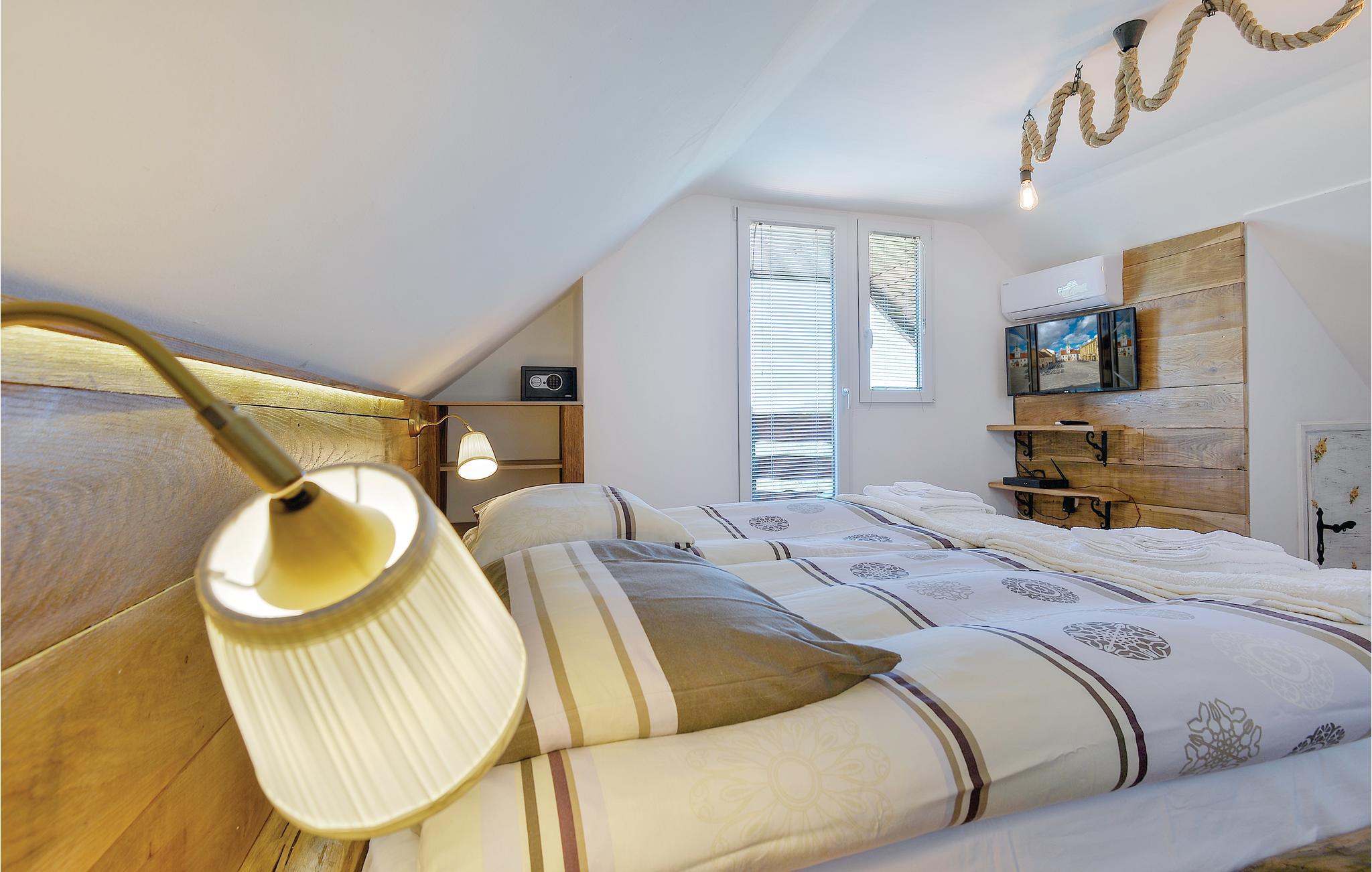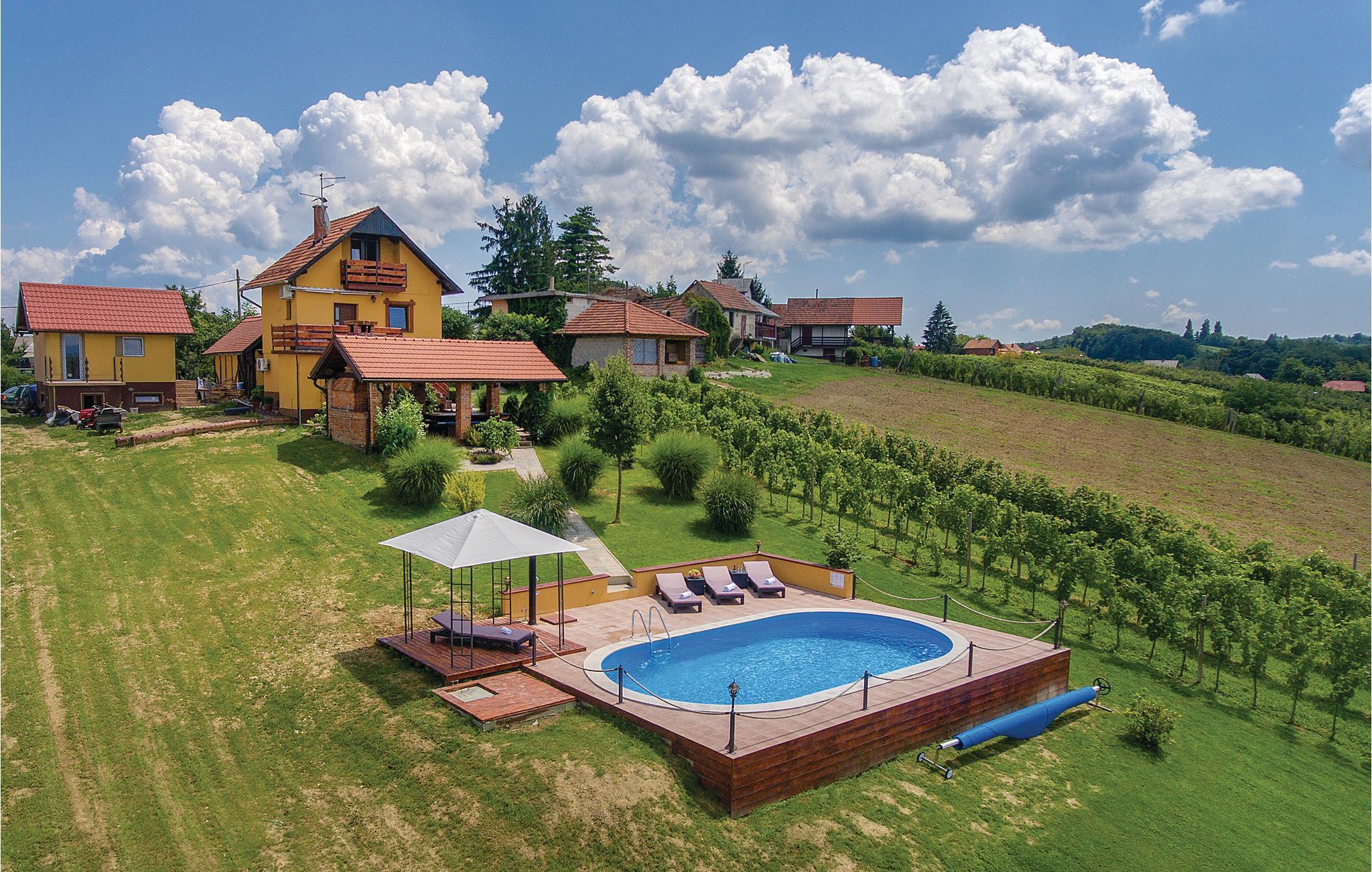 Dette skønne feriehus ligger på en bakke, omgivet af Zargorjes enge og vinbjerge og indbyder til en vellykket ferie. Huset er indrettet i egnstypisk stil. I et oprindeligt lille træhus ligger stuen. Der er to soveværelser, et er gennemgangsrum med separat indgang udefra- Til det andet med skrå vægge der går med til 100 cm i siden, er der adgang ad en stejl trappe. Lav enkel og lækker feriemad på grillen, og hop en tur i poolen lige når I har lyst. Nær et utal af vandre- og cykelstier. Besøg byen Varaždin med mange seværdigheder.