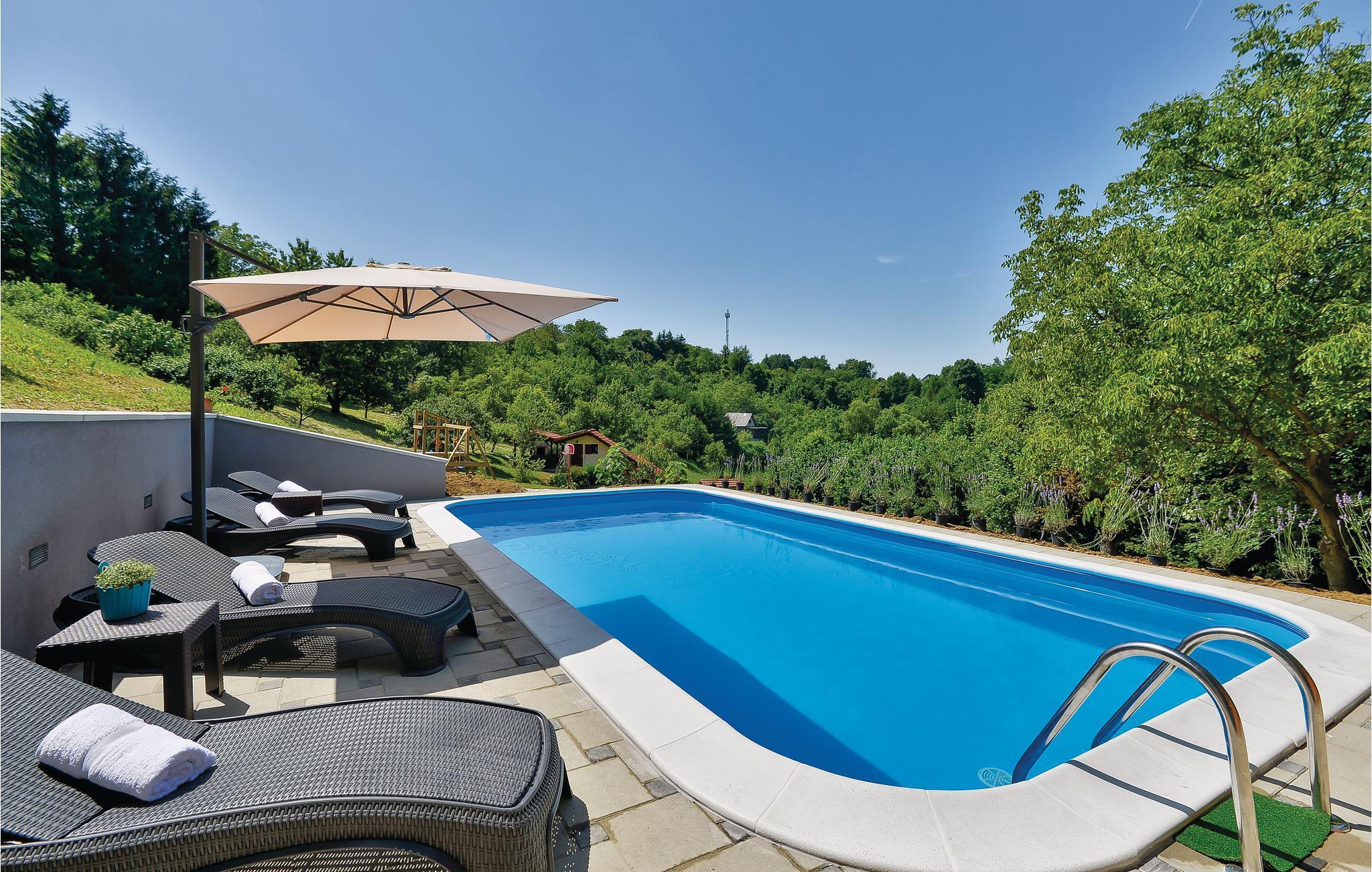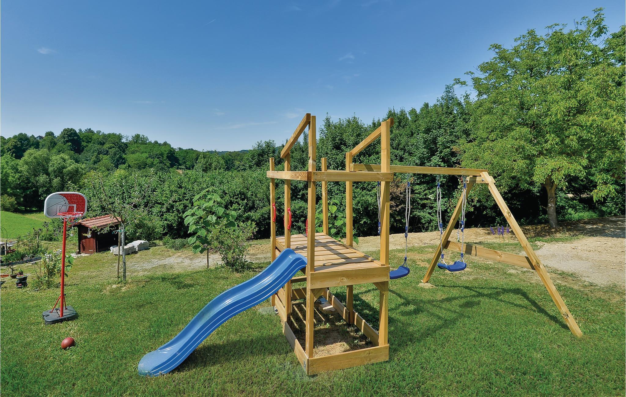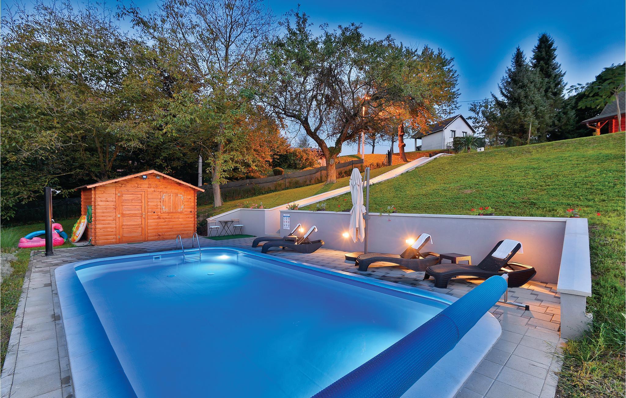 Lidt i afstand af Varazdinske Toplice ligger dette omhyggeligt indrettede hus bygget af træ. På den store grund ligger poolen, med et springvand og et uv-vandrensningsanlæg samt et stort legeomårde til børnene og en terrasse hvor I kan slappe af i den behagelige skygge. Husets indre er smukt og moderne indrettet og huset selv er udstyret med alle former for komfort, til en afslappet ferie. I stueplan er der et opholdsrum med udsigt over terrassen, køkken og spisestue og et badeværelse. På første sal med skrå vægge (60 cm i siden) er der to soveværelser, en hems og et badeværelse. Der er kun en km til Varazdinske toplice, et kurbad med mineralske kilder, wellness, sportsanlæg og mulighed for at gå afslappede ture i naturen. I løbet af ferien er der også oplagt at besøge byen Varazdin, hvis monumentale og kunstneriske fortid afspejles af barokarkitektur og de harmoniske pladser og de romantiske smalle stræder. Glem ikke at besøge englemuseet.