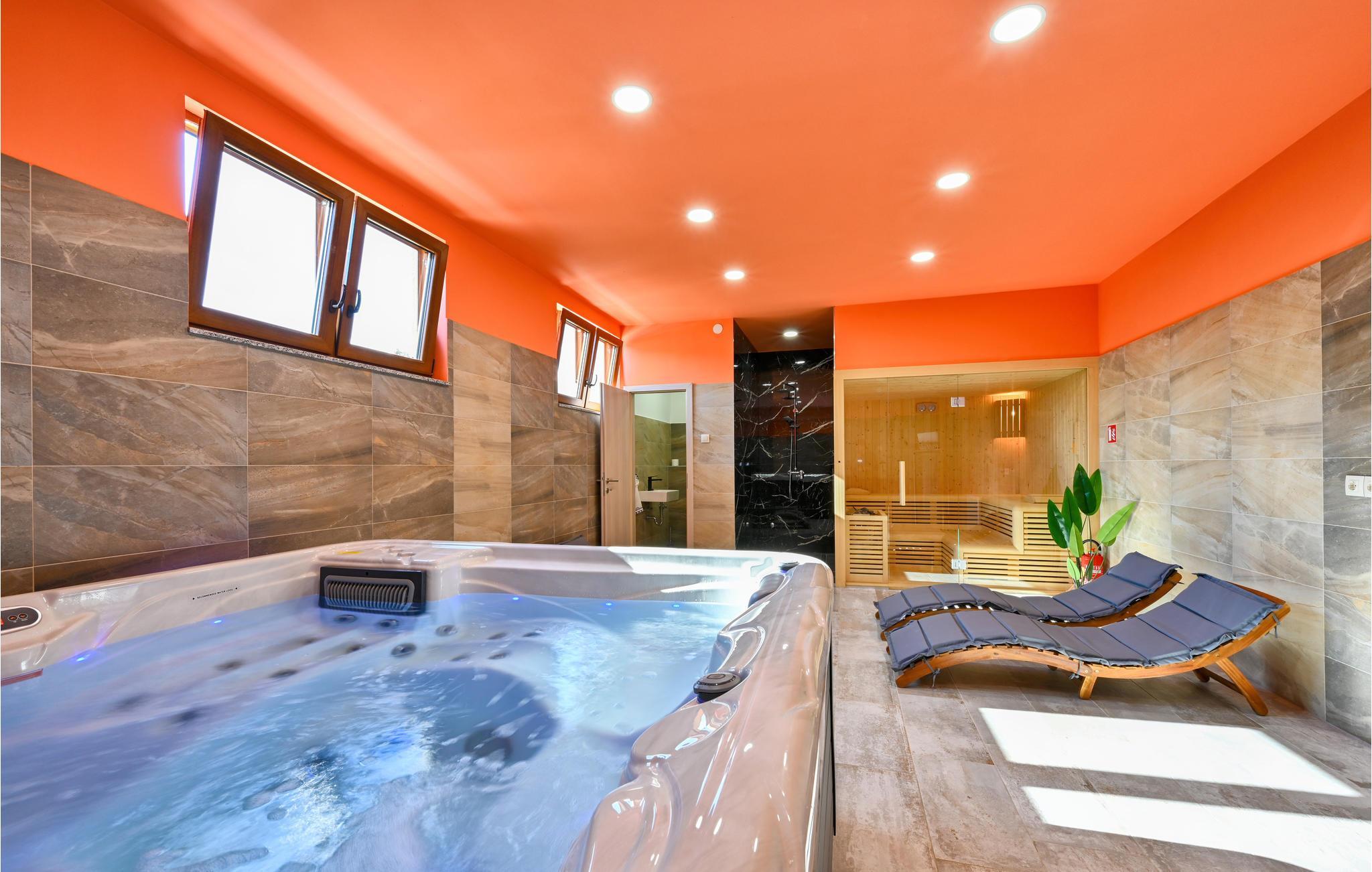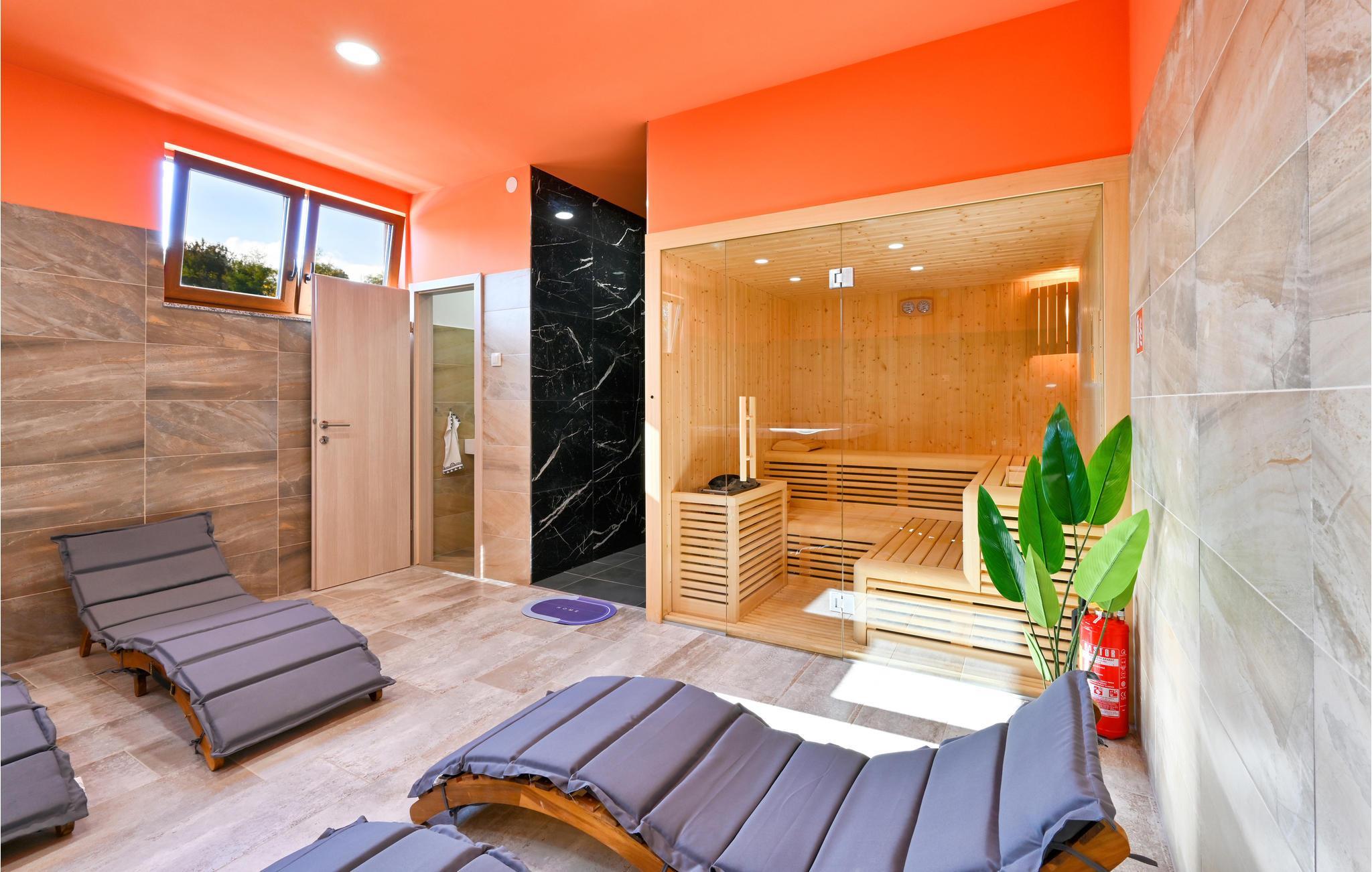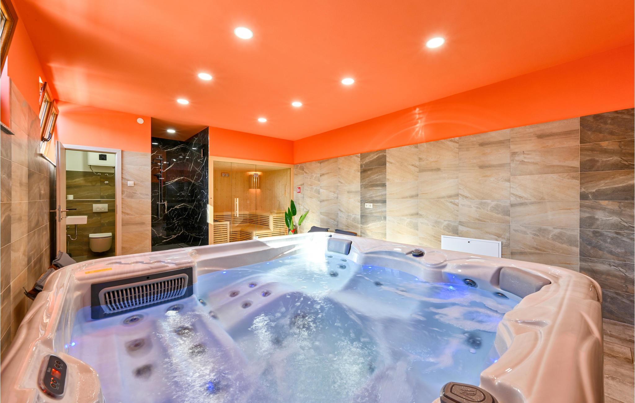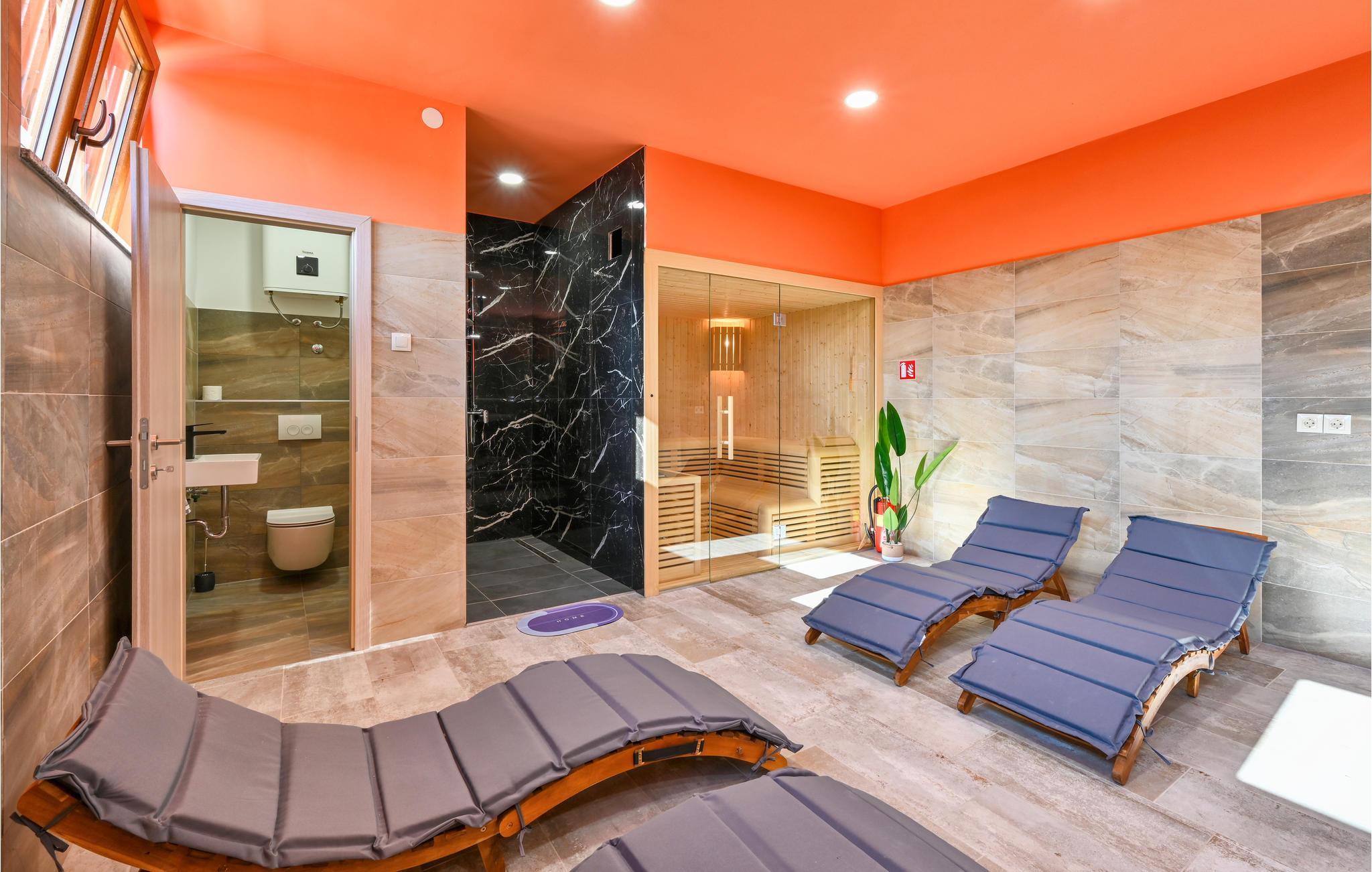 I centrum er der en skøn pool, og tæt ved poolen er der et spa-område med hydromassage og sauna samt et aktivitetsområde. I den anden bygning har I et ekstra spa-område med indendørs hydromassage til fem personer og en sauna til rådighed. Unge feriegæster kan underholde sig med rutchebane, gynge og trampolin på grunden, og voksne kan solbade i timevis. Stedet er ideelt til flere familier, der ønsker at holde ferie sammen, men samtidigt bevare privatliv. I kan grille sammen, nyde en aperitif ved poolen og sidde og hyggesnakke i solen eller skyggen.