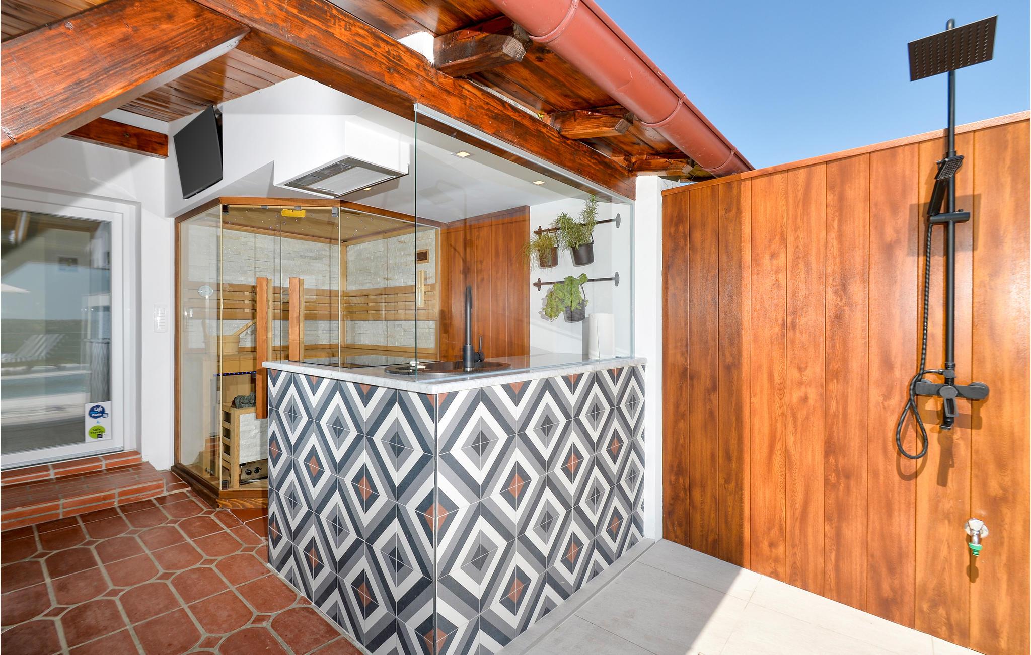 Den private udendørspool er fantastisk til afslapning i solen, og i sommermånederne virker vandet dejligt afkølende. Huset byder også på en række aktivitetsmuligheder i det fri, hvor børnene kan hygge sig med gynger, sandkasse, trampolin og lignende. Den overdækkede terrasse giver jer gode muligheder for at tilbringe ferien udendørs i al slags vejr.