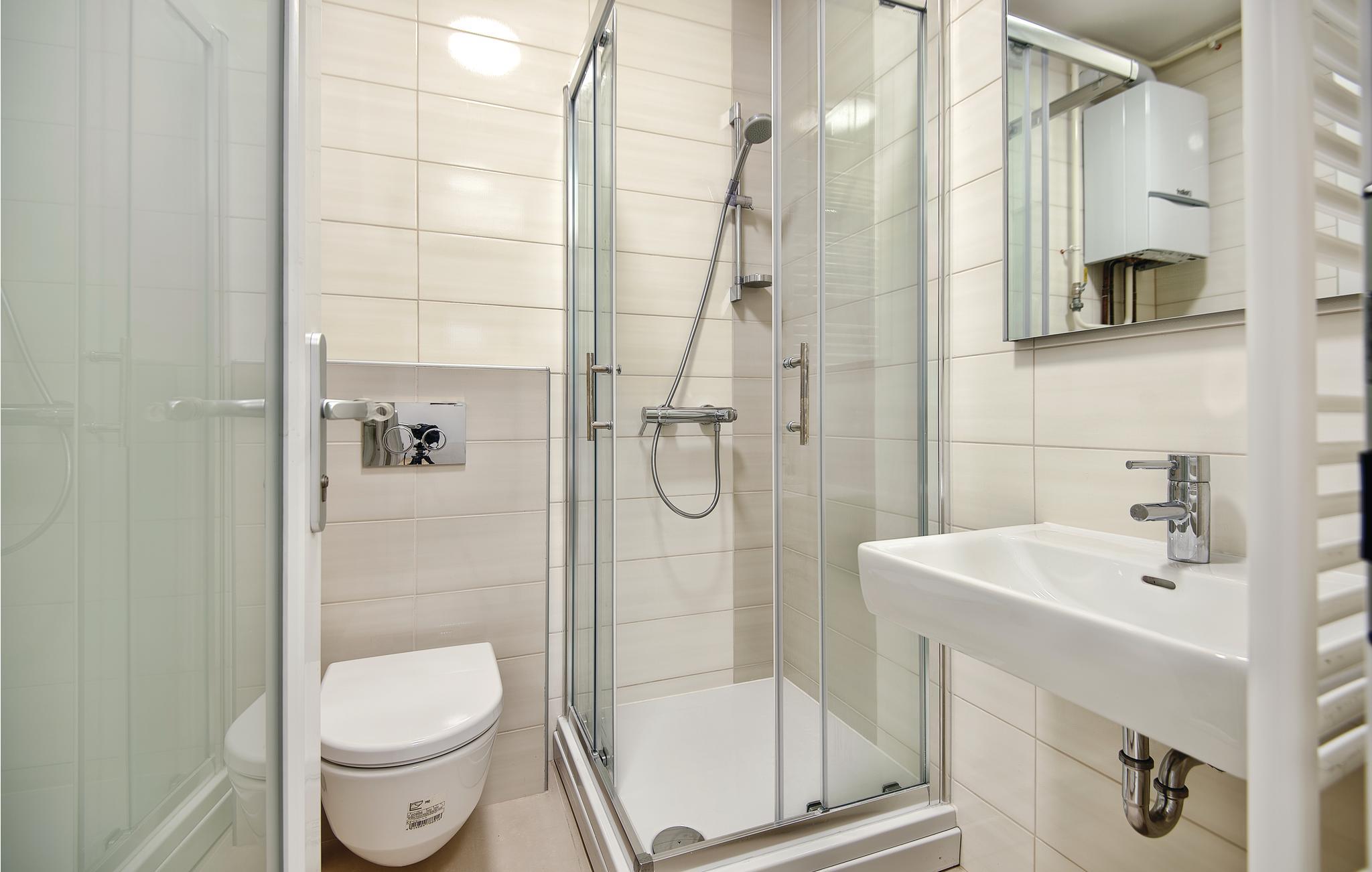 Badeværelse (nr. 1) - WC. Varmt og koldt vand. Bruser