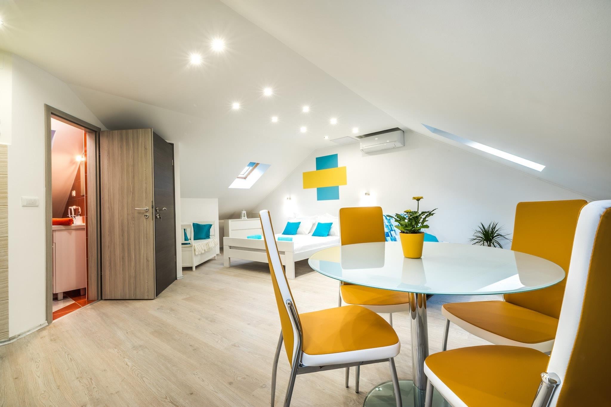 Apartments Sunshine Home tilbyder seks ferieboliger med egen forplejning i Vela Luka, en fredelig lille by på den vestlige side af øen Korcula. Fælles grillfaciliteter er til gæsternes rådighed. Bagageopbevaring er tilgængelig før indtjekning. Gratis privat parkering er tilgængelig på stedet .Denne dejlige studiolejlighed kan komfortabelt rumme op til tre personer.Den har gratis WiFi, aircondition og fladskærms-satellit-tv. Køkkenet er fuldt udstyret og leveres med spiseplads. Stuen leveres med sovesofa. Der er eget badeværelse med bruser og hårtørrer.Vaskemaskine som strygejern og strygebræt står til gæsternes rådighed.Alt hvad du behøver til ferien er inden for gåafstand. Den nærmeste strand ligger 500 m fra ejendommen. Forskellige restauranter, barer og købmand kan findes inden for 500 m. Færgehavnen i Vela Luka ligger 1,3 km fra ejendommen.