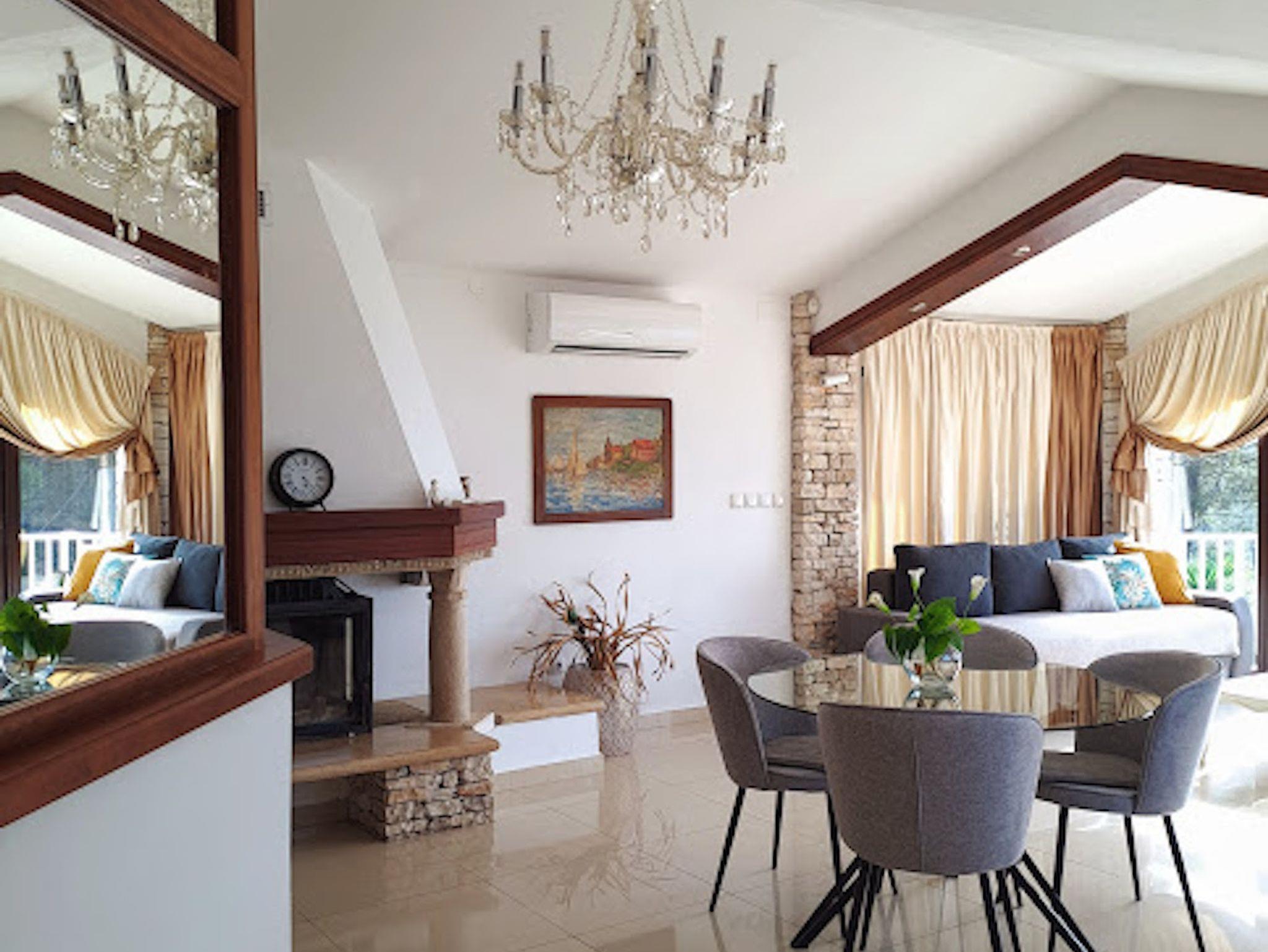 Ferienwohnung bietet Platz für 5 Gäste. Die Betten sind in Schlafzimmern, die es 2 gibt, und in Wohnzimmer, innerhalb einer Gesamtfläche von 92m2, angeordnet. Die Gäste haben eine eigene Terrasse zur Verfügung, auf der sie in warmen Sommernächten genießen können. Das Apartment bietet Meerblick. Für vollen Genuss und Entspannung gibt es einen privaten Grill für Gäste dieser Unterkunft. Während ihres Aufenthalts können Gäste das gemeinsam zur Nutzung stehende Schwimmbad benutzen. IM PREIS INBEGRIFFEN: Kurtaxe, Endreinigung, Klimatisierung, Pool, Parkplatz, Internet, Wäschewaschen, Bootsanlegeplatz, Kinderbett, Bügeleisen, Bügelbrett, Föhn, tragbarer Grill. VERBINDLICHE ZUSÄTZLICHE KOSTEN: Aufzahlung für Kurzaufenthalte (prozentualer Zuschlag pro Nächtigungsanzahl: 30% - 1, 20% - 2, 10% - 3). Die Verfügbarkeit zusätzlicher Dienstleistungen in Ihrem reservierten Termin und die Preise derselben (falls nicht aufgeführt) müssen im Voraus überprüft werden. Zusätzliche Dienstleistungen die in der Zahlungsaufforderung nicht aufgeführt sind werden direkt beim Vermieter bezahlt, angenommen der Gast nutzt auch diese.