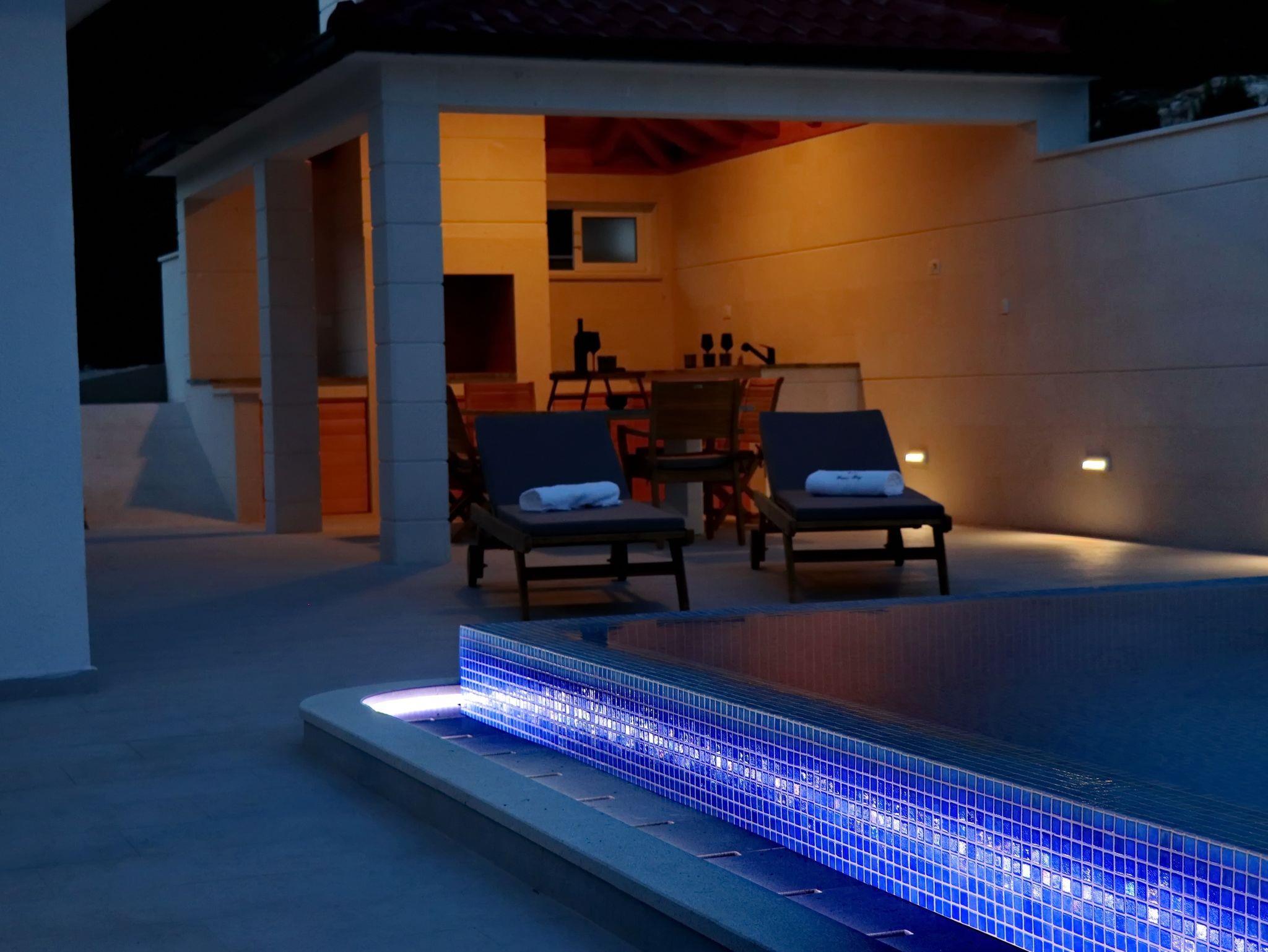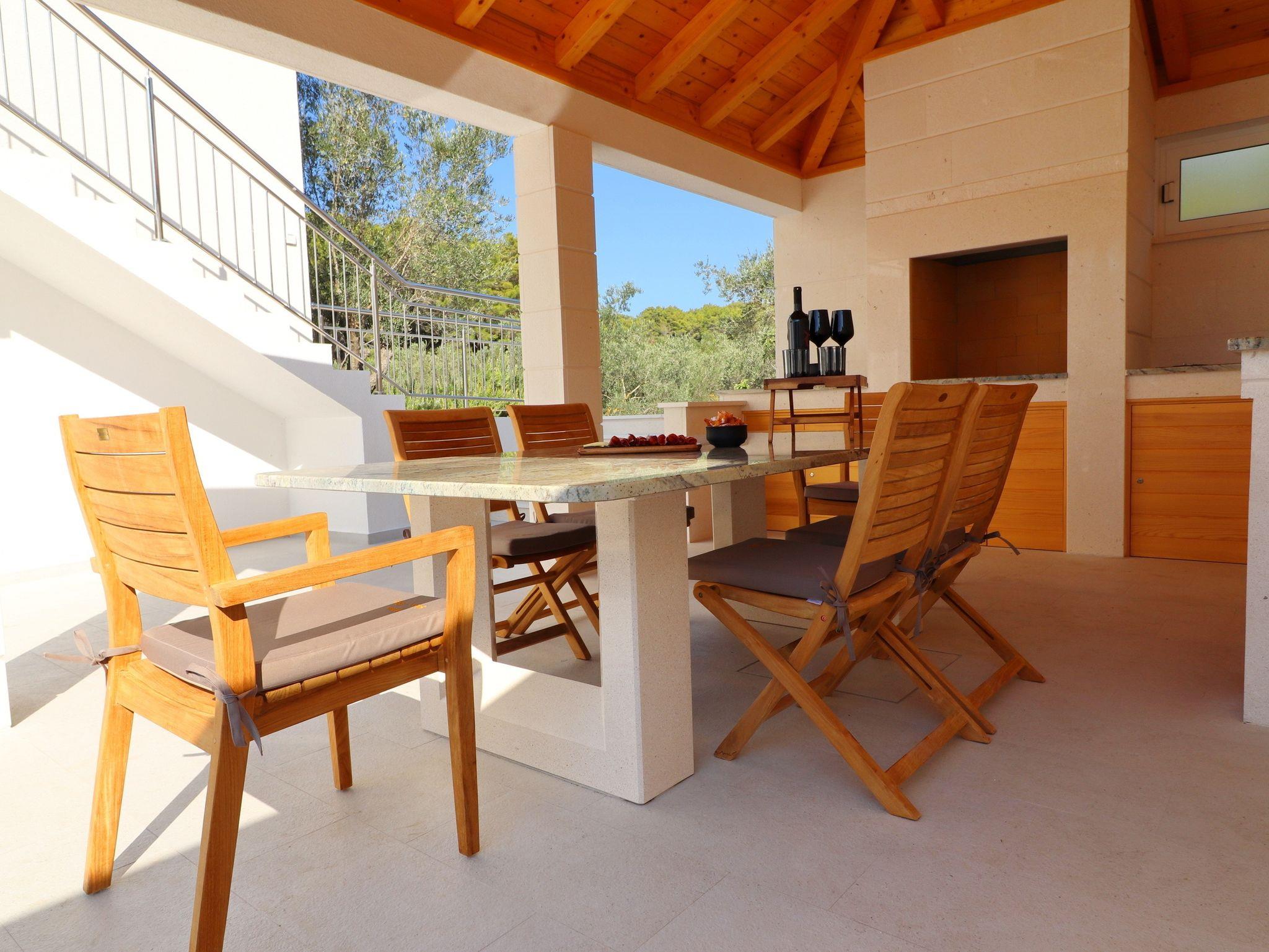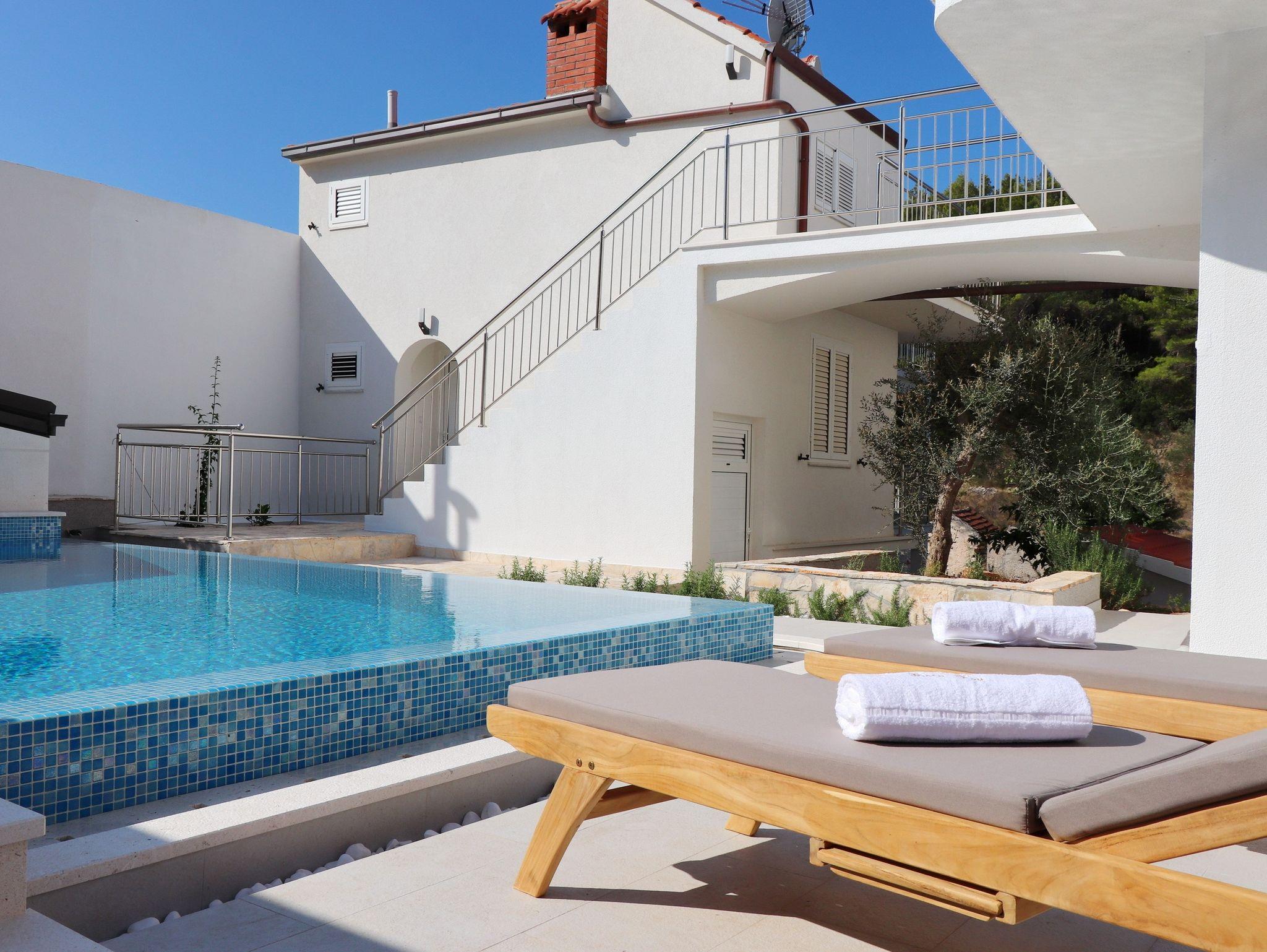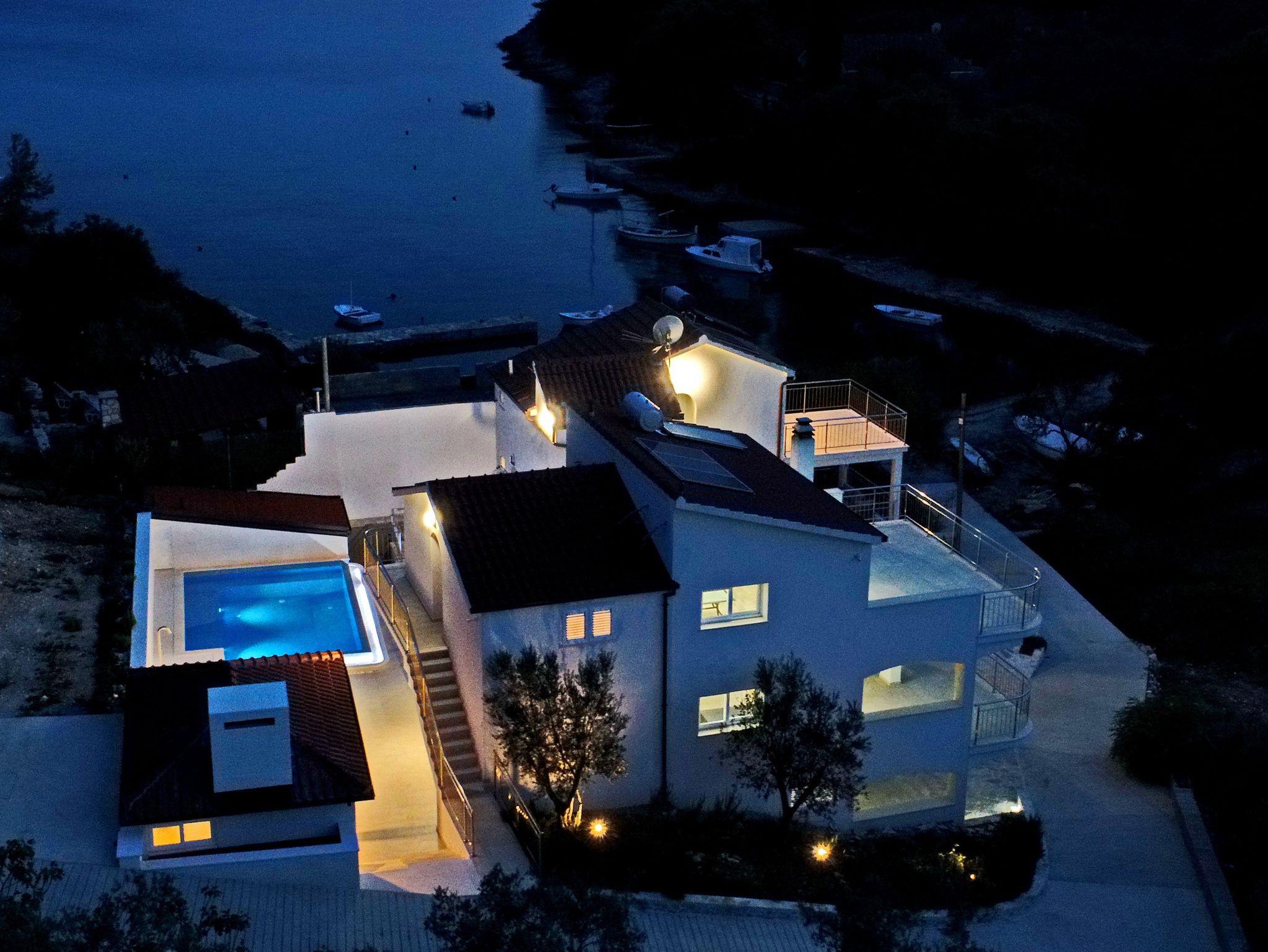 Haus bietet Platz für 12 Gäste. Die Betten sind in Schlafzimmern, die es 6 gibt, innerhalb einer Gesamtfläche von 151m2, angeordnet. Die Gäste haben eine eigene Terrasse zur Verfügung, auf der sie in warmen Sommernächten genießen können. Das Haus bietet Meerblick. Für vollen Genuss und Entspannung gibt es einen privaten Grill für Gäste dieser Unterkunft. Während ihres Aufenthalts können sich Gäste im privaten Schwimmbad entspannen. Räume der gebuchten Unterkunftseinheit werden nicht in eine Ganze verbunden. IM PREIS INBEGRIFFEN: Kurtaxe, Endreinigung, Klimatisierung, Pool, Parkplatz, Internet, Bootsanlegeplatz, Kinderbett, Bügeleisen, Bügelbrett, Föhn, Liegestühle. Die Verfügbarkeit zusätzlicher Dienstleistungen in Ihrem reservierten Termin und die Preise derselben (falls nicht aufgeführt) müssen im Voraus überprüft werden. Zusätzliche Dienstleistungen die in der Zahlungsaufforderung nicht aufgeführt sind werden direkt beim Vermieter bezahlt, angenommen der Gast nutzt auch diese.