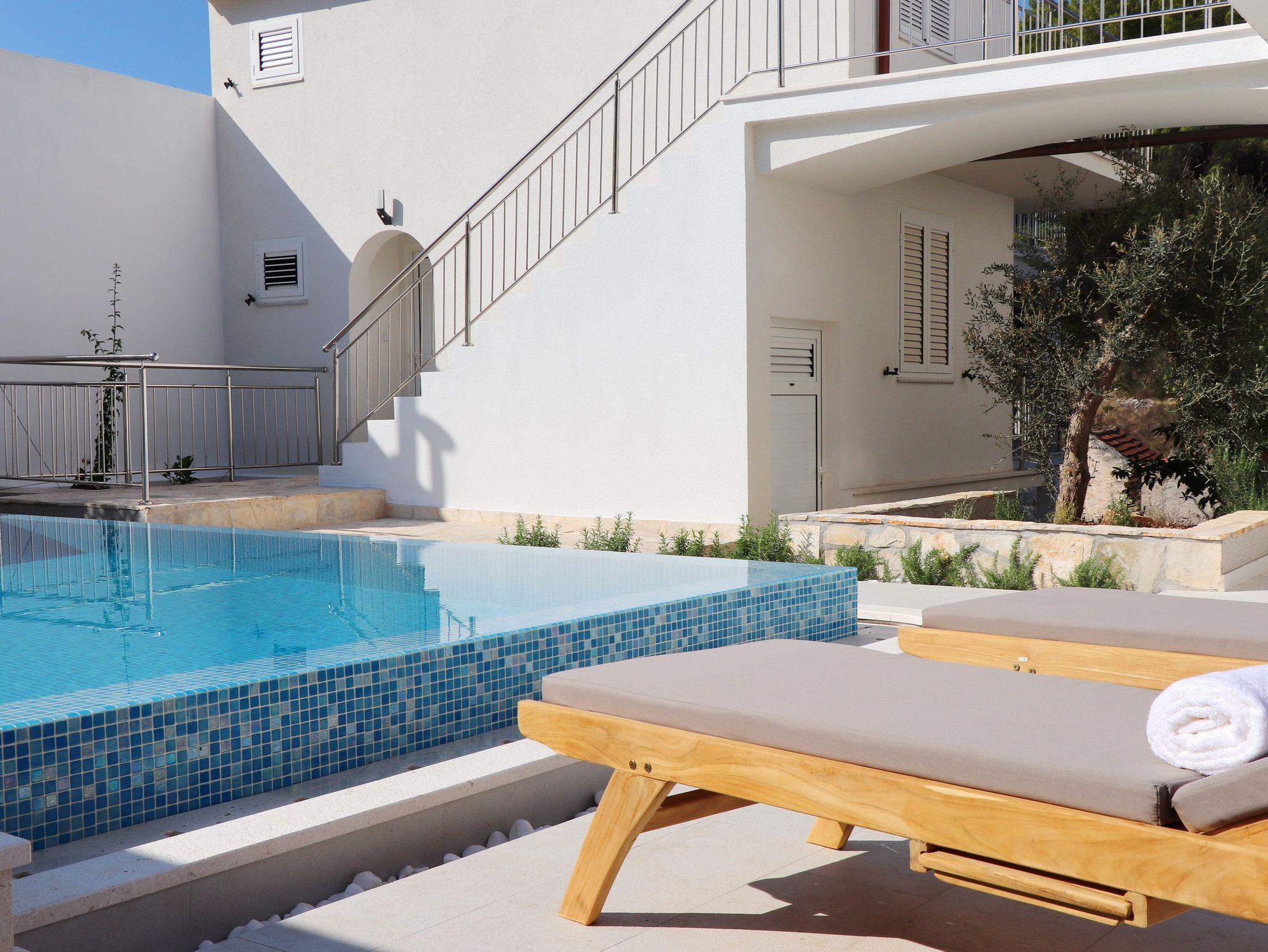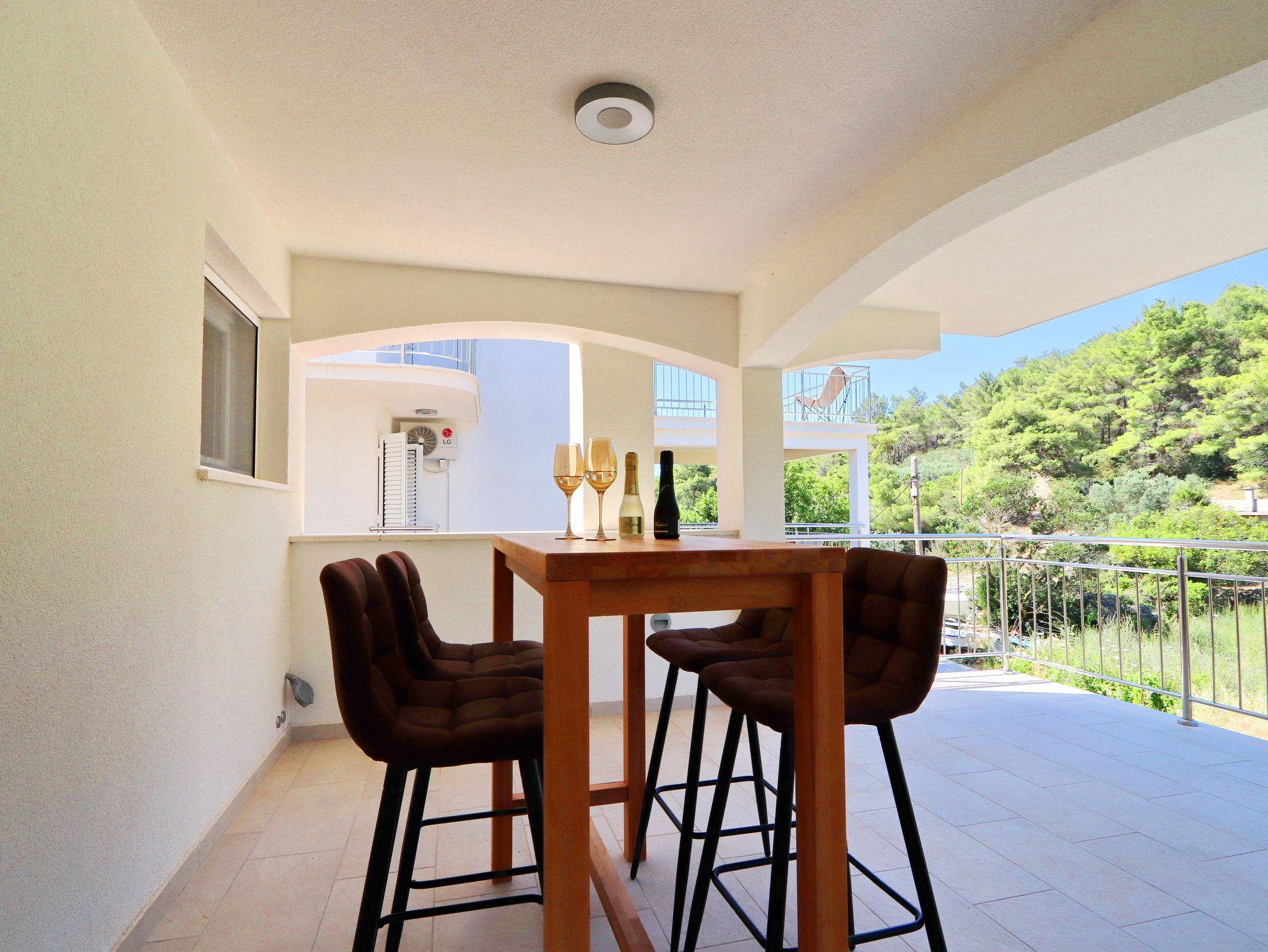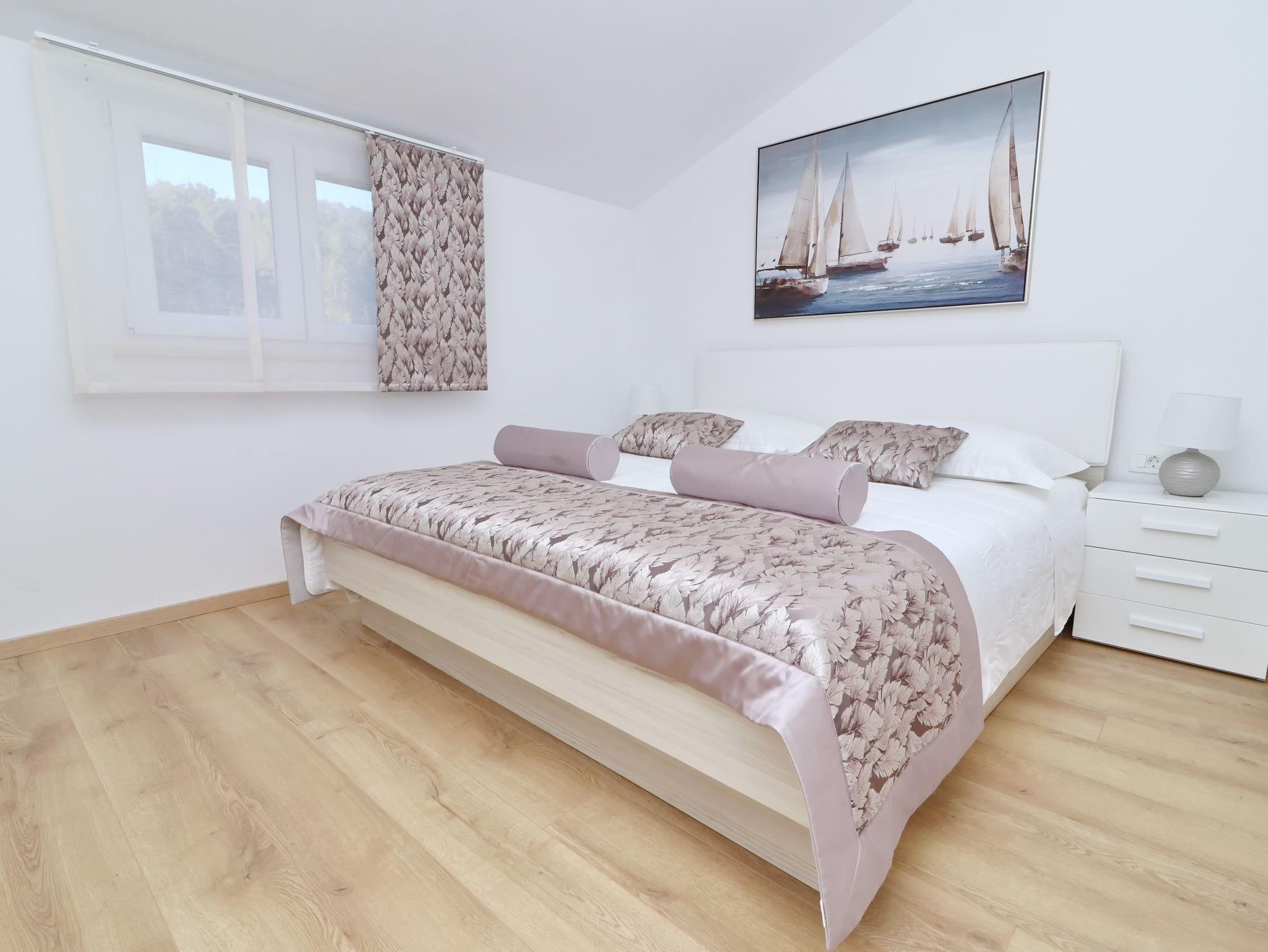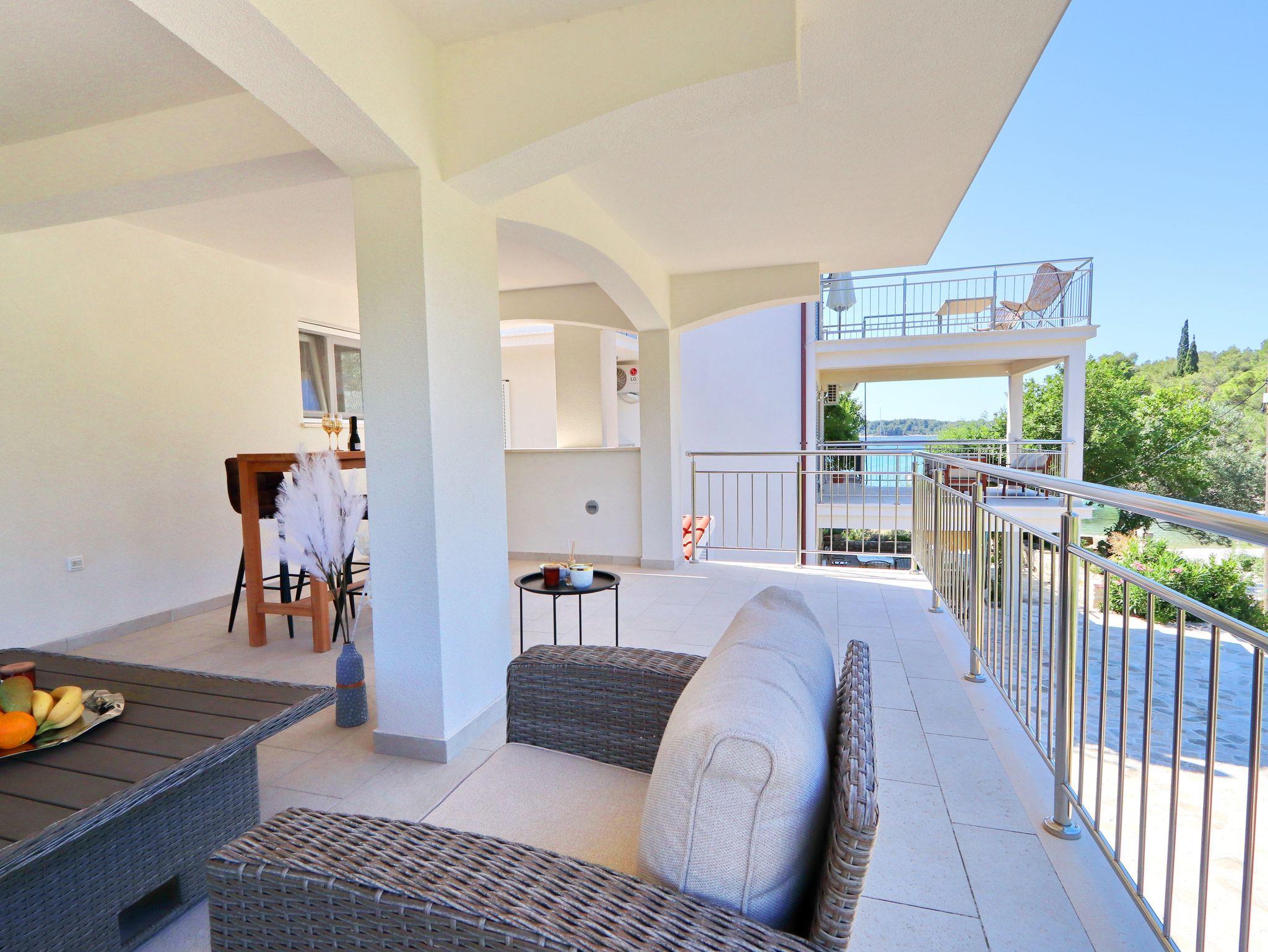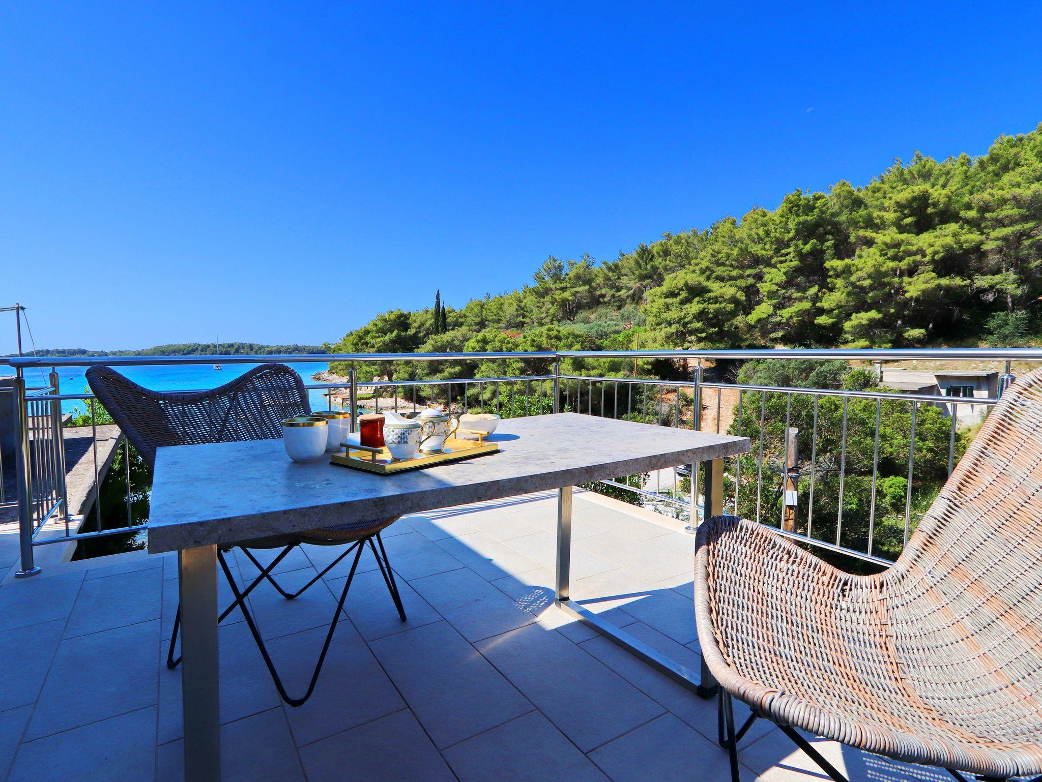 Haus bietet Platz für 12 Gäste. Die Betten sind in Schlafzimmern, die es 6 gibt, innerhalb einer Gesamtfläche von 151m2, angeordnet. Die Gäste haben eine eigene Terrasse zur Verfügung, auf der sie in warmen Sommernächten genießen können. Das Haus bietet Meerblick. Für vollen Genuss und Entspannung gibt es einen privaten Grill für Gäste dieser Unterkunft. Während ihres Aufenthalts können sich Gäste im privaten Schwimmbad entspannen. Räume der gebuchten Unterkunftseinheit werden nicht in eine Ganze verbunden. IM PREIS INBEGRIFFEN: Kurtaxe, Endreinigung, Klimatisierung, Pool, Parkplatz, Internet, Bootsanlegeplatz, Kinderbett, Bügeleisen, Bügelbrett, Föhn, Liegestühle. Die Verfügbarkeit zusätzlicher Dienstleistungen in Ihrem reservierten Termin und die Preise derselben (falls nicht aufgeführt) müssen im Voraus überprüft werden. Zusätzliche Dienstleistungen die in der Zahlungsaufforderung nicht aufgeführt sind werden direkt beim Vermieter bezahlt, angenommen der Gast nutzt auch diese.