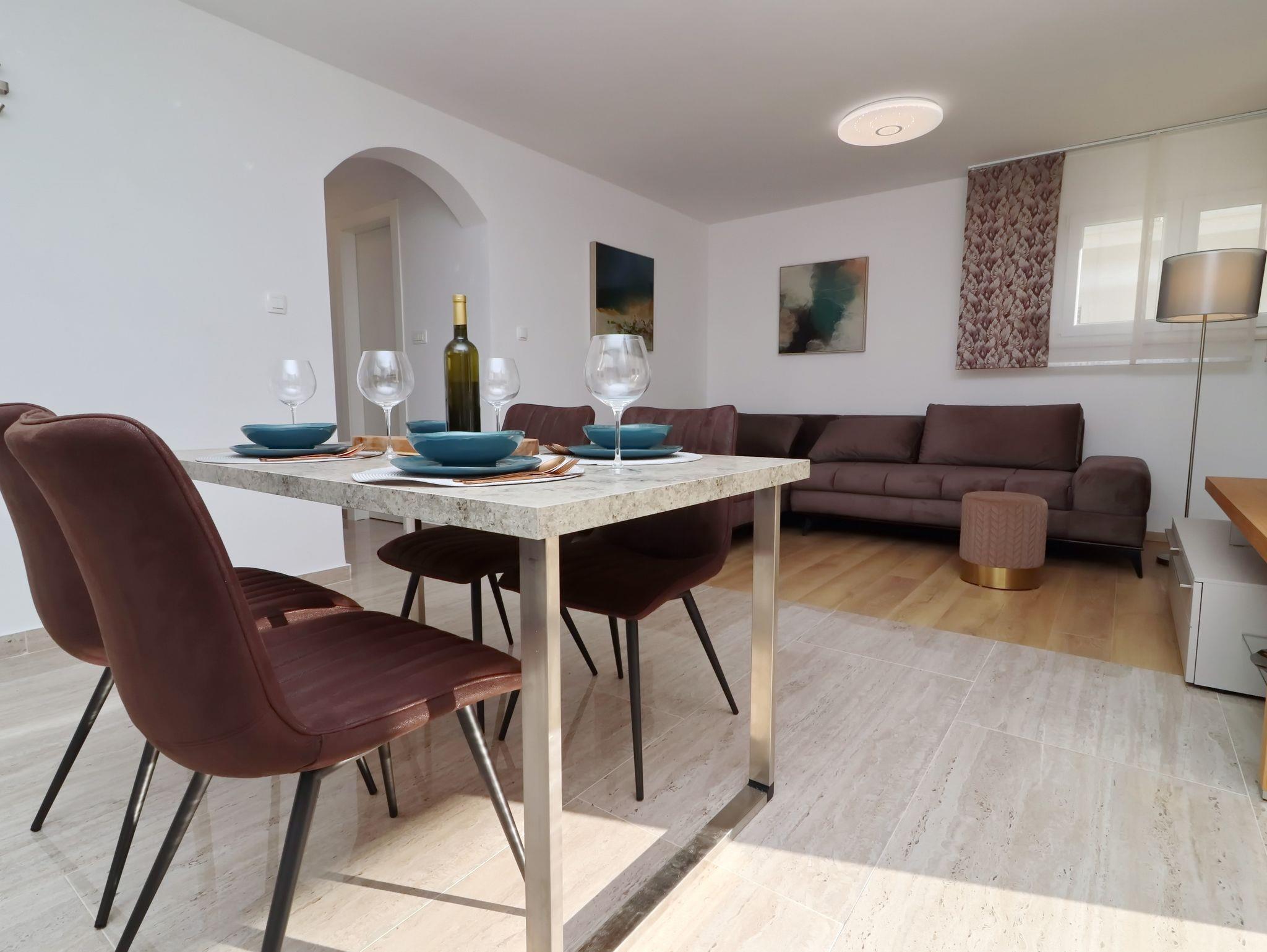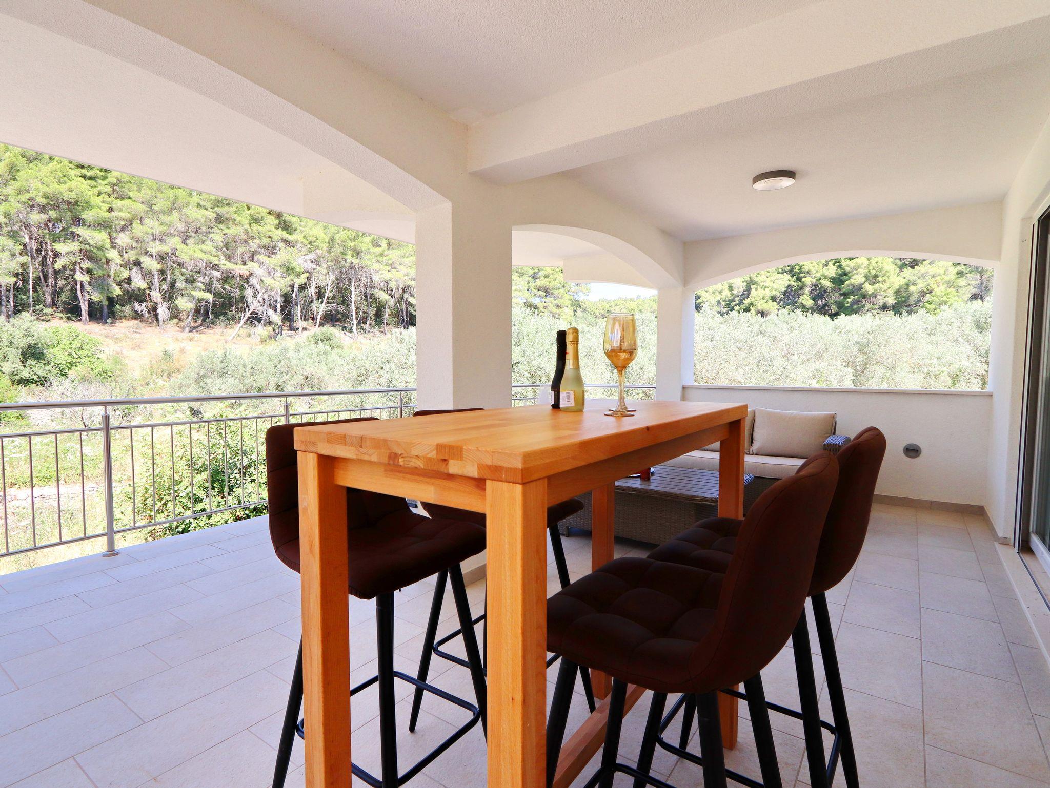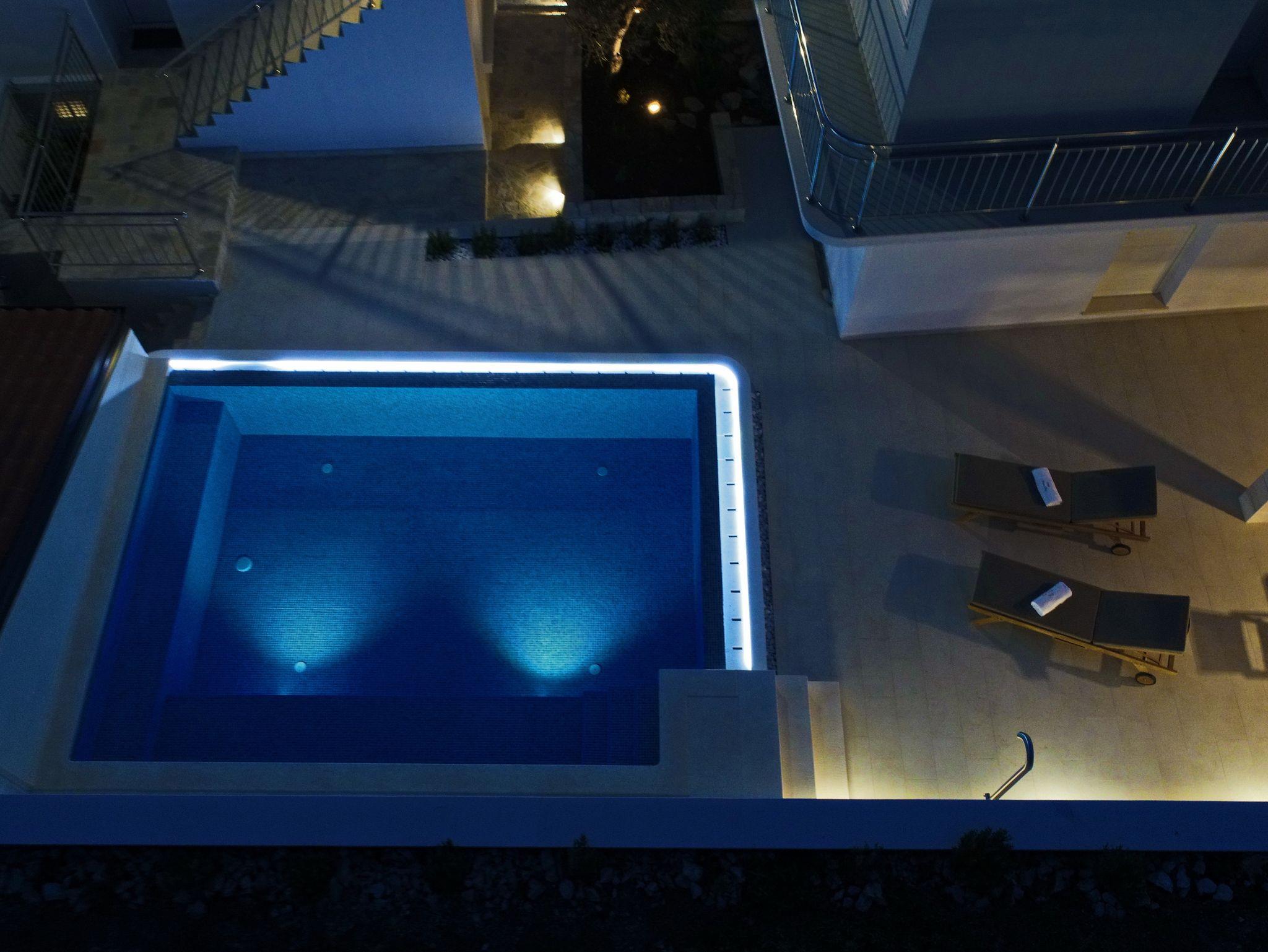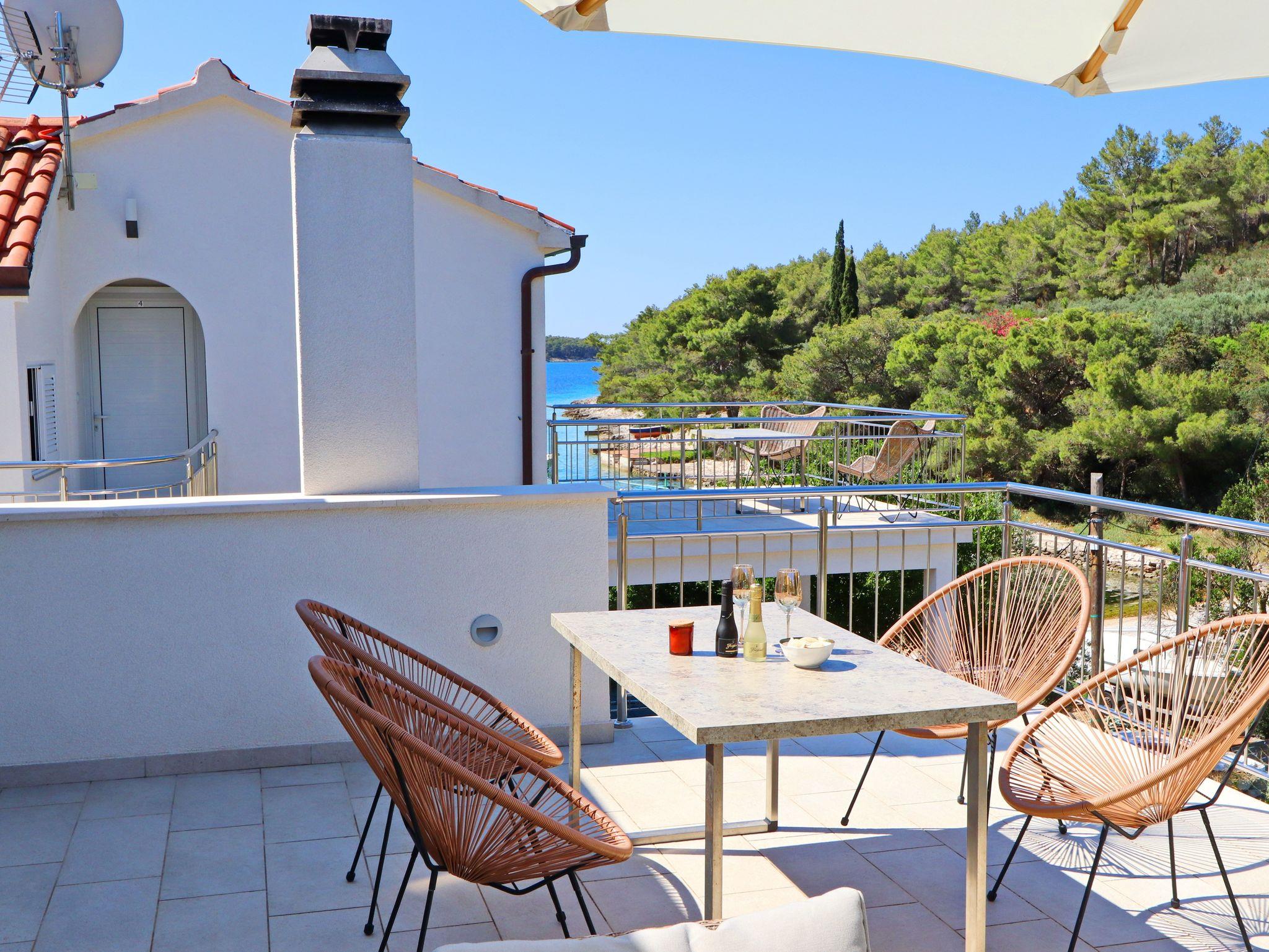 Haus bietet Platz für 12 Gäste. Die Betten sind in Schlafzimmern, die es 6 gibt, innerhalb einer Gesamtfläche von 151m2, angeordnet. Die Gäste haben eine eigene Terrasse zur Verfügung, auf der sie in warmen Sommernächten genießen können. Das Haus bietet Meerblick. Für vollen Genuss und Entspannung gibt es einen privaten Grill für Gäste dieser Unterkunft. Während ihres Aufenthalts können sich Gäste im privaten Schwimmbad entspannen. Räume der gebuchten Unterkunftseinheit werden nicht in eine Ganze verbunden. IM PREIS INBEGRIFFEN: Kurtaxe, Endreinigung, Klimatisierung, Pool, Parkplatz, Internet, Bootsanlegeplatz, Kinderbett, Bügeleisen, Bügelbrett, Föhn, Liegestühle. Die Verfügbarkeit zusätzlicher Dienstleistungen in Ihrem reservierten Termin und die Preise derselben (falls nicht aufgeführt) müssen im Voraus überprüft werden. Zusätzliche Dienstleistungen die in der Zahlungsaufforderung nicht aufgeführt sind werden direkt beim Vermieter bezahlt, angenommen der Gast nutzt auch diese.