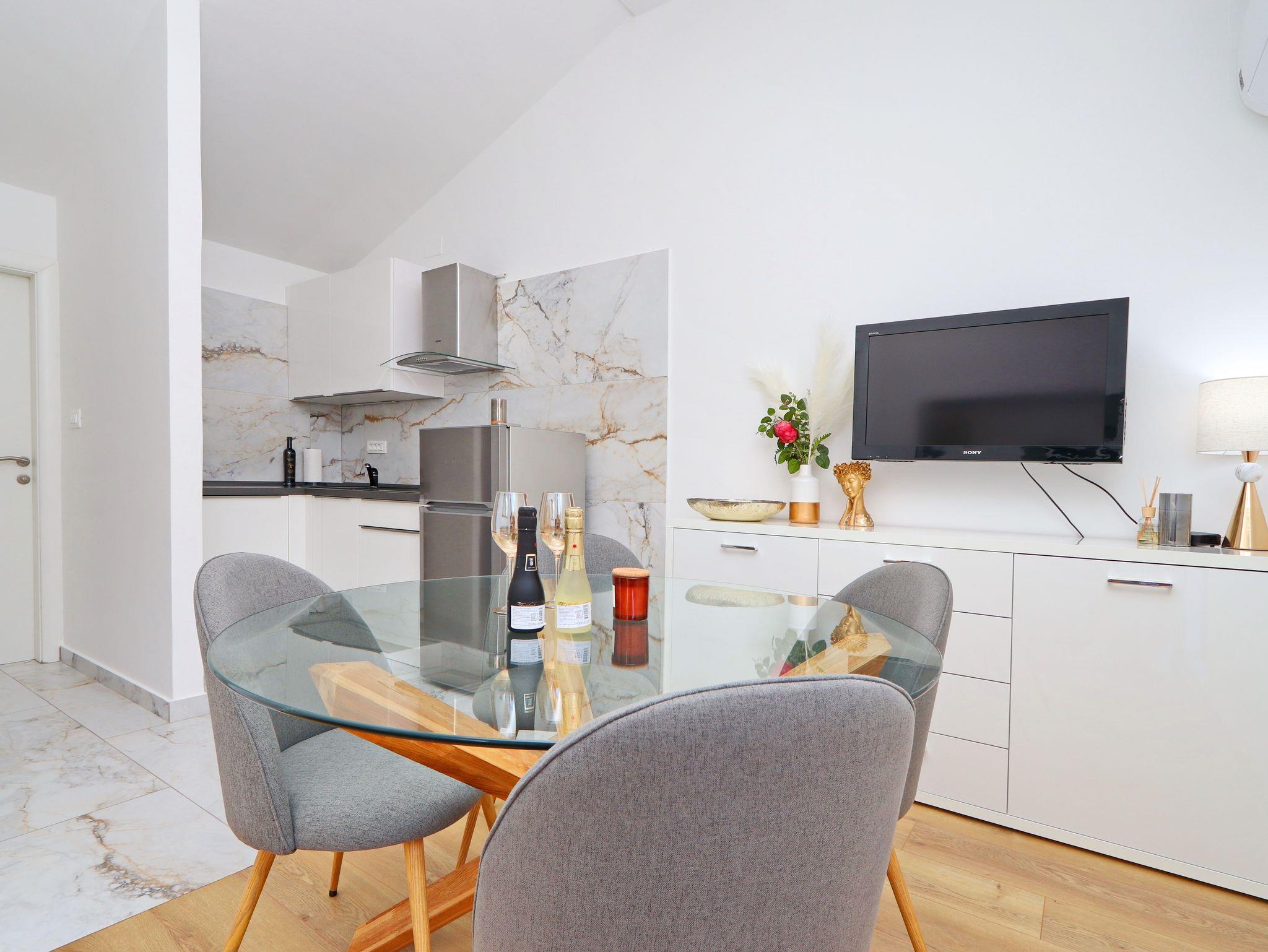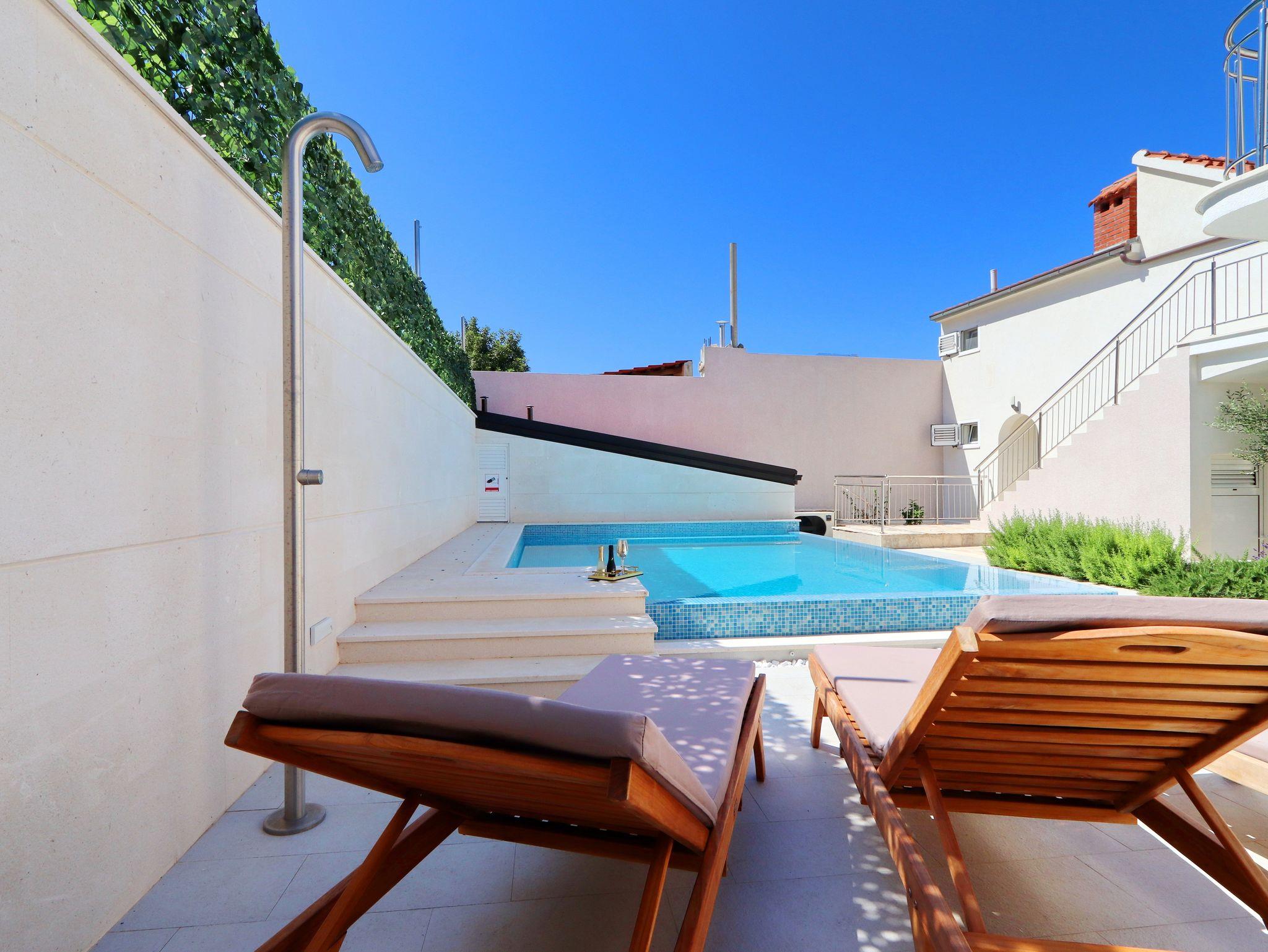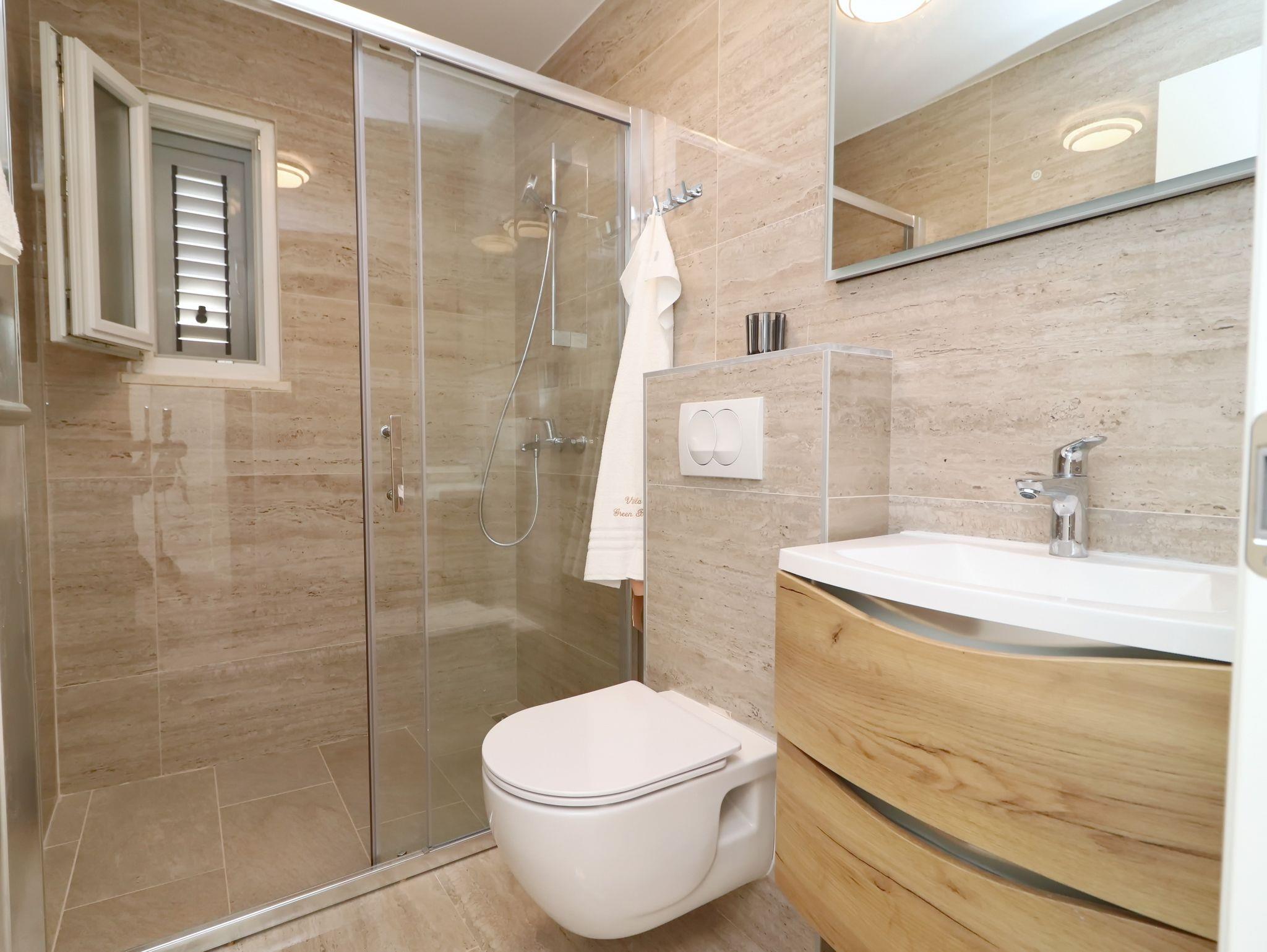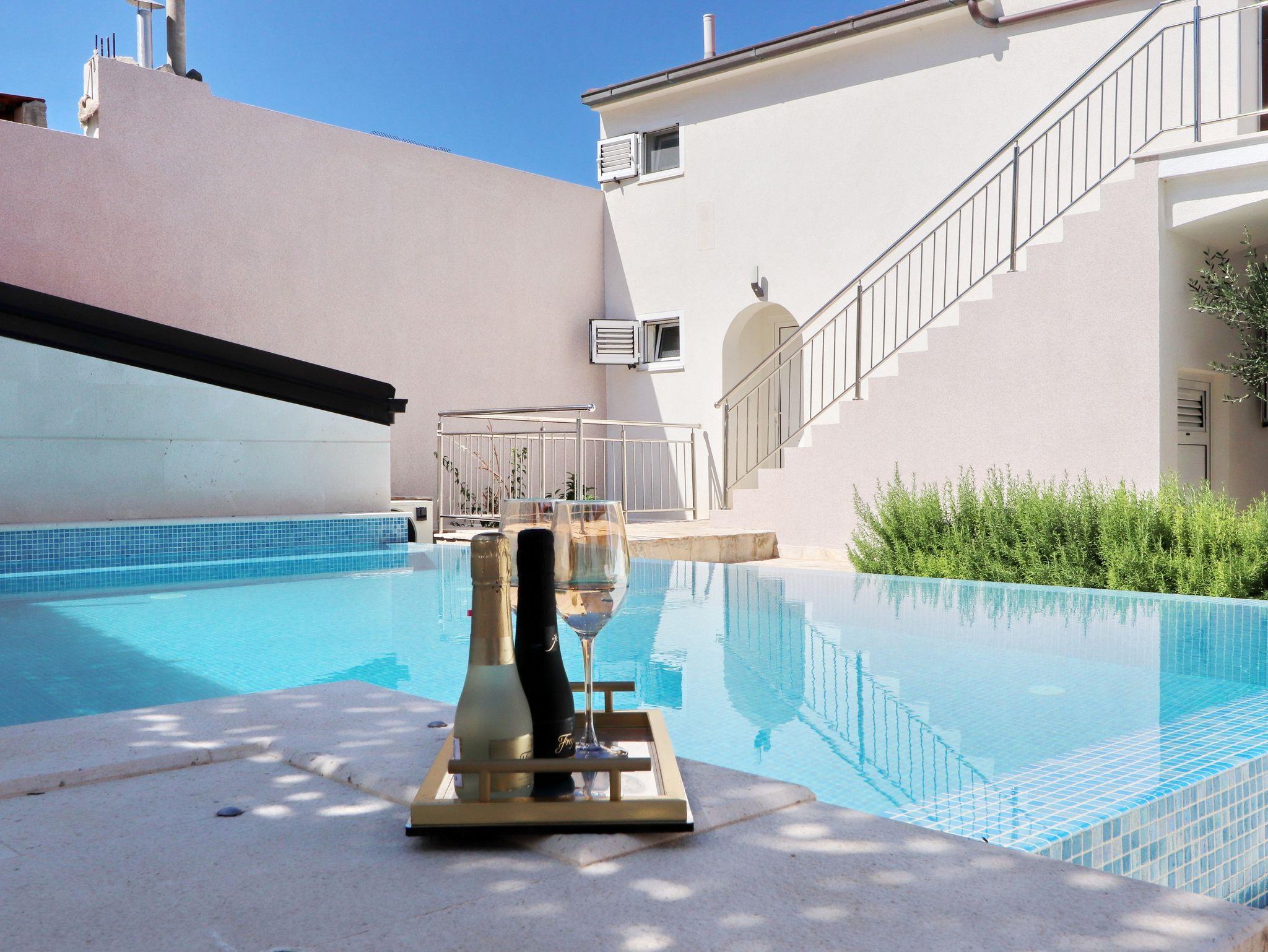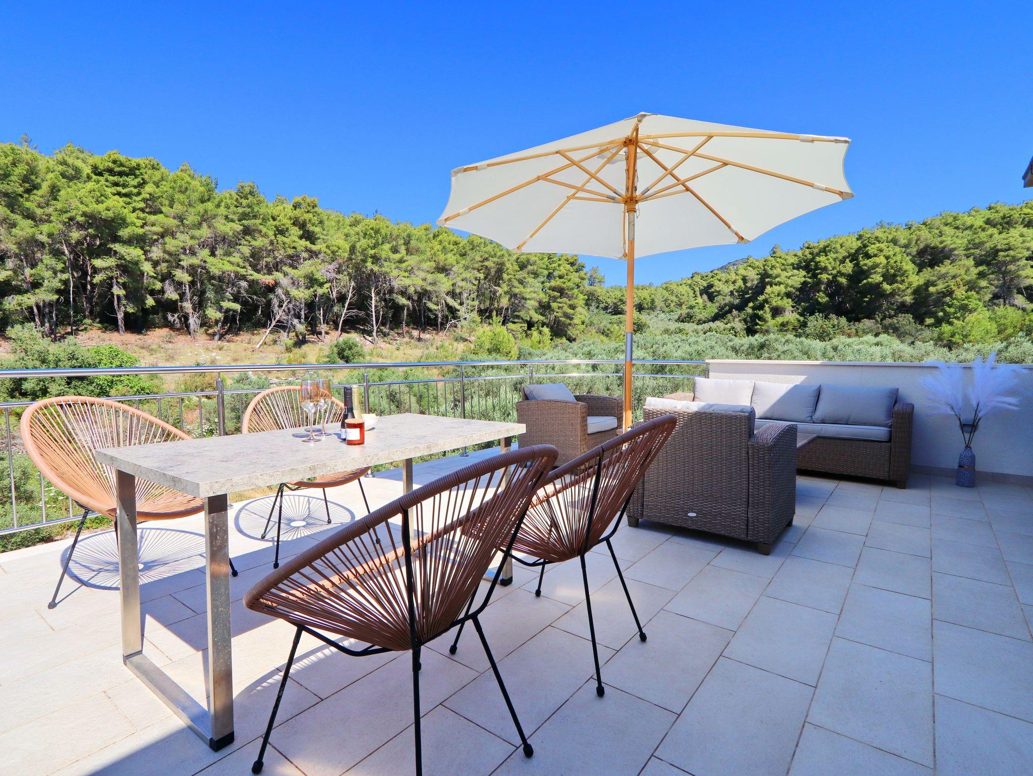 Haus bietet Platz für 12 Gäste. Die Betten sind in Schlafzimmern, die es 6 gibt, innerhalb einer Gesamtfläche von 151m2, angeordnet. Die Gäste haben eine eigene Terrasse zur Verfügung, auf der sie in warmen Sommernächten genießen können. Das Haus bietet Meerblick. Für vollen Genuss und Entspannung gibt es einen privaten Grill für Gäste dieser Unterkunft. Während ihres Aufenthalts können sich Gäste im privaten Schwimmbad entspannen. Räume der gebuchten Unterkunftseinheit werden nicht in eine Ganze verbunden. IM PREIS INBEGRIFFEN: Kurtaxe, Endreinigung, Klimatisierung, Pool, Parkplatz, Internet, Bootsanlegeplatz, Kinderbett, Bügeleisen, Bügelbrett, Föhn, Liegestühle. Die Verfügbarkeit zusätzlicher Dienstleistungen in Ihrem reservierten Termin und die Preise derselben (falls nicht aufgeführt) müssen im Voraus überprüft werden. Zusätzliche Dienstleistungen die in der Zahlungsaufforderung nicht aufgeführt sind werden direkt beim Vermieter bezahlt, angenommen der Gast nutzt auch diese.