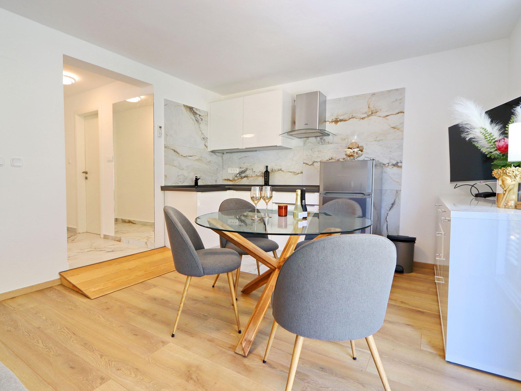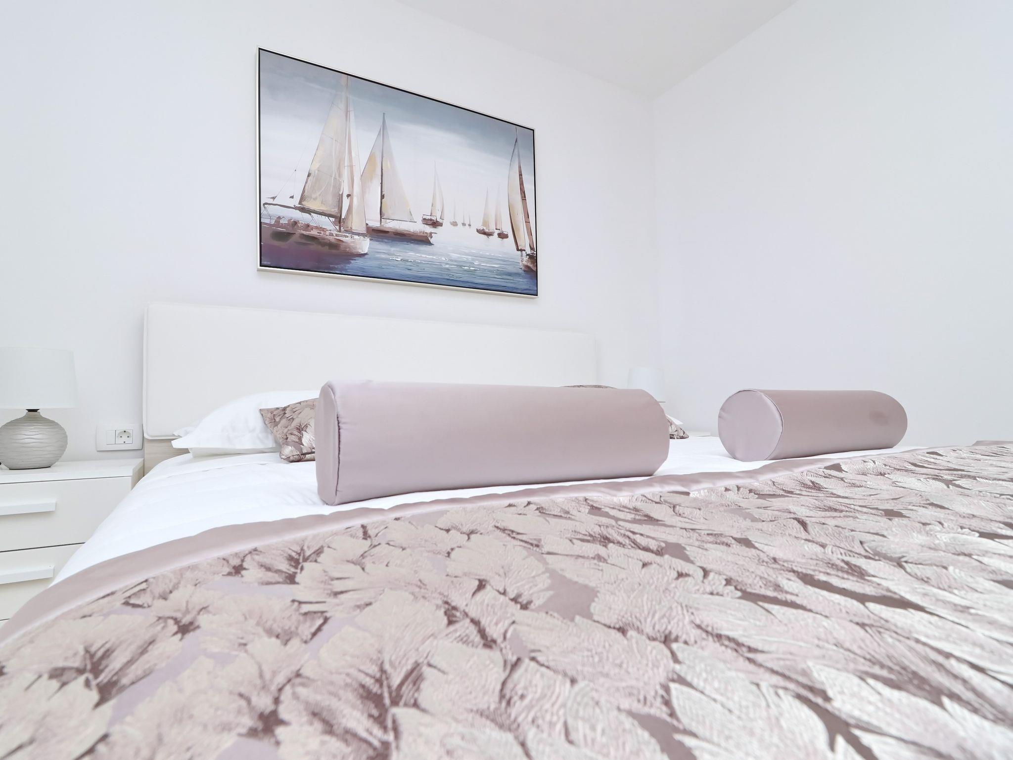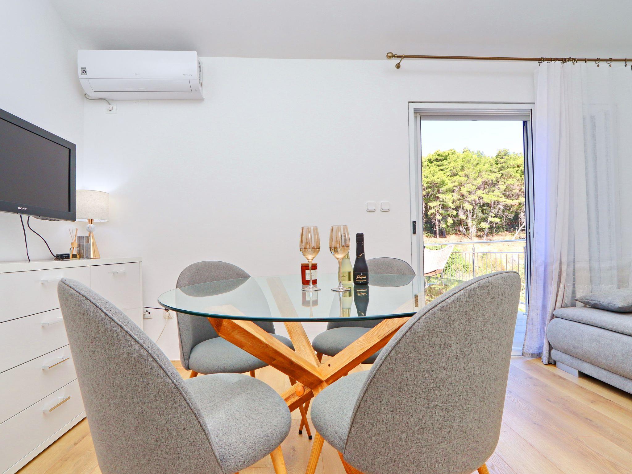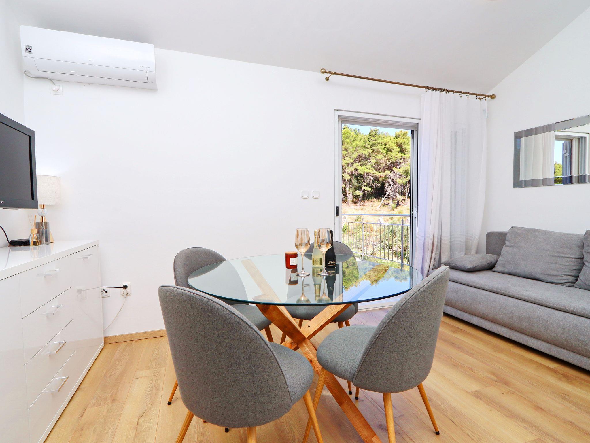 Haus bietet Platz für 12 Gäste. Die Betten sind in Schlafzimmern, die es 6 gibt, innerhalb einer Gesamtfläche von 151m2, angeordnet. Die Gäste haben eine eigene Terrasse zur Verfügung, auf der sie in warmen Sommernächten genießen können. Das Haus bietet Meerblick. Für vollen Genuss und Entspannung gibt es einen privaten Grill für Gäste dieser Unterkunft. Während ihres Aufenthalts können sich Gäste im privaten Schwimmbad entspannen. Räume der gebuchten Unterkunftseinheit werden nicht in eine Ganze verbunden. IM PREIS INBEGRIFFEN: Kurtaxe, Endreinigung, Klimatisierung, Pool, Parkplatz, Internet, Bootsanlegeplatz, Kinderbett, Bügeleisen, Bügelbrett, Föhn, Liegestühle. Die Verfügbarkeit zusätzlicher Dienstleistungen in Ihrem reservierten Termin und die Preise derselben (falls nicht aufgeführt) müssen im Voraus überprüft werden. Zusätzliche Dienstleistungen die in der Zahlungsaufforderung nicht aufgeführt sind werden direkt beim Vermieter bezahlt, angenommen der Gast nutzt auch diese.