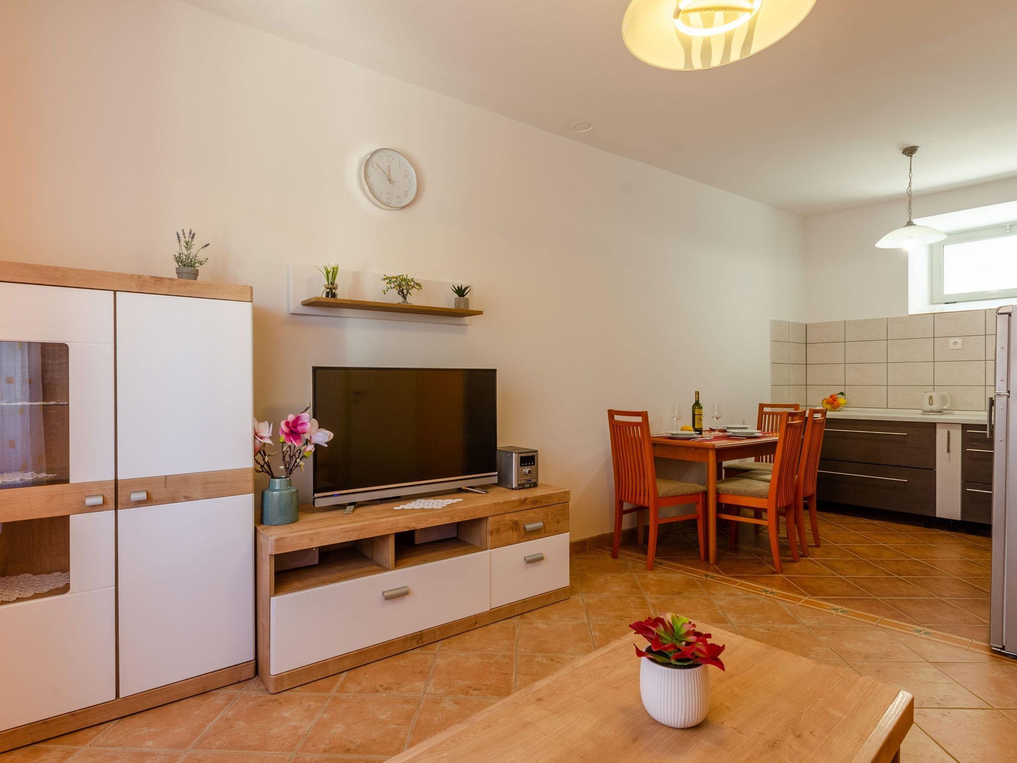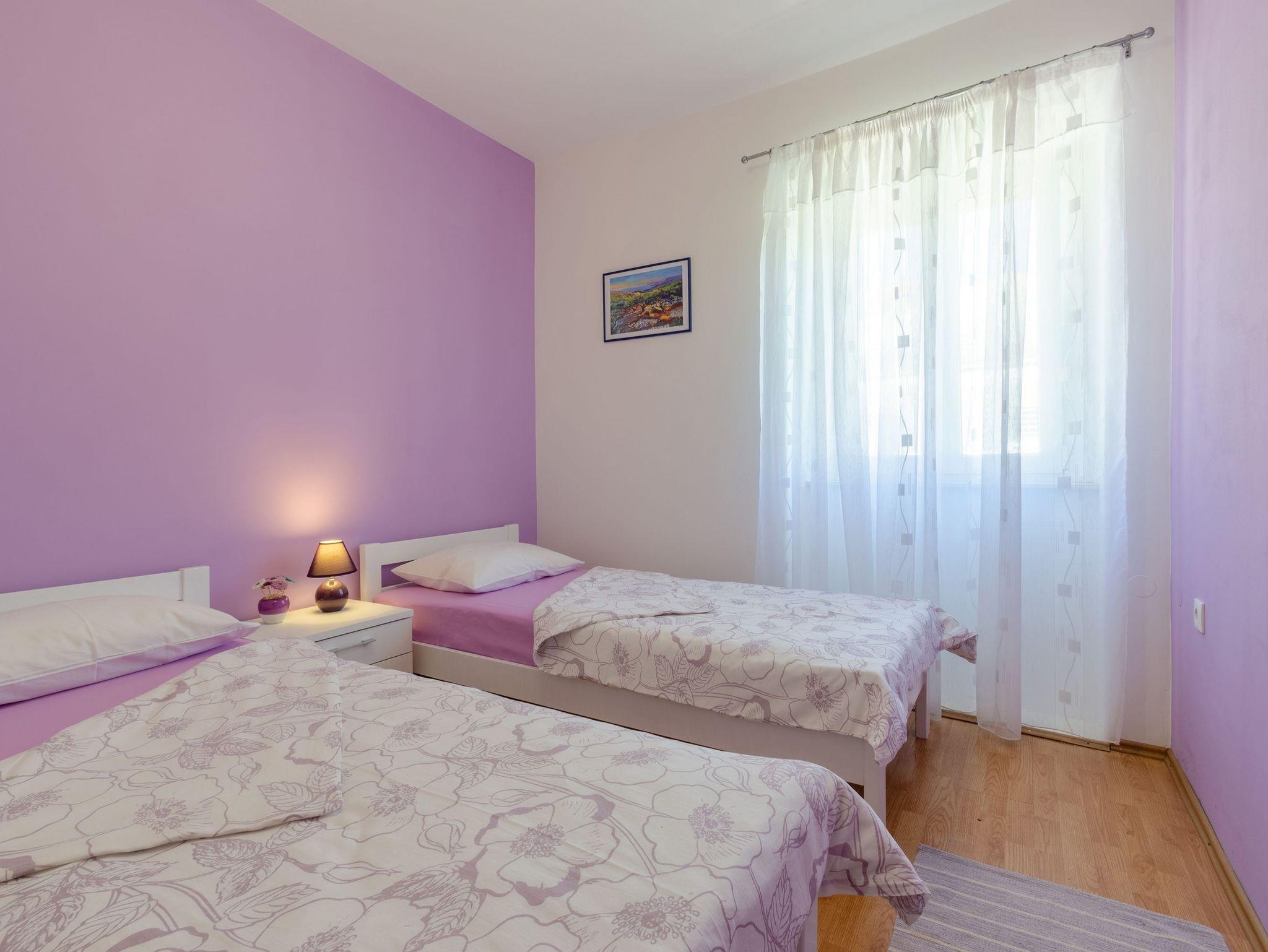 Haus bietet Platz für 4 Gäste. Die Betten sind in Schlafzimmern, die es 2 gibt, innerhalb einer Gesamtfläche von 59m2, angeordnet. Für vollen Genuss und Entspannung gibt es einen privaten Grill für Gäste dieser Unterkunft. Die reservierte Unterkunftseinheit hat keinen Balkon und keine Terrasse. IM PREIS INBEGRIFFEN: Kurtaxe, Endreinigung, Klimatisierung, Parkplatz, Internet, Kinderbett, Bügeleisen, Bügelbrett, Föhn. VERBINDLICHE ZUSÄTZLICHE KOSTEN: Aufzahlung für Kurzaufenthalte (prozentualer Zuschlag pro Nächtigungsanzahl: 30% - 1, 20% - 2, 10% - 3). Die Verfügbarkeit zusätzlicher Dienstleistungen in Ihrem reservierten Termin und die Preise derselben (falls nicht aufgeführt) müssen im Voraus überprüft werden. Zusätzliche Dienstleistungen die in der Zahlungsaufforderung nicht aufgeführt sind werden direkt beim Vermieter bezahlt, angenommen der Gast nutzt auch diese.