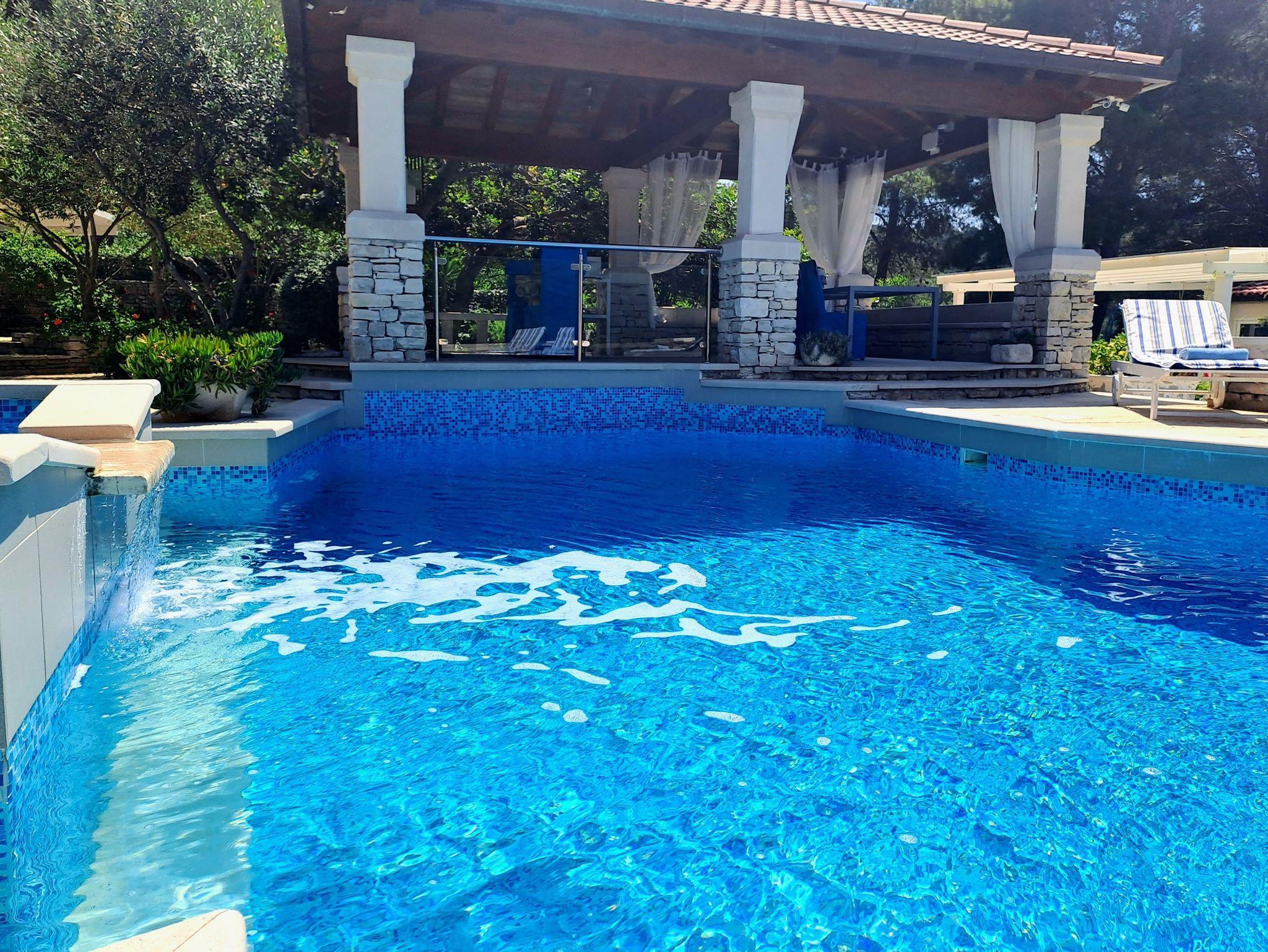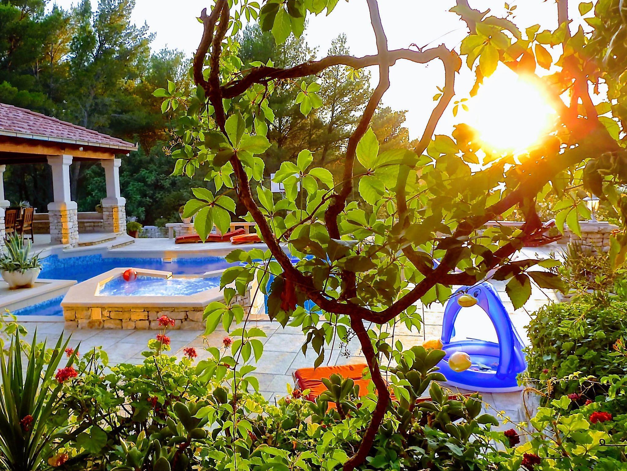 Umgebung des Objekts (Eingerichtet), Hof (1000m2, Kinderbereich, Sitzbereich), Parkplatz (Anzahl der Parkplätze: 6, Entfernung vom Objekt: im Hof), Pool: gemeinsam, Dimensionen: 10.5m x 5.5m x 1.7m, Wassertyp: Salzwasser, WiFi Internet, Wäschewaschen, Bootsanlegeplatz (Entfernung vom Objekt: 50 m, Bootsanlegeplatztyp: an der Küste), Föhn, Bügeleisen, Bügelbrett, Tragbarer Grill, Kinderbett