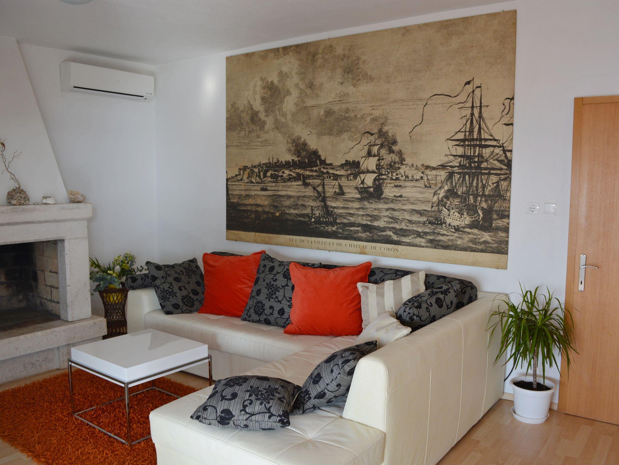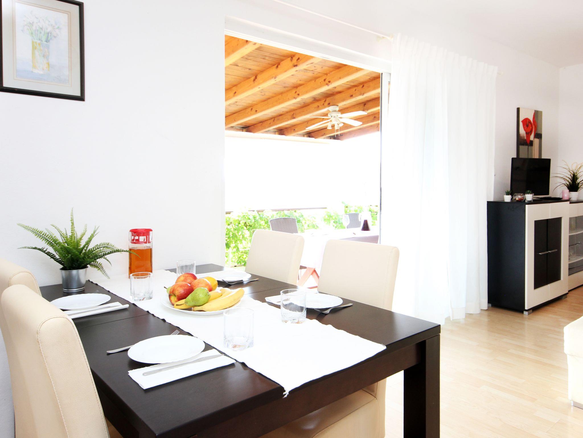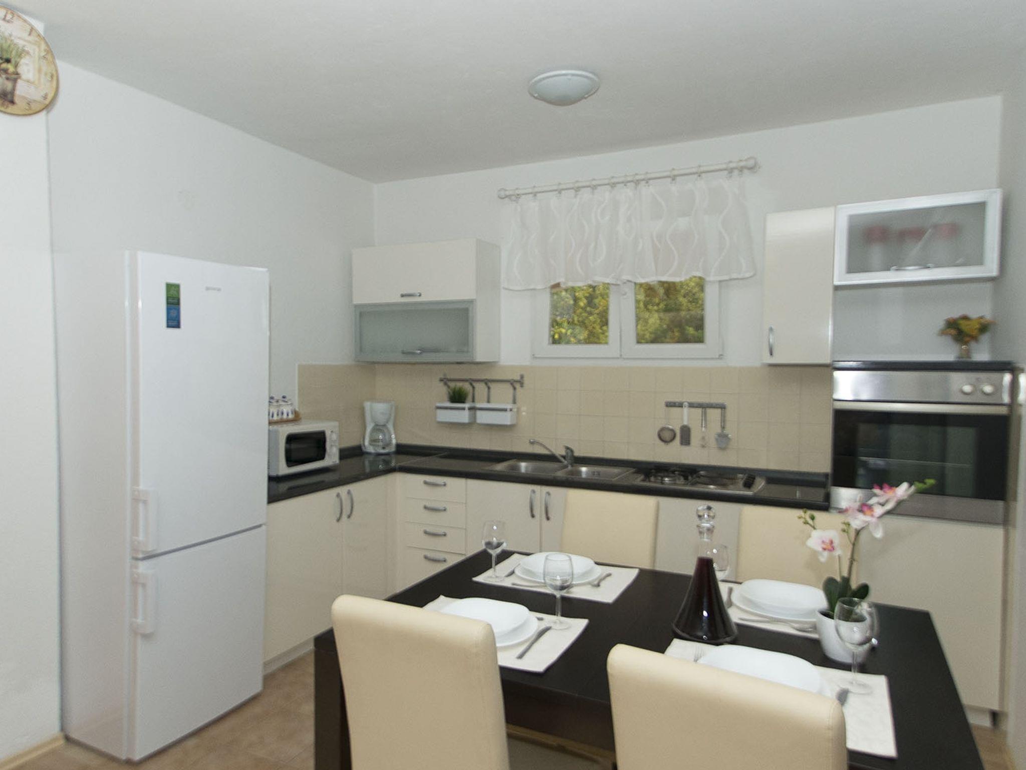 Ferienwohnung bietet Platz für 5 Gäste. Die Betten sind in Schlafzimmern, die es 2 gibt, und in Wohnzimmer, innerhalb einer Gesamtfläche von 60m2, angeordnet. Die Gäste haben eine eigene Terrasse zur Verfügung, auf der sie in warmen Sommernächten genießen können. Das Apartment bietet Meerblick. Für vollen Genuss und Entspannung gibt es einen privaten Grill für Gäste dieser Unterkunft. IM PREIS INBEGRIFFEN: Kurtaxe, Endreinigung, Klimatisierung, Garage, Internet, Bootsanlegeplatz, Föhn. Die Verfügbarkeit zusätzlicher Dienstleistungen in Ihrem reservierten Termin und die Preise derselben (falls nicht aufgeführt) müssen im Voraus überprüft werden. Zusätzliche Dienstleistungen die in der Zahlungsaufforderung nicht aufgeführt sind werden direkt beim Vermieter bezahlt, angenommen der Gast nutzt auch diese.