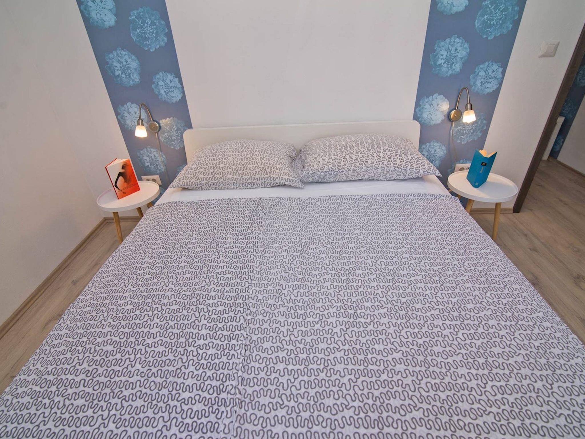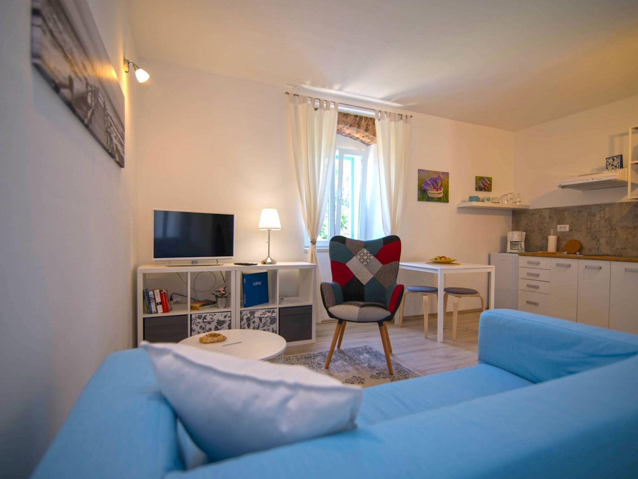 Ferienwohnung bietet Platz für 2 Gäste. Die Betten sind in Schlafzimmern, die es 1 gibt, innerhalb einer Gesamtfläche von 24m2, angeordnet. Die Gäste haben eine eigene Terrasse zur Verfügung, auf der sie in warmen Sommernächten genießen können. IM PREIS INBEGRIFFEN: Kurtaxe, Endreinigung, Klimatisierung, Internet. VERBINDLICHE ZUSÄTZLICHE KOSTEN: Aufzahlung für Kurzaufenthalte (prozentualer Zuschlag pro Nächtigungsanzahl: 30% - 1, 20% - 2, 10% - 3). Die Verfügbarkeit zusätzlicher Dienstleistungen in Ihrem reservierten Termin und die Preise derselben (falls nicht aufgeführt) müssen im Voraus überprüft werden. Zusätzliche Dienstleistungen die in der Zahlungsaufforderung nicht aufgeführt sind werden direkt beim Vermieter bezahlt, angenommen der Gast nutzt auch diese.