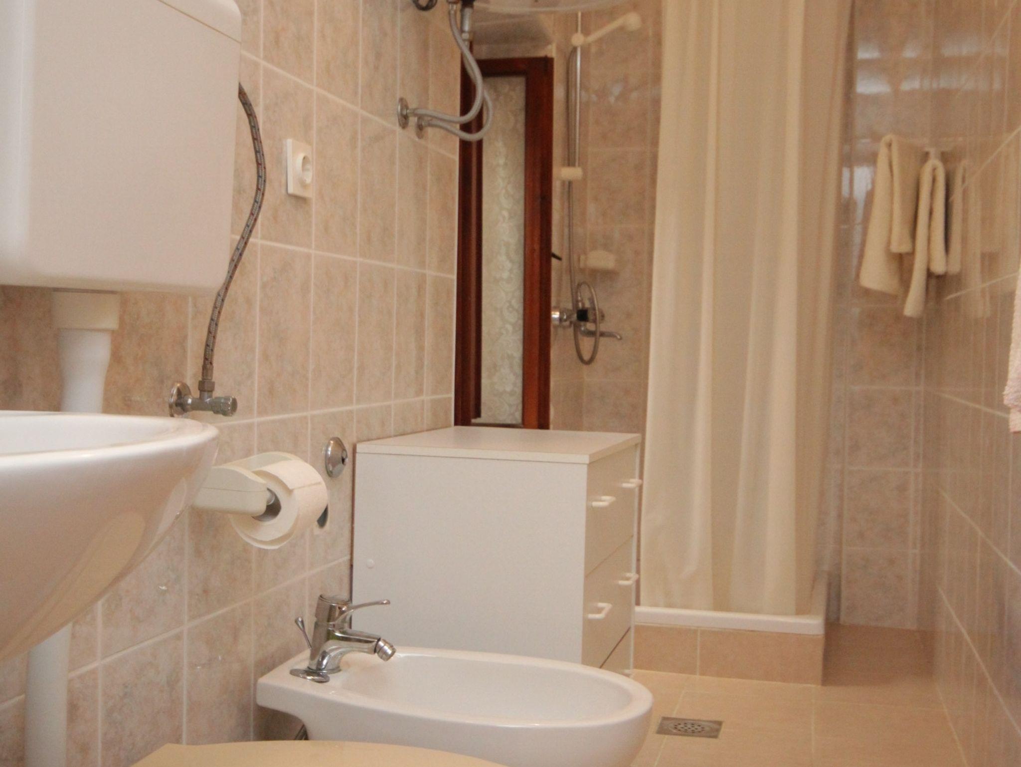 Ferienwohnung bietet Platz für 2 Gäste. Die Betten sind in Schlafzimmern, die es 1 gibt, innerhalb einer Gesamtfläche von 44m2, angeordnet. Die Gäste haben eine eigene Terrasse zur Verfügung, auf der sie in warmen Sommernächten genießen können. Das Apartment bietet Meerblick. Es ist erlaubt, Speisen auf dem Gemeinschafts-Grill vorzubereiten. IM PREIS INBEGRIFFEN: Kurtaxe, Endreinigung, Klimatisierung, Parkplatz, Internet, Bügeleisen, Bügelbrett, Föhn. VERBINDLICHE ZUSÄTZLICHE KOSTEN: Aufzahlung für Kurzaufenthalte (prozentualer Zuschlag pro Nächtigungsanzahl: 30% - 1, 20% - 2, 10% - 3). UNVERBINDLICHE ZUSÄTZLICHE KOSTEN: Wäschewaschen (5,00 € Waschen). Die Verfügbarkeit zusätzlicher Dienstleistungen in Ihrem reservierten Termin und die Preise derselben (falls nicht aufgeführt) müssen im Voraus überprüft werden. Zusätzliche Dienstleistungen die in der Zahlungsaufforderung nicht aufgeführt sind werden direkt beim Vermieter bezahlt, angenommen der Gast nutzt auch diese.