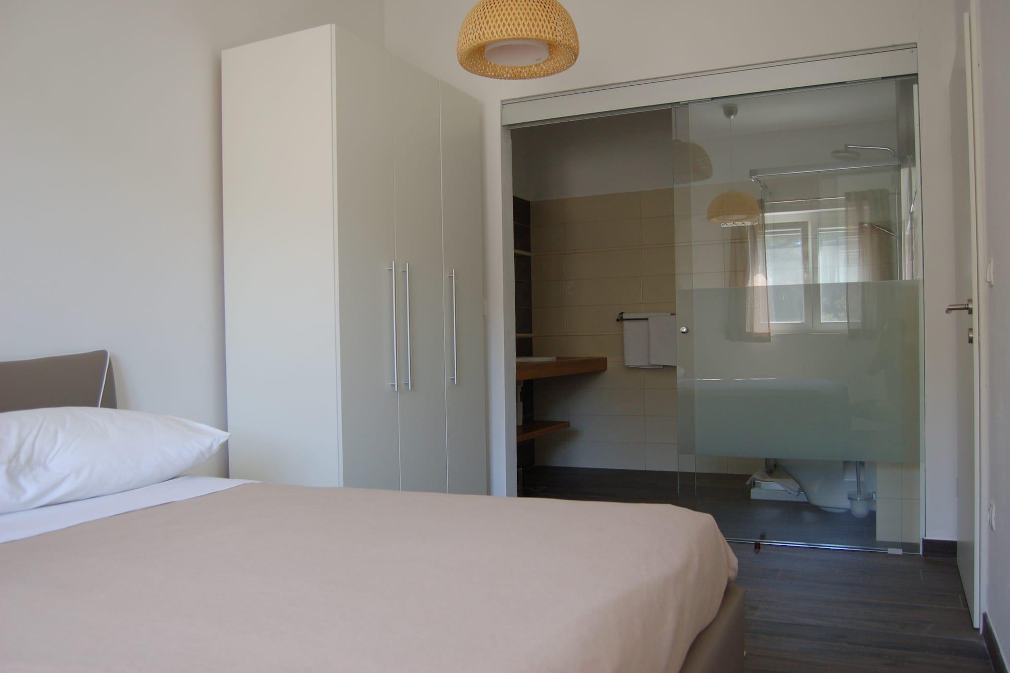 Denne komfortable indkvartering med overdækket terrasse og havudsigt er beliggende i den lille landsby Verunic / Veli Rat på øen Dugi otok (Long island). Din lejlighed tilbyder komplet komfort, euqipped køkken, rummelige soveværelser og badeværelser, aircondition, gratis wifi, liggestole, parasol og havemøbler. Din vært tilbyder lille grill restaurant med lokal mad og vin, marked, kajak, båd og cykeludlejning, udflugt til nationalparken Kornati, fiskesteder -tuna fiskeri og TAXI service Zadar Lufthavn - færgehavn Gazenica. Smukke sandstrande Sakarun ligger kun 1,5 km væk fra huset. Dugi otok er et paradis for cyklister, der tilbyder mange fantastiske stier - fyrtårn, Sakarun strandsti, Verunic trail. Verunic er et sted i Cuna Bay, som er forbundet med en smal kanal med Pantera bugten. Det er kendt for dets køkken, men også for den kulturelle og historiske arv. Dugi otok (Long Island) er en af de smukkeste øer ved Adriaterhavet. Telašcica Nature Park og Kornati National Par findes i slutningen af øen.