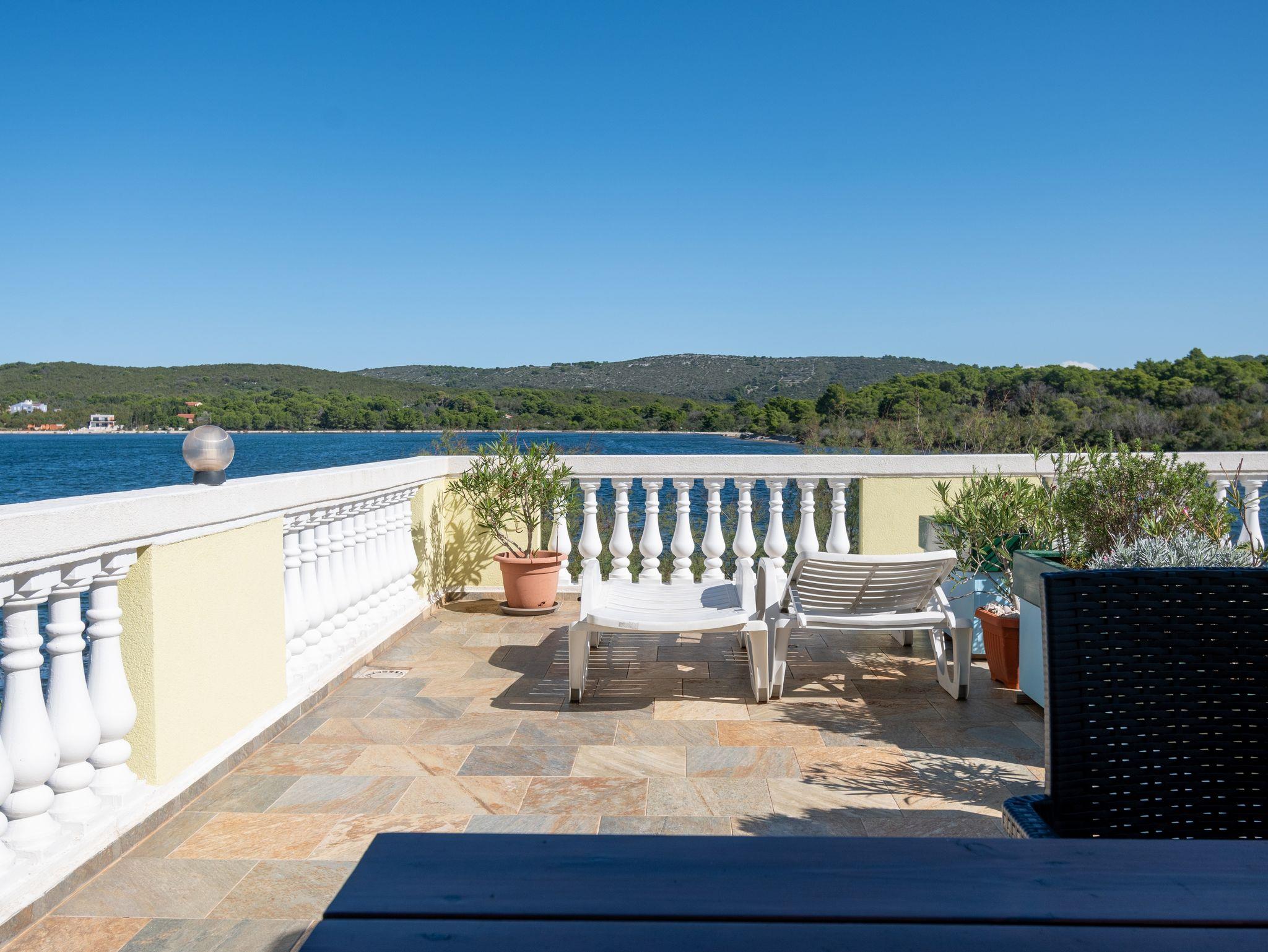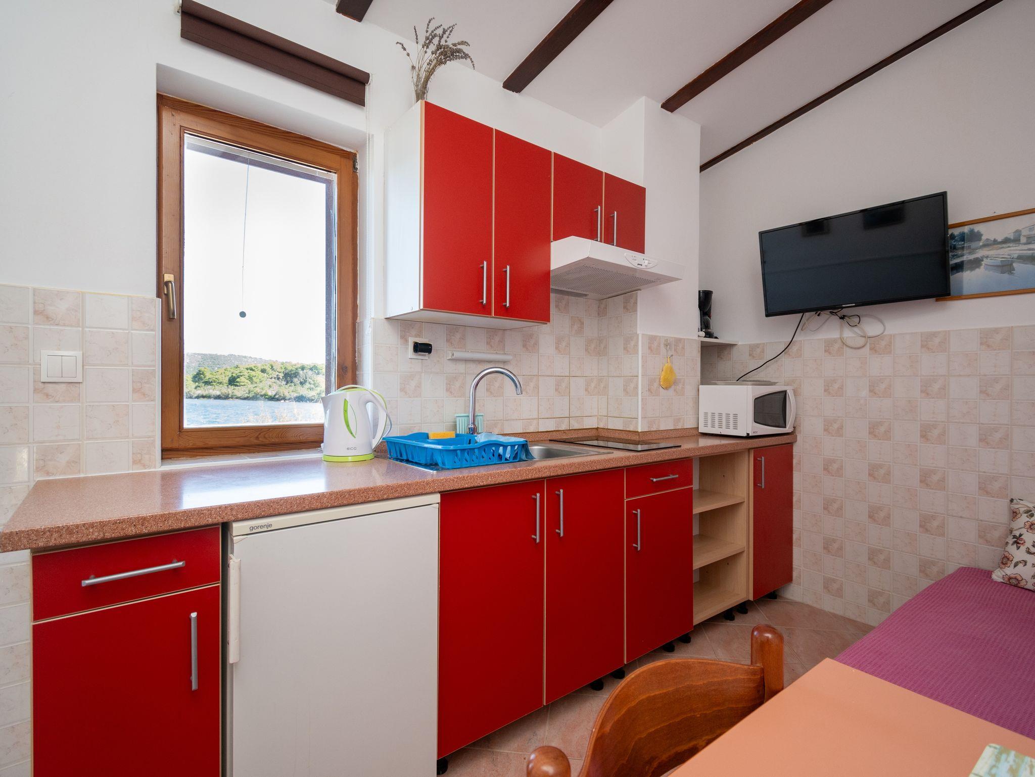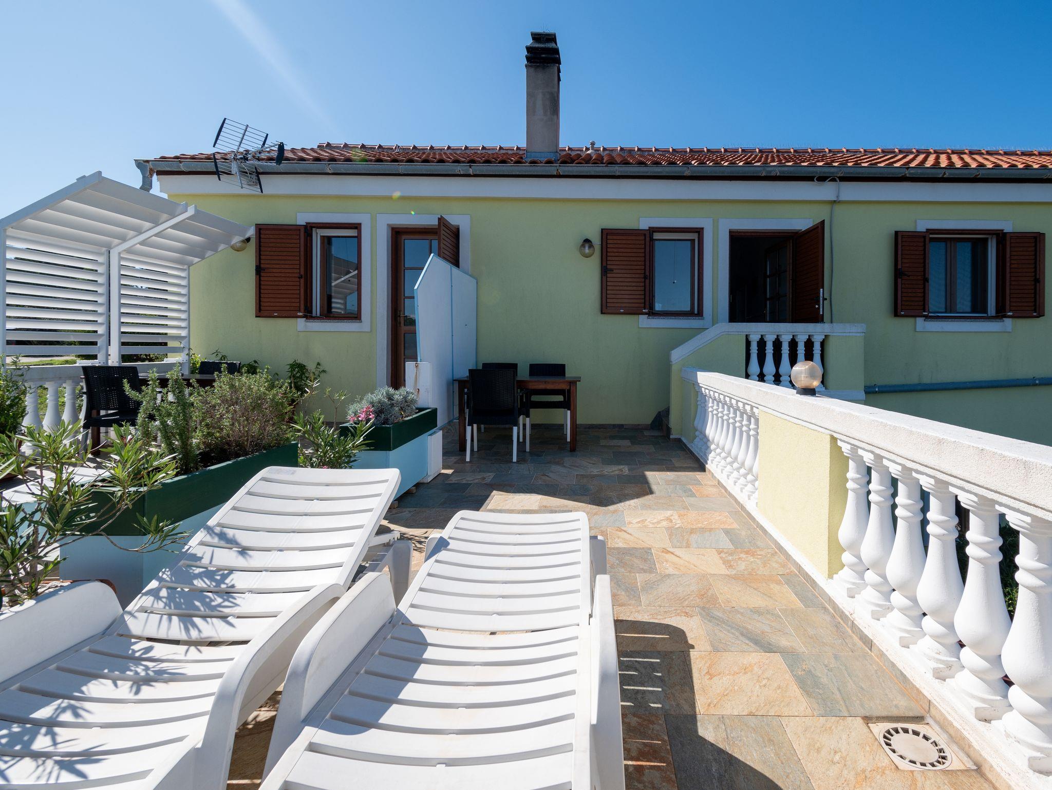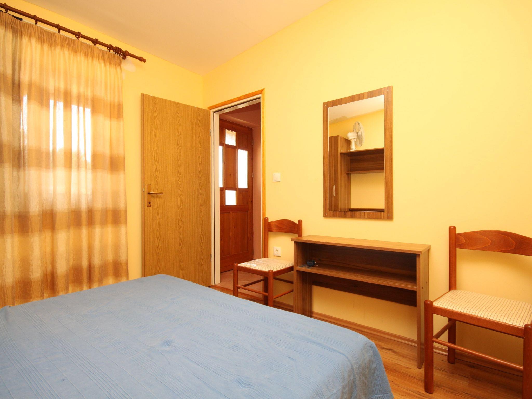 Ferienwohnung bietet Platz für 2 Gäste. Die Betten sind in Schlafzimmern, die es 1 gibt, innerhalb einer Gesamtfläche von 27m2, angeordnet. Die Gäste haben eine eigene Terrasse zur Verfügung, auf der sie in warmen Sommernächten genießen können. Das Apartment bietet Meerblick. Es ist erlaubt, Speisen auf dem Gemeinschafts-Grill vorzubereiten. In der Unterkunftseinheit besteht die Möglichkeit des Mitbringens von Haustieren gegen Aufpreis. IM PREIS INBEGRIFFEN: Kurtaxe, Endreinigung, Klimatisierung, Parkplatz, Internet, Bootsanlegeplatz, Bügeleisen, Föhn, Liegestühle. VERBINDLICHE ZUSÄTZLICHE KOSTEN: Aufzahlung für Kurzaufenthalte (prozentualer Zuschlag pro Nächtigungsanzahl: 30% - 1, 20% - 2, 10% - 3). UNVERBINDLICHE ZUSÄTZLICHE KOSTEN: Wäschewaschen (10,00 € Waschen), Haustiere (8,00 € pro Nacht), 2 Kinderbettchen (5,00 € Person/Tag). Die Verfügbarkeit zusätzlicher Dienstleistungen in Ihrem reservierten Termin und die Preise derselben (falls nicht aufgeführt) müssen im Voraus überprüft werden. Zusätzliche Dienstleistungen die in der Zahlungsaufforderung nicht aufgeführt sind werden direkt beim Vermieter bezahlt, angenommen der Gast nutzt auch diese.