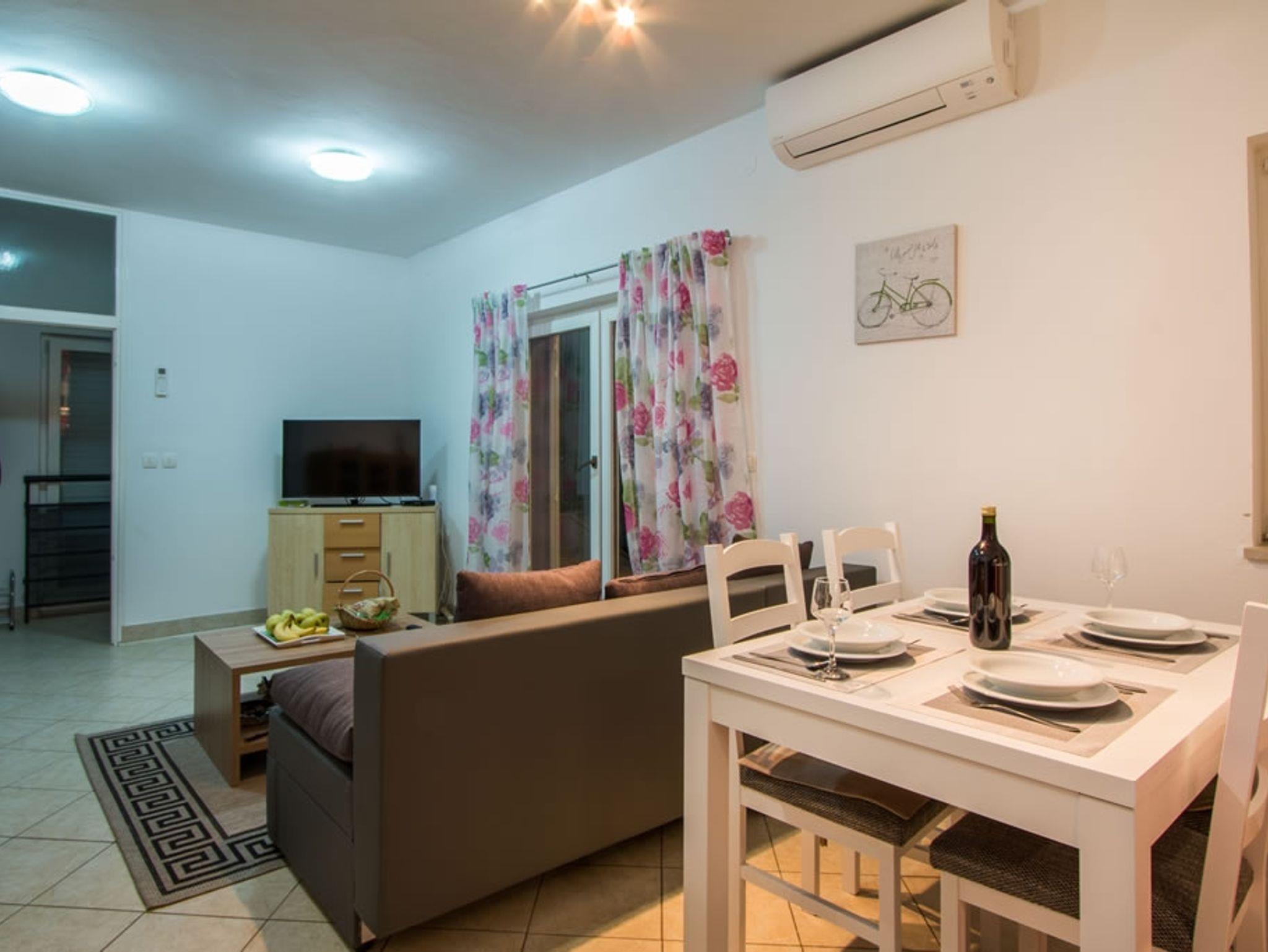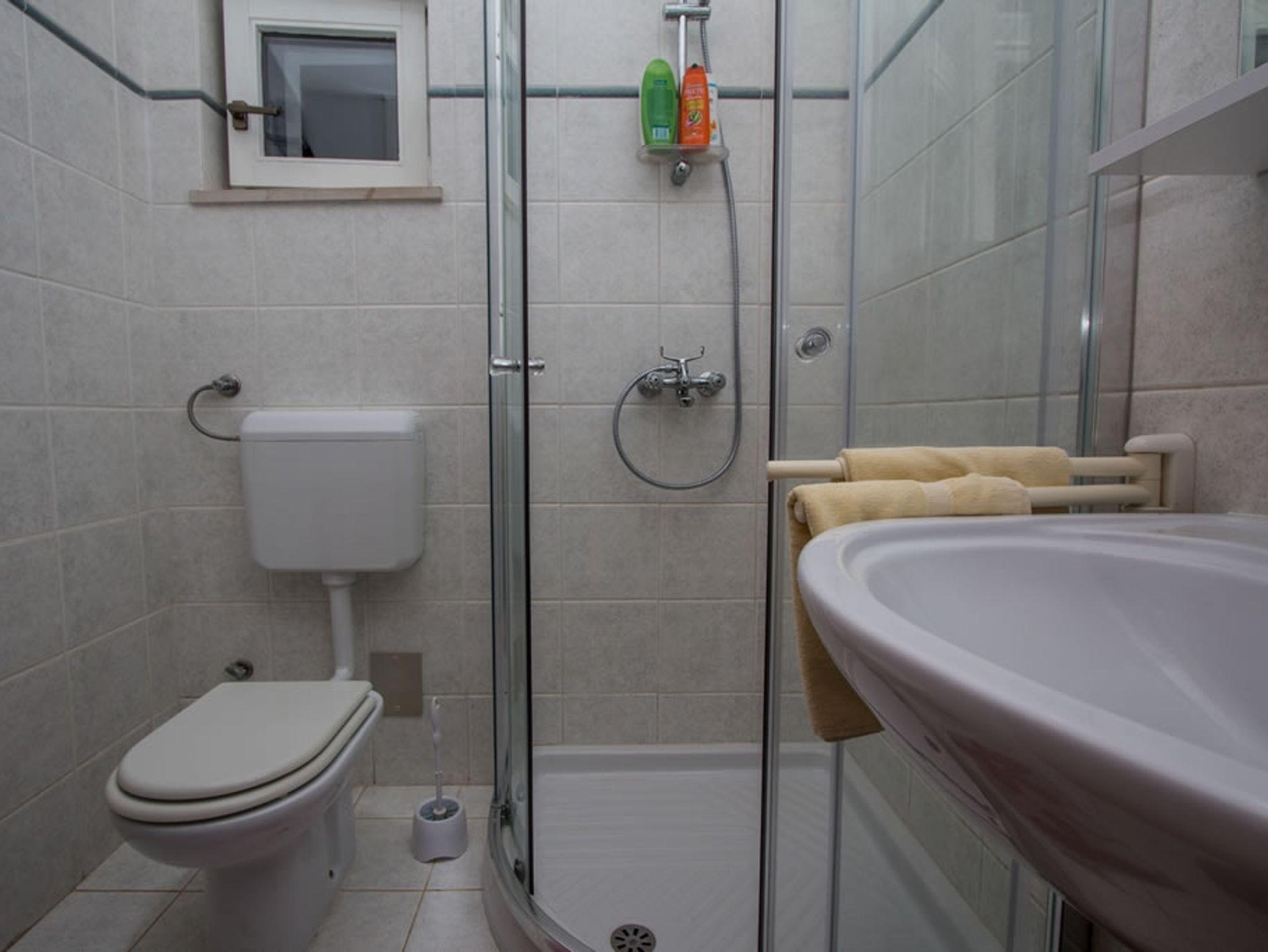 Ferienwohnung bietet Platz für 6 Gäste. Die Betten sind in Schlafzimmern, die es 2 gibt, und in Wohnzimmer, innerhalb einer Gesamtfläche von 43m2, angeordnet. Die Gäste haben eine eigene Terrasse zur Verfügung, auf der sie in warmen Sommernächten genießen können. Das Apartment bietet Meerblick. Es ist erlaubt, Speisen auf dem Gemeinschafts-Grill vorzubereiten. Während ihres Aufenthalts können Gäste das gemeinsam zur Nutzung stehende Schwimmbad benutzen. In der gebuchten Unterkunftseinheit zahlt man am Ort ein Depositum ( der Preis ist an der Internetseite angeführt ). IM PREIS INBEGRIFFEN: Kurtaxe, Endreinigung, Klimatisierung, Pool, Parkplatz, Internet, Bootsanlegeplatz, Kinderbett, Föhn. VERBINDLICHE ZUSÄTZLICHE KOSTEN: Kaution (200,00 € Einmalzahlung), Aufzahlung für Kurzaufenthalte (prozentualer Zuschlag pro Nächtigungsanzahl: 30% - 1, 20% - 2, 10% - 3). UNVERBINDLICHE ZUSÄTZLICHE KOSTEN: Wäschewaschen (5,00 € Waschen). Die Verfügbarkeit zusätzlicher Dienstleistungen in Ihrem reservierten Termin und die Preise derselben (falls nicht aufgeführt) müssen im Voraus überprüft werden. Zusätzliche Dienstleistungen die in der Zahlungsaufforderung nicht aufgeführt sind werden direkt beim Vermieter bezahlt, angenommen der Gast nutzt auch diese.