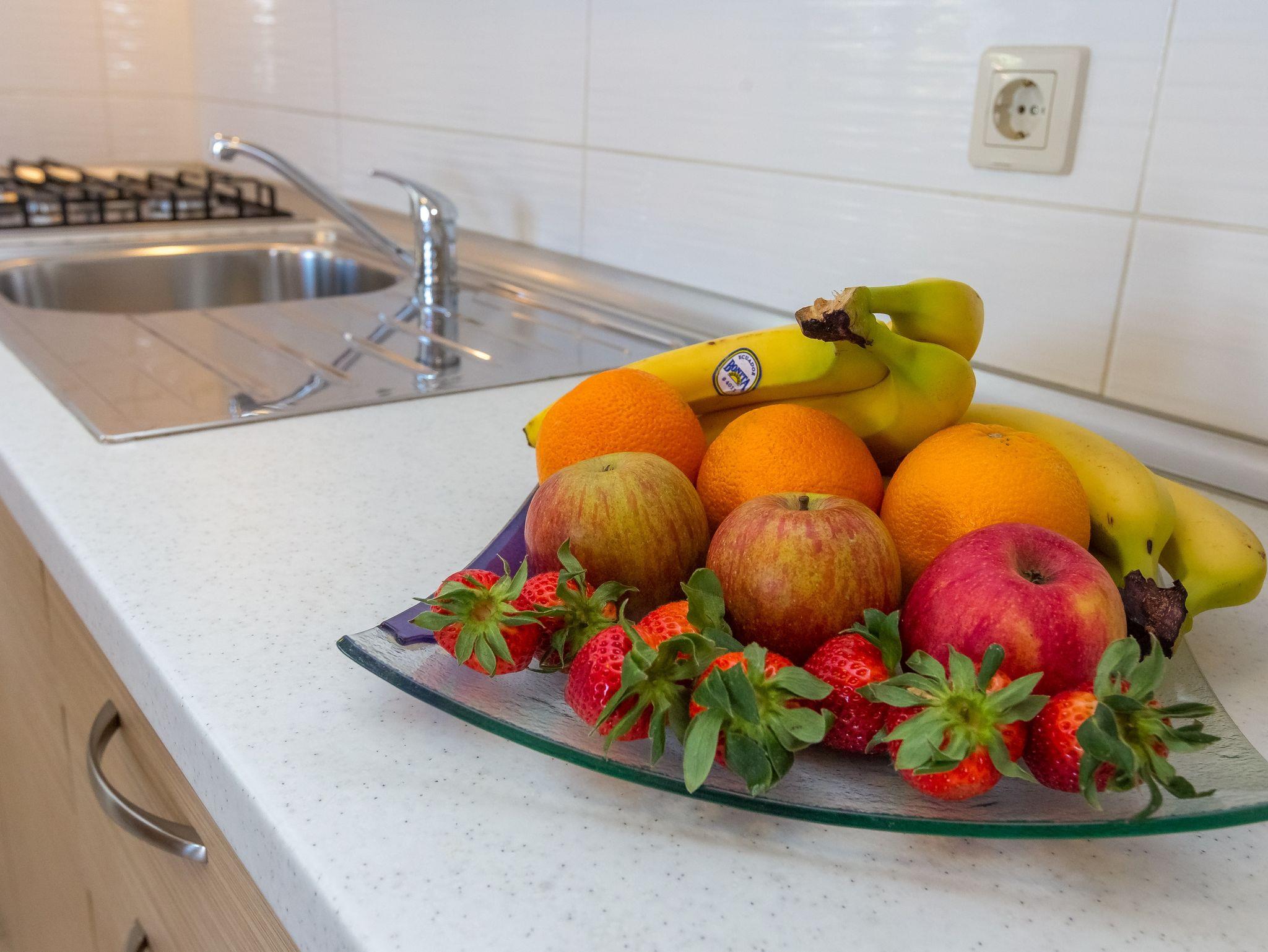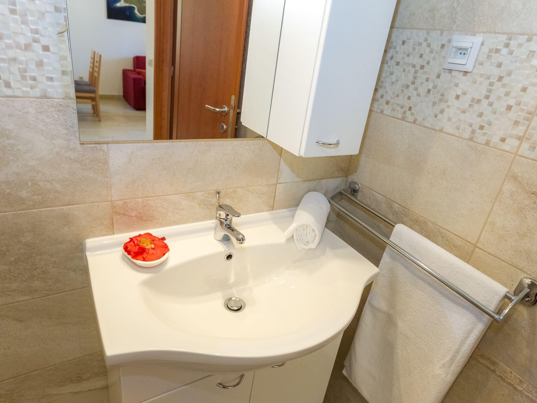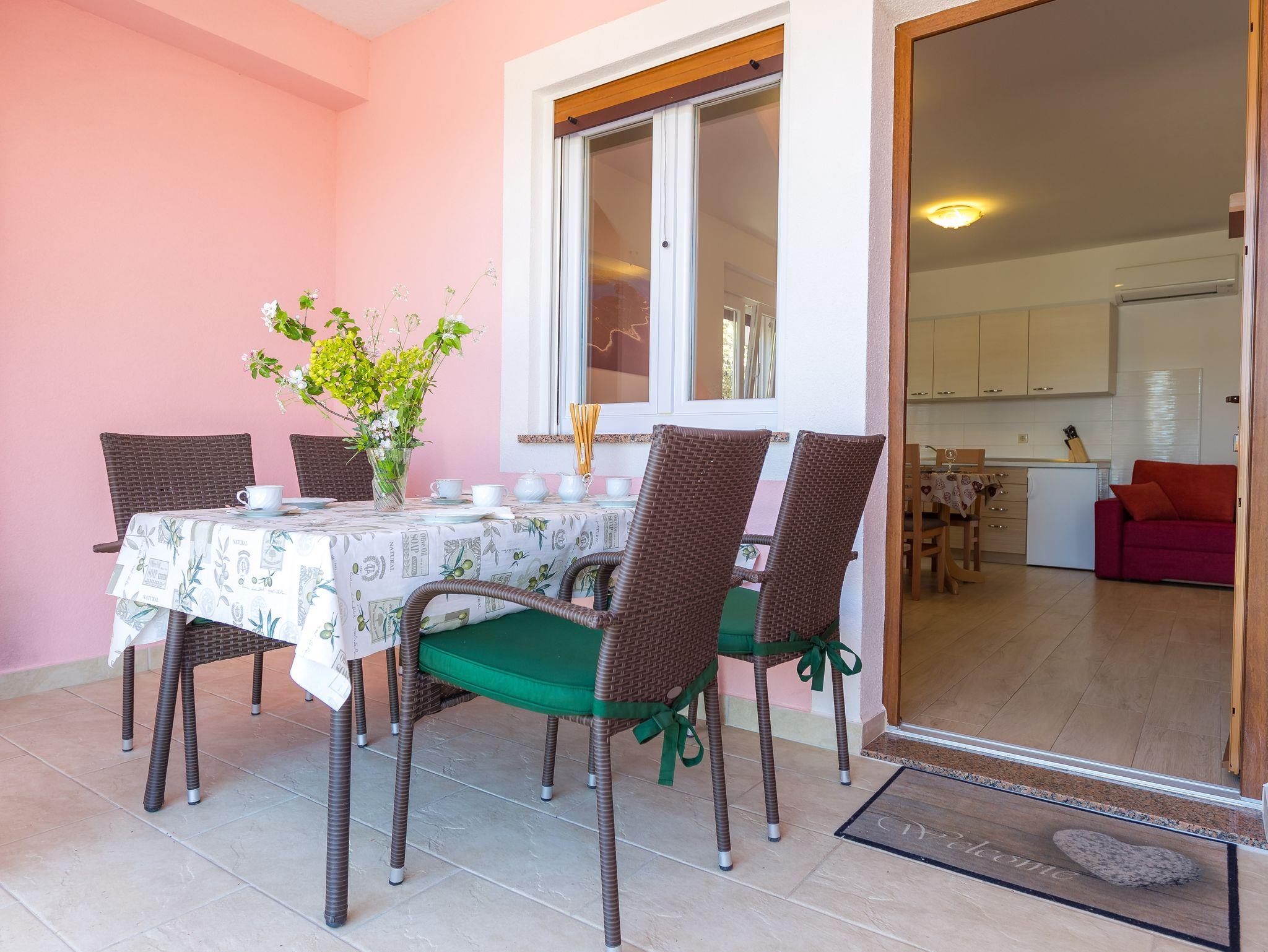 Ferienwohnung bietet Platz für 5 Gäste. Die Betten sind in Schlafzimmern, die es 1 gibt, und in Esszimmer, innerhalb einer Gesamtfläche von 40m2, angeordnet. Die Gäste haben eine eigene Terrasse zur Verfügung, auf der sie in warmen Sommernächten genießen können. Das Apartment bietet Meerblick. Es ist erlaubt, Speisen auf dem Gemeinschafts-Grill vorzubereiten. IM PREIS INBEGRIFFEN: Kurtaxe, Endreinigung, Klimatisierung, Parkplatz, Internet, Wäschewaschen, Bootsanlegeplatz. Die Verfügbarkeit zusätzlicher Dienstleistungen in Ihrem reservierten Termin und die Preise derselben (falls nicht aufgeführt) müssen im Voraus überprüft werden. Zusätzliche Dienstleistungen die in der Zahlungsaufforderung nicht aufgeführt sind werden direkt beim Vermieter bezahlt, angenommen der Gast nutzt auch diese.