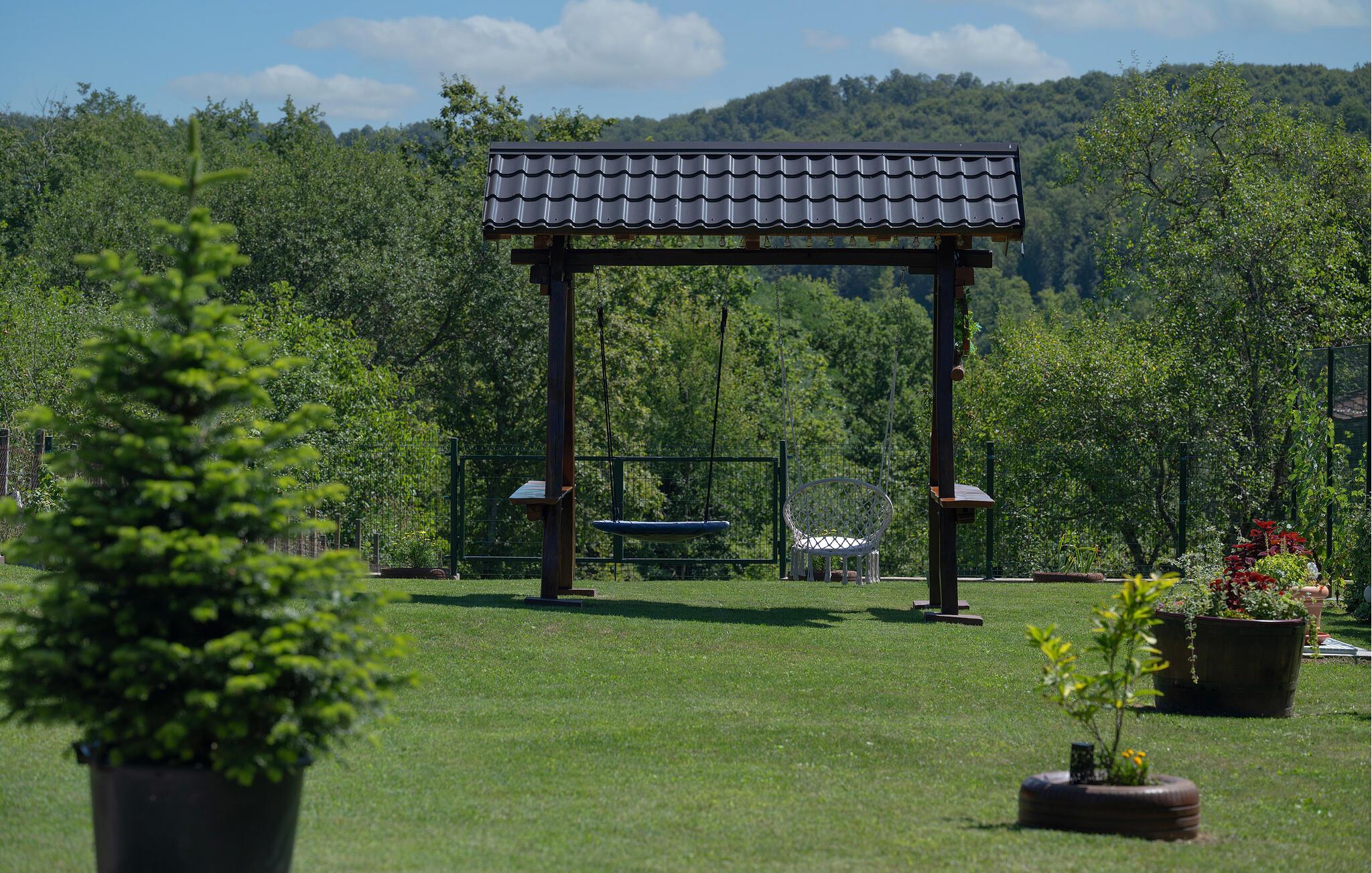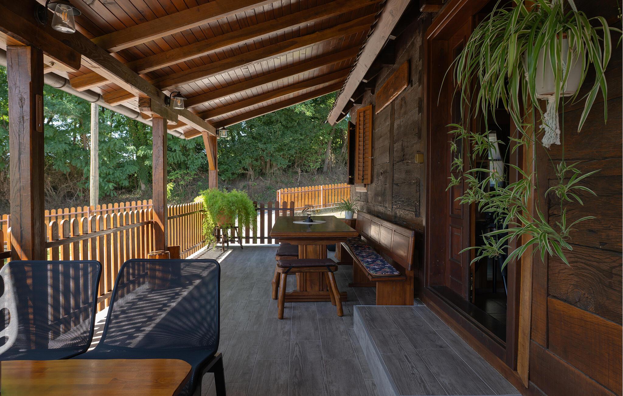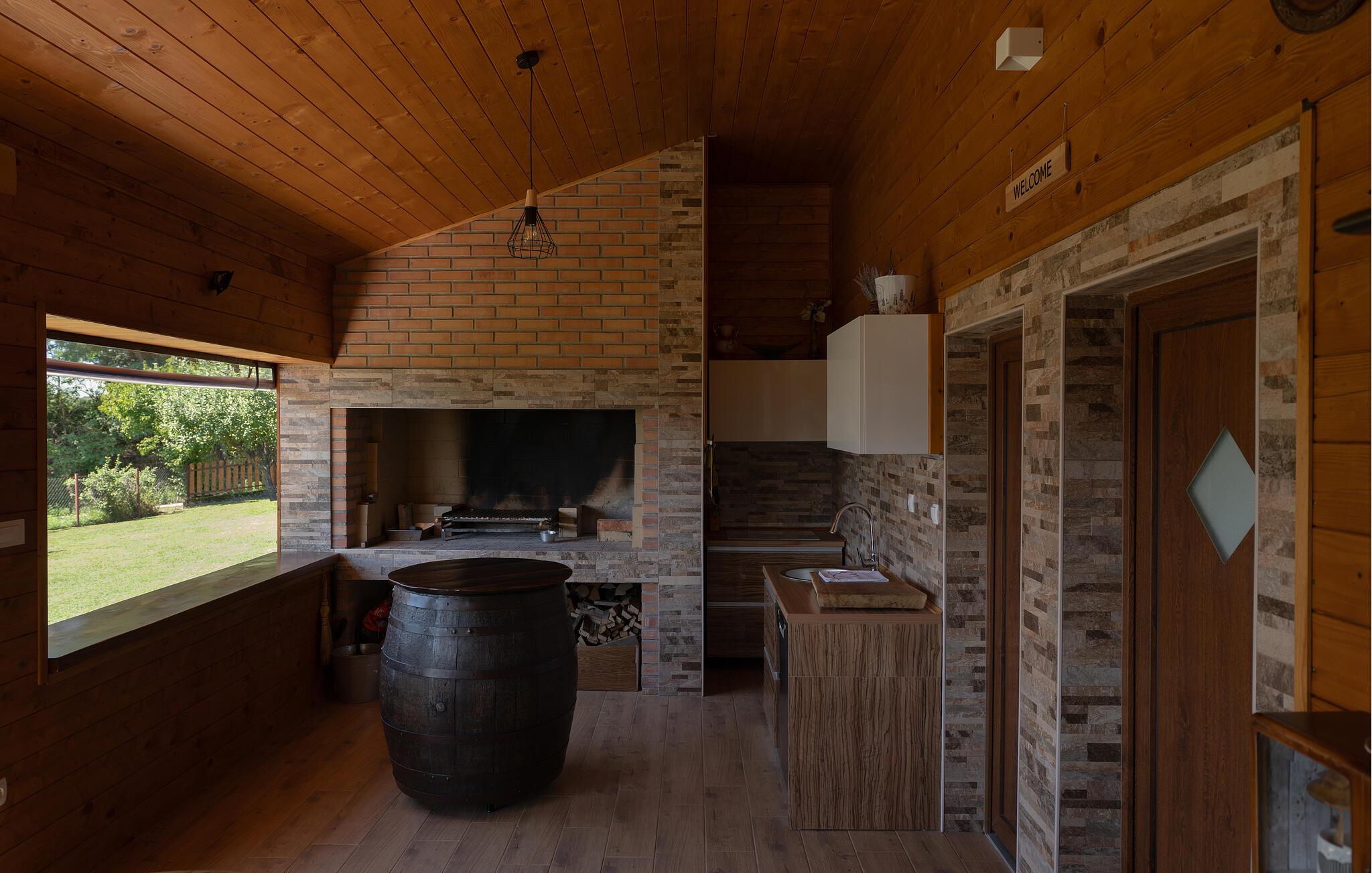 Det rummelige udendørsområde imponerer med sin rustikke charme og fredfyldte atmosfære. Slap af i det boblende spabad, mens I nyder udsigten over den omkringliggende natur, eller lad børnene lege frit på den velholdte græsplæne. Fælles grillaftener i den overdækkede spiseplads bliver uden tvivl et højdepunkt under jeres ophold.