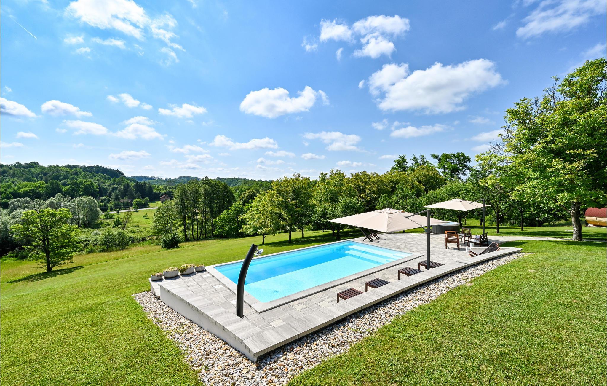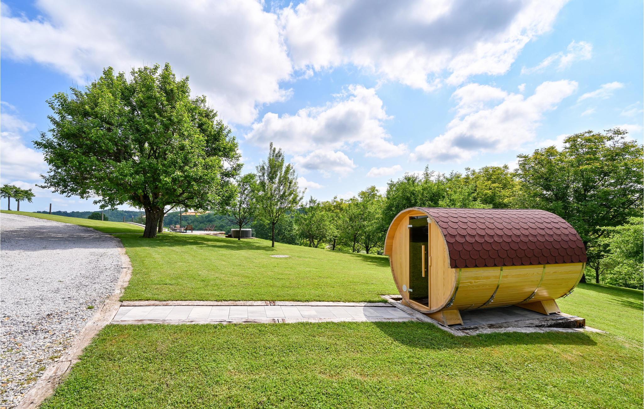 Hold en rigtig dejlig ferie i skønne landlige omgivelser i dette skønne feriehus der ligger på en lille bakke, for hvis fødder der risler en lille bæk. Foran huset er der en overdækket terrasse hvor der står en grill, stegespid og et sommerkøkken så feriemaden kan tilberedes udendørs med udsigt til børnene der leger i haven hvor der er en lille legeplads. Der er hyggelige skrå vægge med en loftshøjde på 100 cm i siden. De sidste 160 m af vejen op til huset er ikke asfalteret. Besøg det berømte udflugtsmål Kljucic Brdo, hvor der er forskellige former for fritidsaktiviteter.