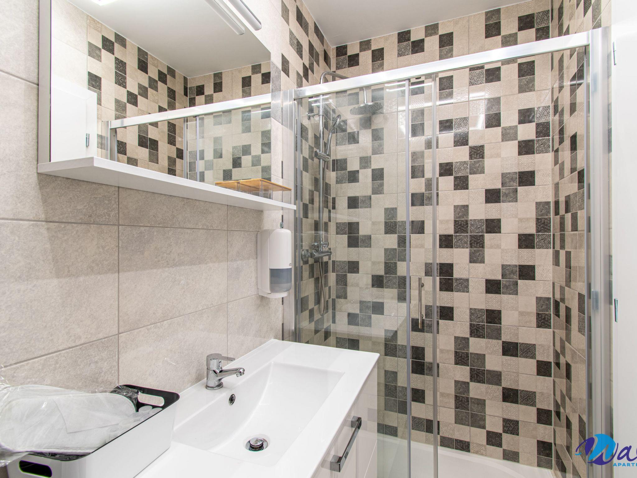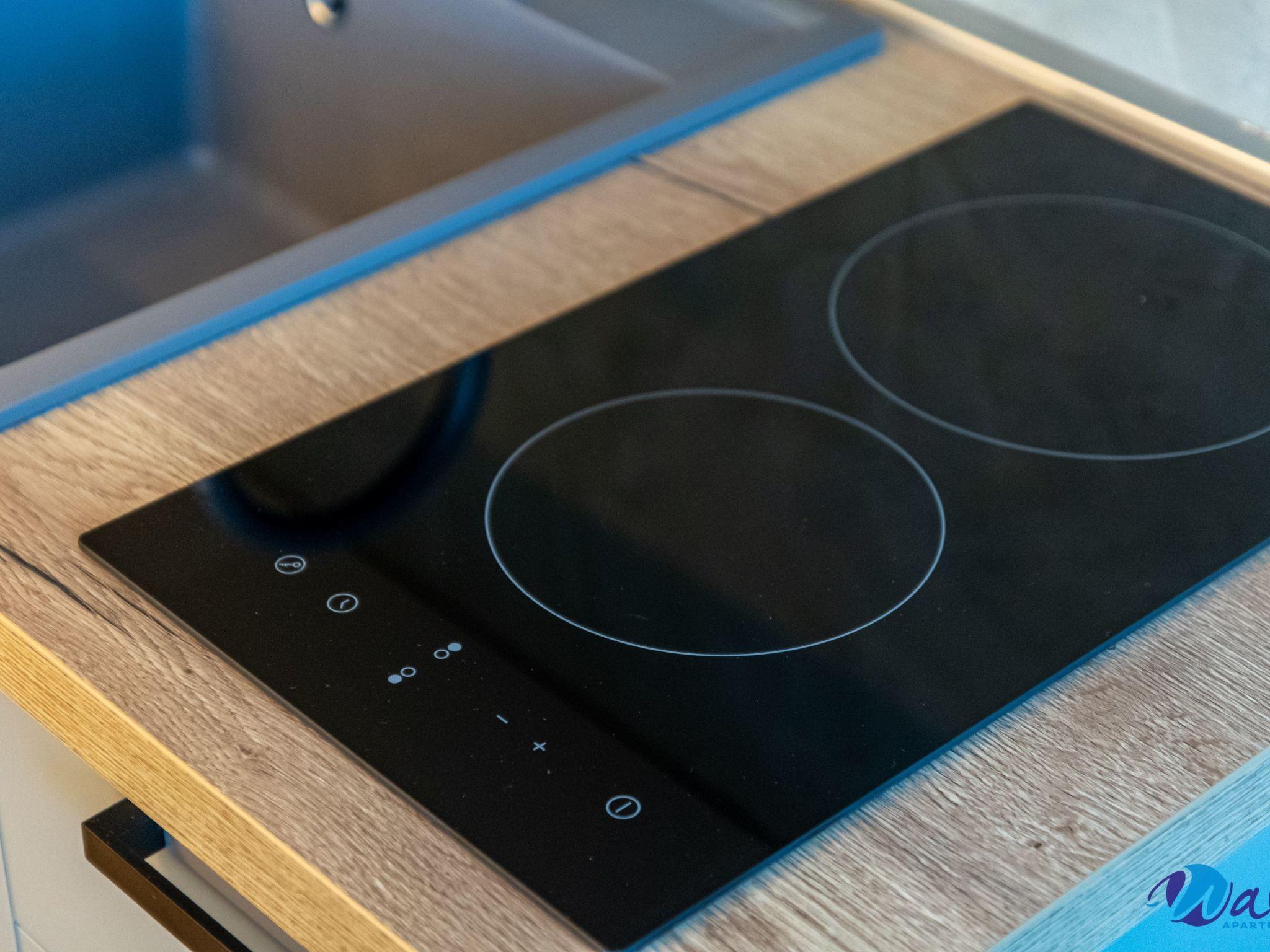 Inside, this cozy apartment is equipped with air conditioning throughout, ensuring your comfort no matter the weather outside. The kitchenette is a practical space equipped with a 2-plate stove and electric kettle, catering to your basic cooking needs. With a dedicated bathroom featuring a shower, the apartment combines functionality with simplicity to meet all your needs during your stay.