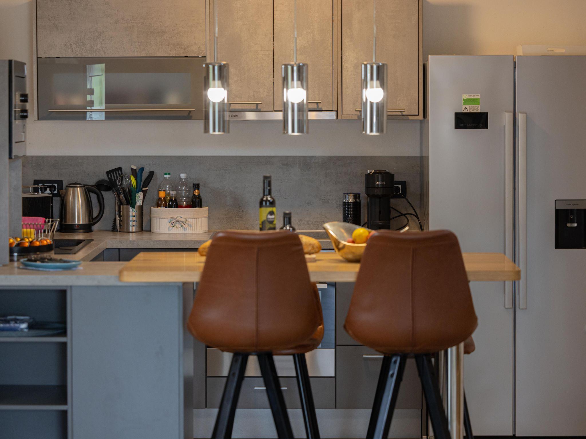 The interior of the house is fully air-conditioned and optimally equipped for your stay. A smart TV is available for your entertainment, and the innovative equipment such as a washing machine for your sole use, an induction cooker and both a filter coffee machine and a capsule coffee machine promise a comfortable holiday. The level-access showers, one of which is designed as a rain shower, round off the well thought-out interior design. The fireplace ensures cosy hours, while underfloor heating provides pleasant warmth in parts of the house.