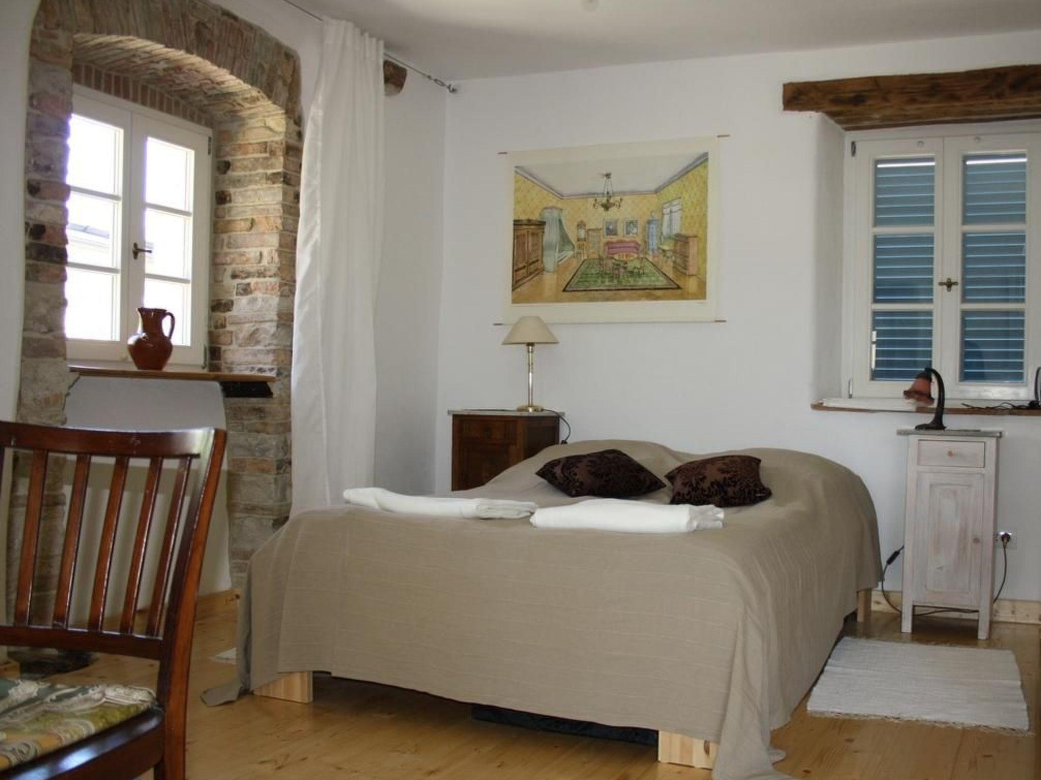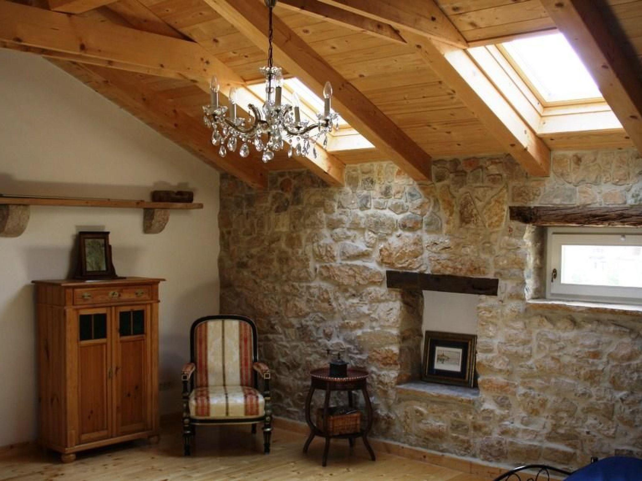 There are four bedrooms of different sizes, each with a double bed (1.80m x 2.00m or 1.60m x 2.00m) as well as two extra beds and two sofa beds. The rooms are very individually designed with a lot of ambience and even have a balcony or loggia on the first floor. There is a large bathroom on the first floor (shower, bath, WC) and a shower/WC on the top floor (with a fantastic view over the countryside). Bed linen and towels are provided by the landlord. Please bring your own bath towels. If required, a travelling cot and folding mattresses for small children can also be provided. On the ground floor is the spacious 70 m² living and dining area (brick floor, original stone walls, lots of wood) as well as the kitchen and an artistically designed WC. The central fireplace provides a cosy atmosphere, e.g. on cooler days. As the hosts themselves like to spend their holidays in the house, they have paid particular attention to a cosy and familiar interior. That's why almost everything has been thought of, both in the kitchen and in everyday life. You can literally feel "at home" here.