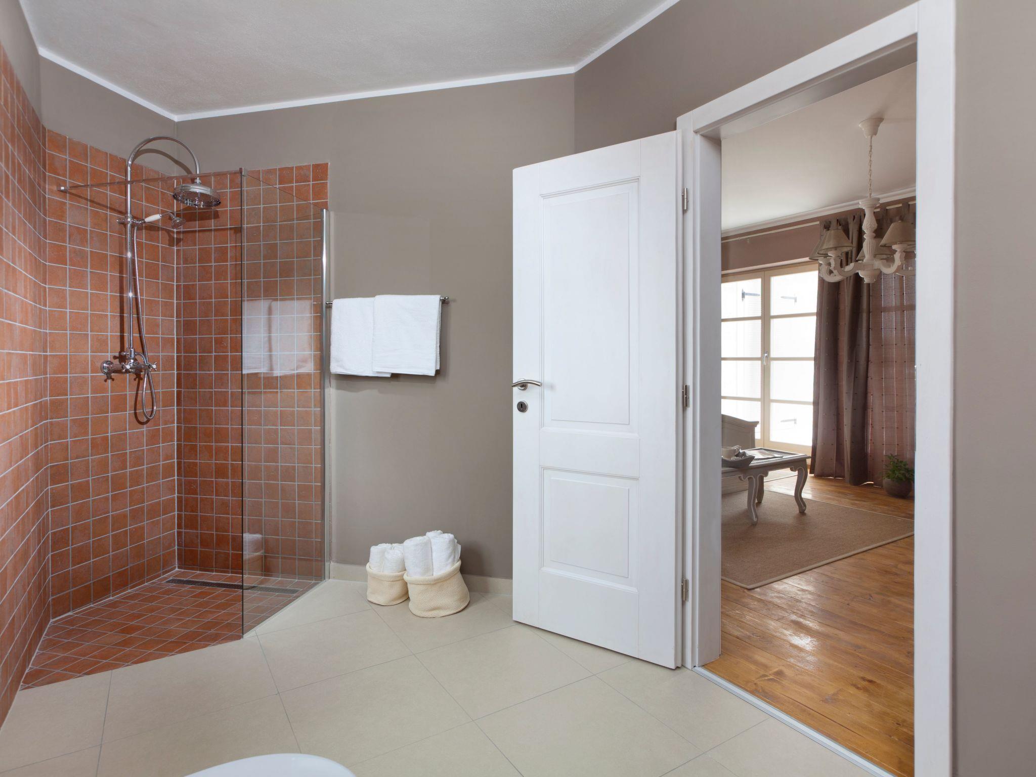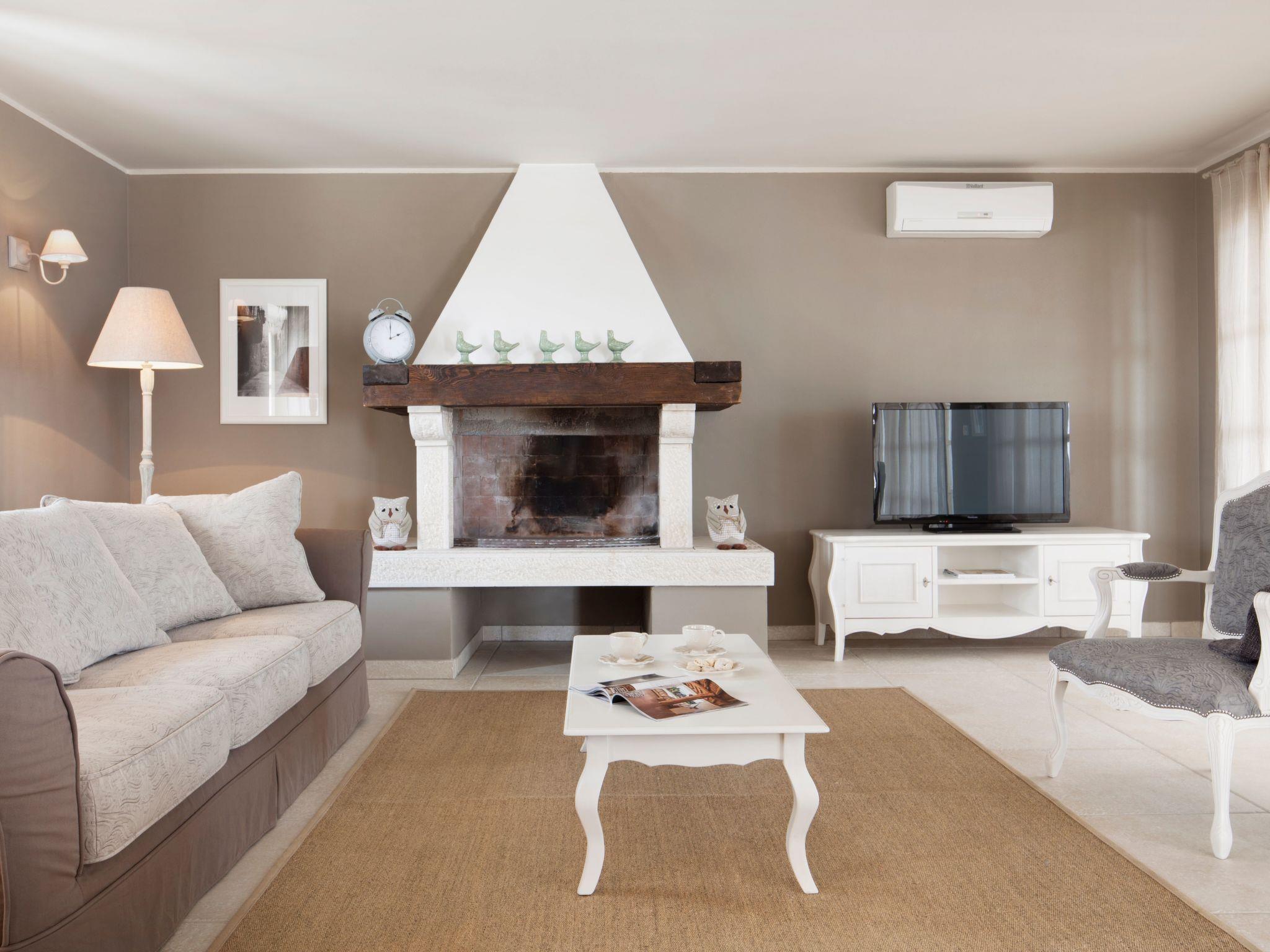 The fully air-conditioned villa Sara with central heating and a living space of 400m2 features 4 airy and comfortable bedrooms equipped with double beds, 3 lovely bathrooms and one separate toilet. The spacious living room is directly connected to the stone terrace overlooking the beautiful nearby vineyards. The kitchen is modern and fully equipped with a comfortable dining area for all the guests.