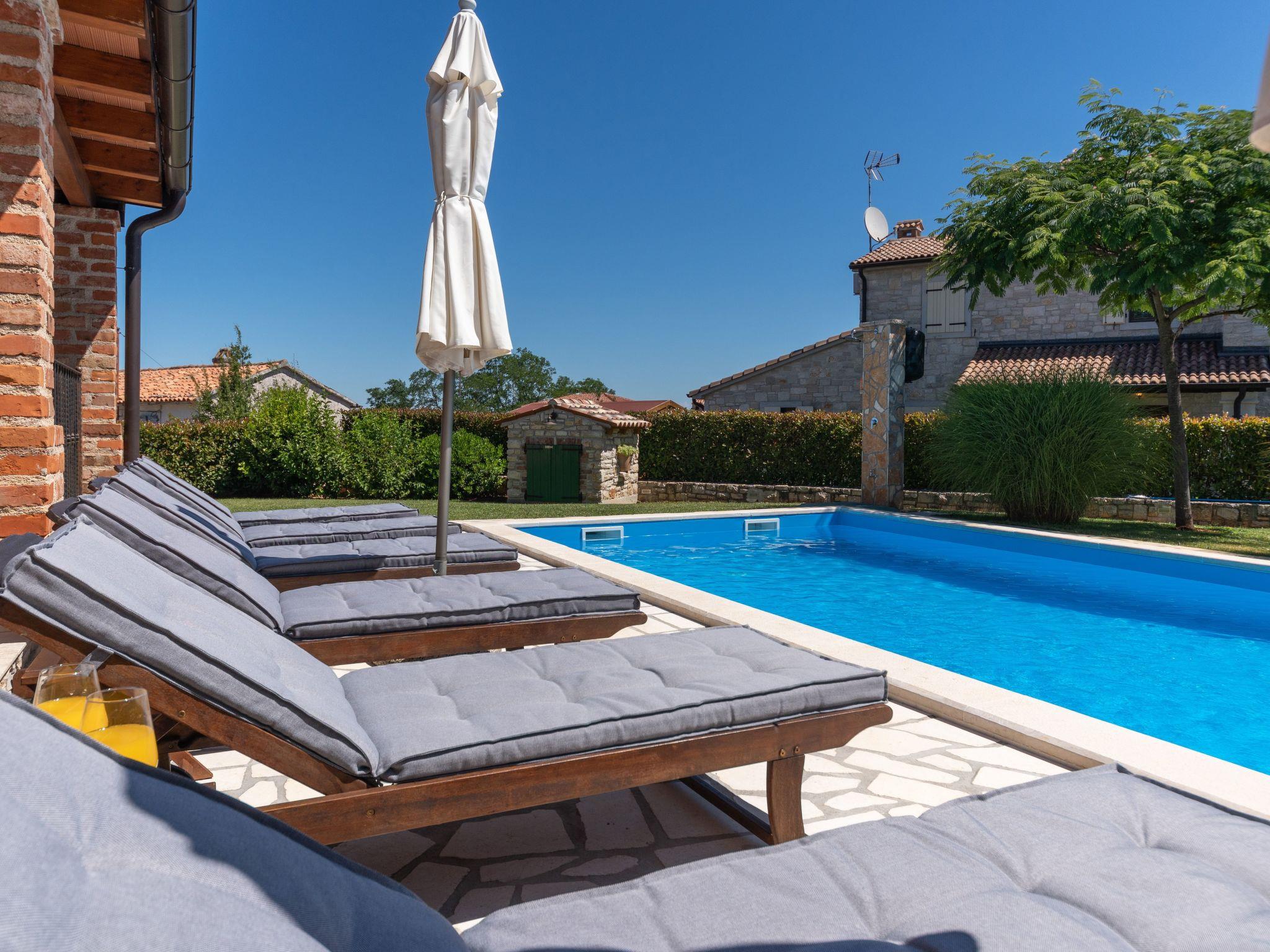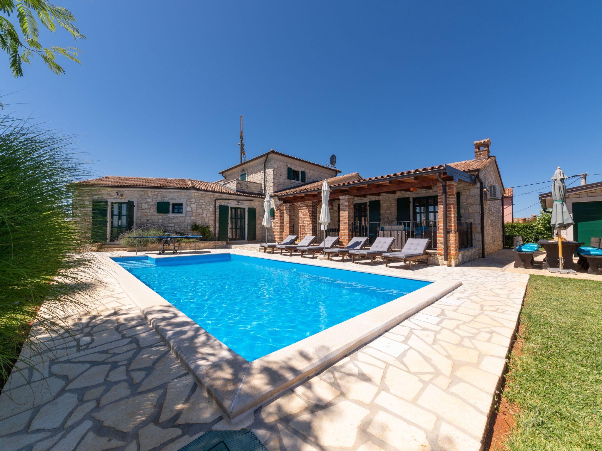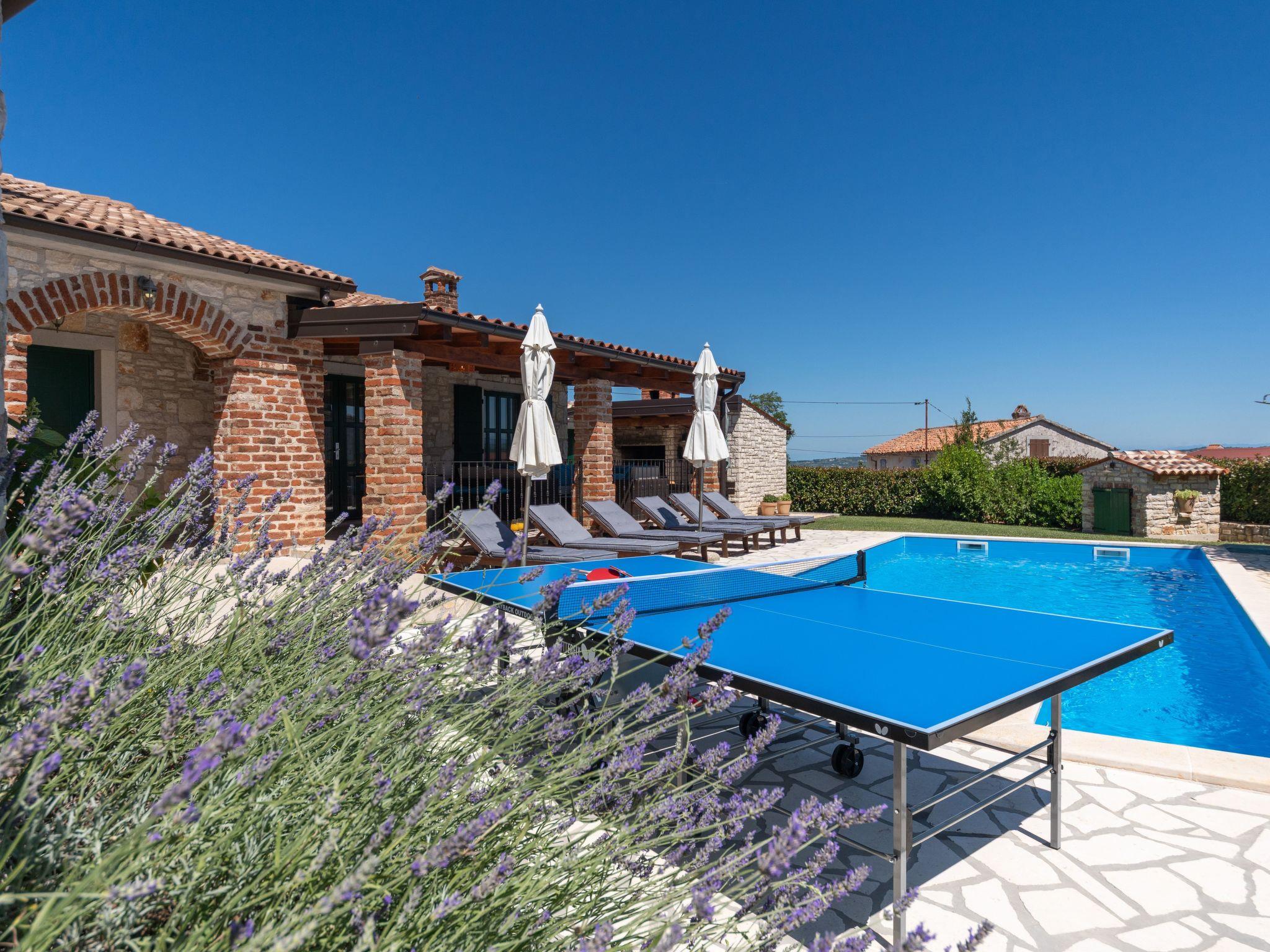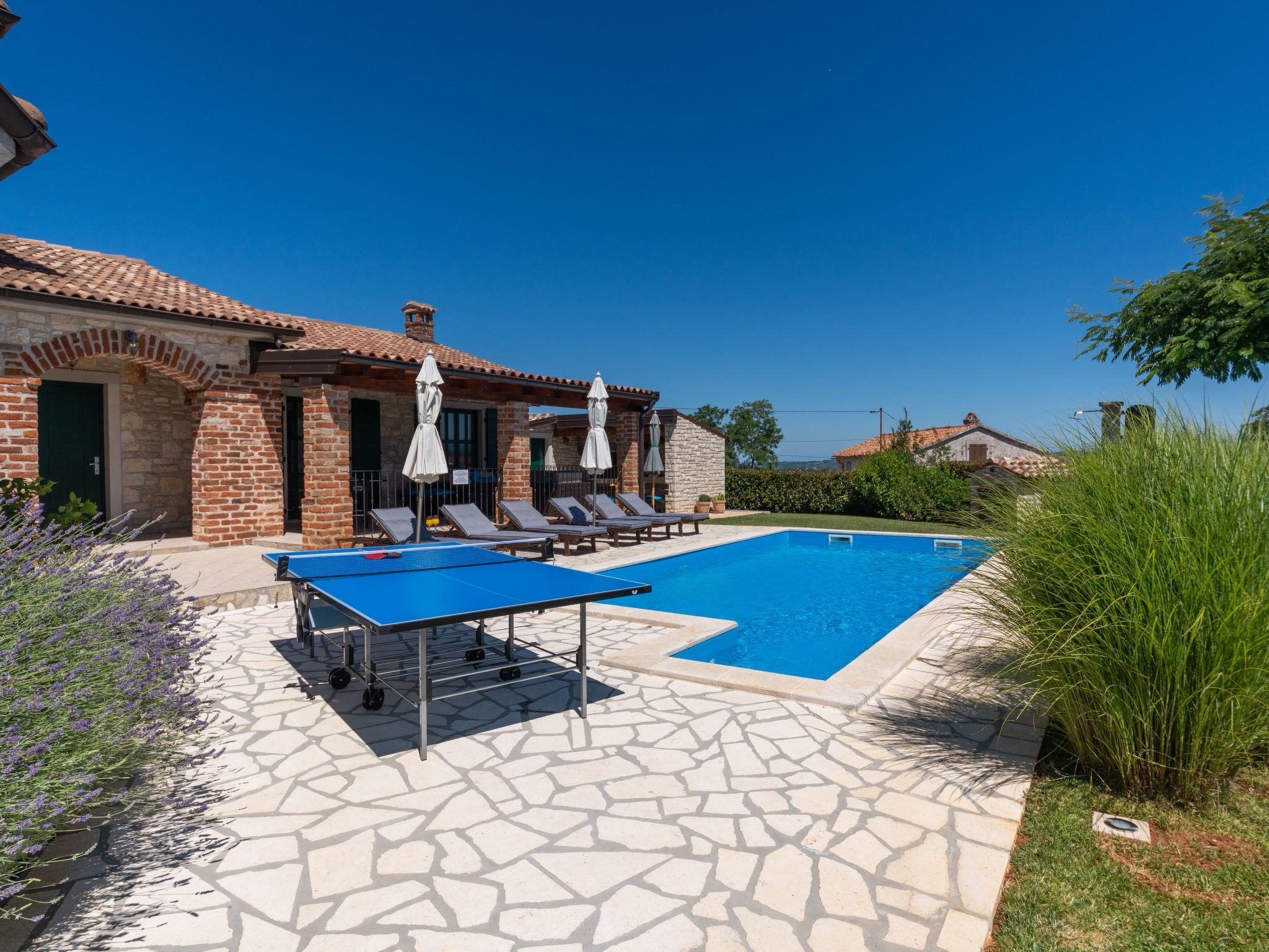 The house was built with great attention to detail in the style of an Istrian country house. On an enclosed and well-kept plot of 1200 square metres, guests have access to a 34 m² pool with sun loungers, a barbecue with dining table, a children's playground, table tennis and 3 covered parking spaces. The nearest shop, coffee bar and cash machine are in the village of Vižinada, 4 km away, while a pizzeria and a typical tavern are just 3 km from the house. The tourist town of Lanterna with its beautiful beaches is only 15 km from the villa. For cycling enthusiasts, the Parenzana cycling/hiking trail is also nearby.