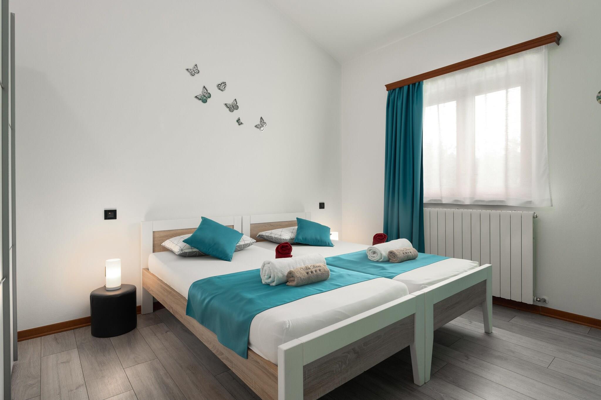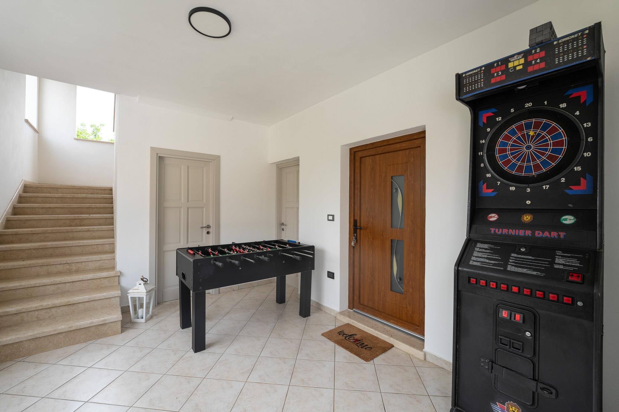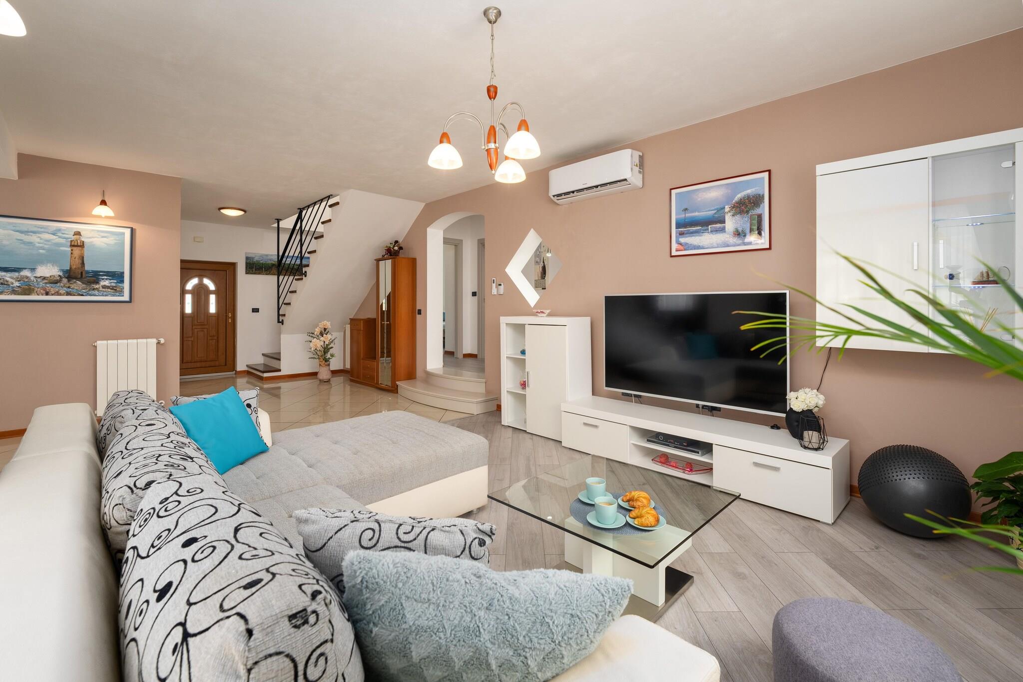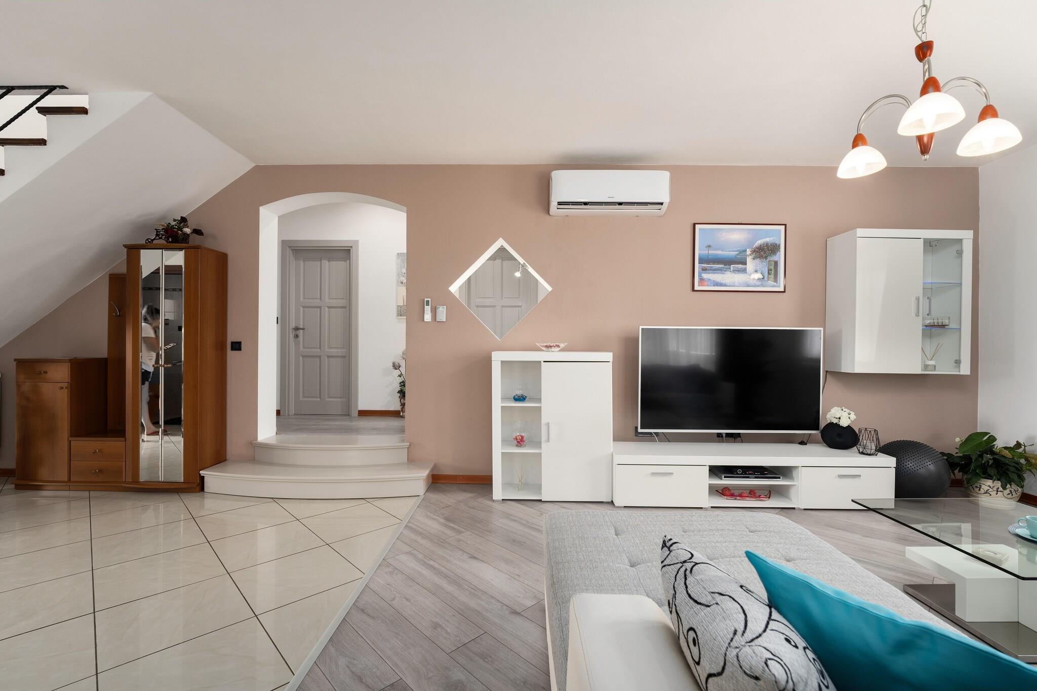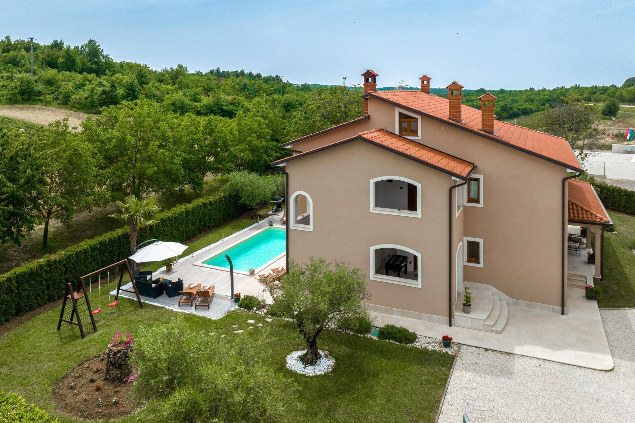 Flygt til denne smukke villa til ti gæster, der tilbyder en perfekt blanding af komfort og elegance i Vižinada. Beliggende kun 500 meter fra byens centrum og 15 km fra havet, tilbyder dette hjem gratis WiFi, en privat swimmingpool og en indhegnet gårdhave, der sikrer afslapning og privatliv. Uanset om du nyder udendørskøkkenet, slapper af i saunaen eller udforsker nærliggende attraktioner, lover denne villa et uforglemmeligt ophold. Indenfor finder du i stueetagen en hyggelig stue med en dobbelt sovesofa, satellit-tv og aircondition, et fuldt udstyret køkken med elkedel, brødrister, kaffemaskine, ovn, mikrobølgeovn, opvaskemaskine og køleskab med fryser samt to soveværelser, et med to enkeltsenge og et andet med en dobbeltseng. Første sal indeholder endnu en stue, et andet køkken, to ekstra soveværelser og to badeværelser, mens loftet tilbyder yderligere to soveværelser og en balkon. Gæsterne kan også nyde et boblebad, et loungesæt og legeredskaber, hvilket gør det ideelt for familier og grupper. I nærheden tilbyder Rossi Winery udsøgte lokale vine, mens Baredine Cave fremviser fantastiske underjordiske formationer. Udforsk Visnjan Observatorium, et fascinerende sted for astronomielskere. Til spisning serverer Konoba Jadruhi lækker middelhavsmad, mens Agroturizam Fatoric tilbyder specialiteter fra gård til bord. Uanset om du udforsker historie eller nyder lokale smagsoplevelser, er denne villa det perfekte tilflugtssted.