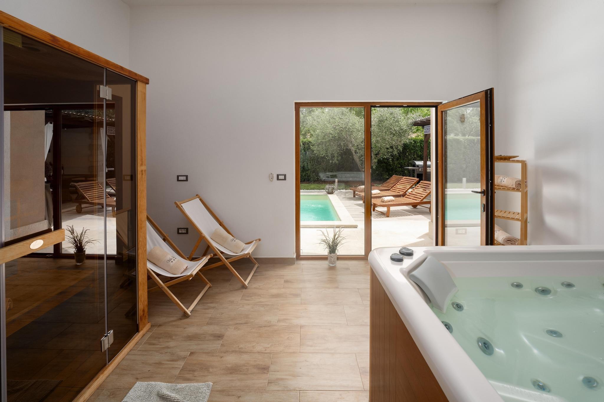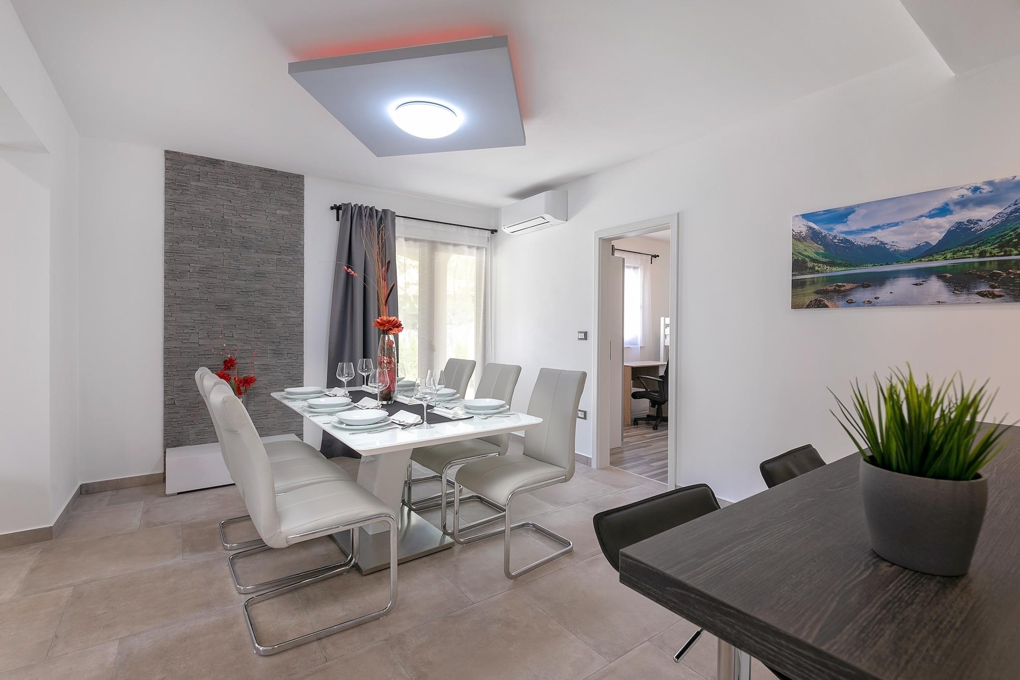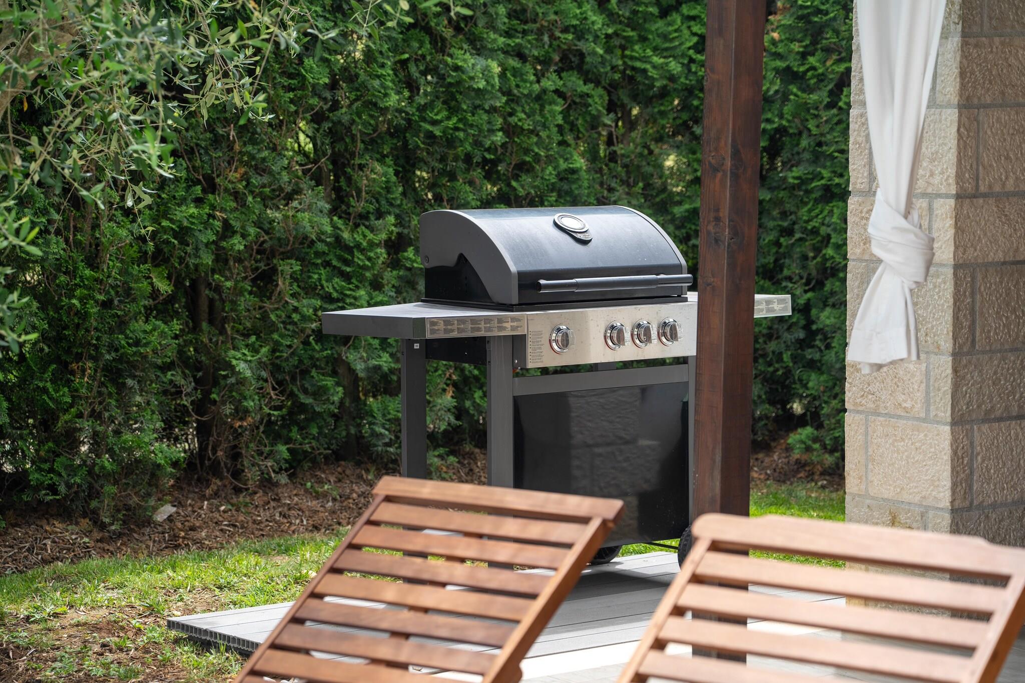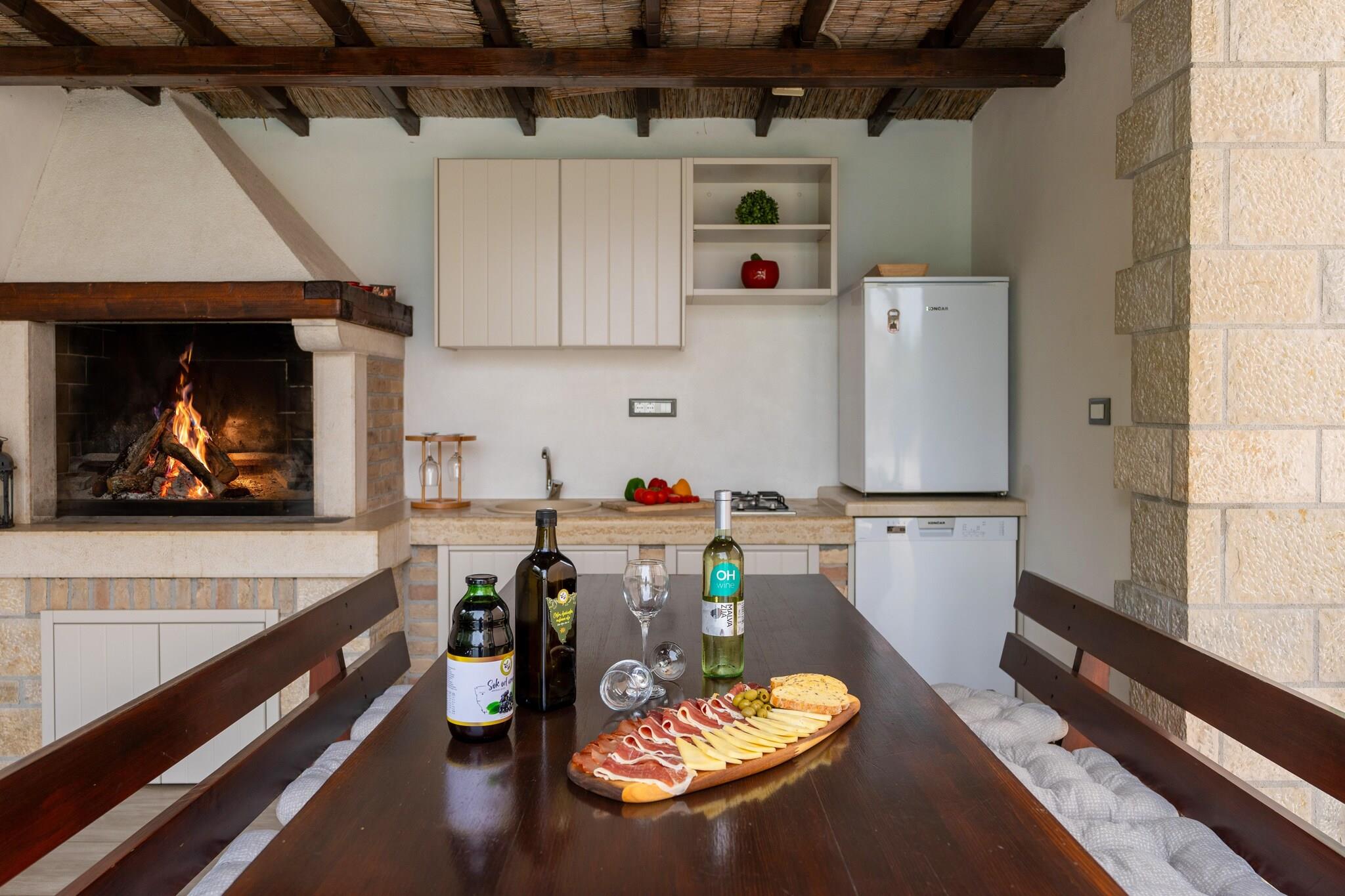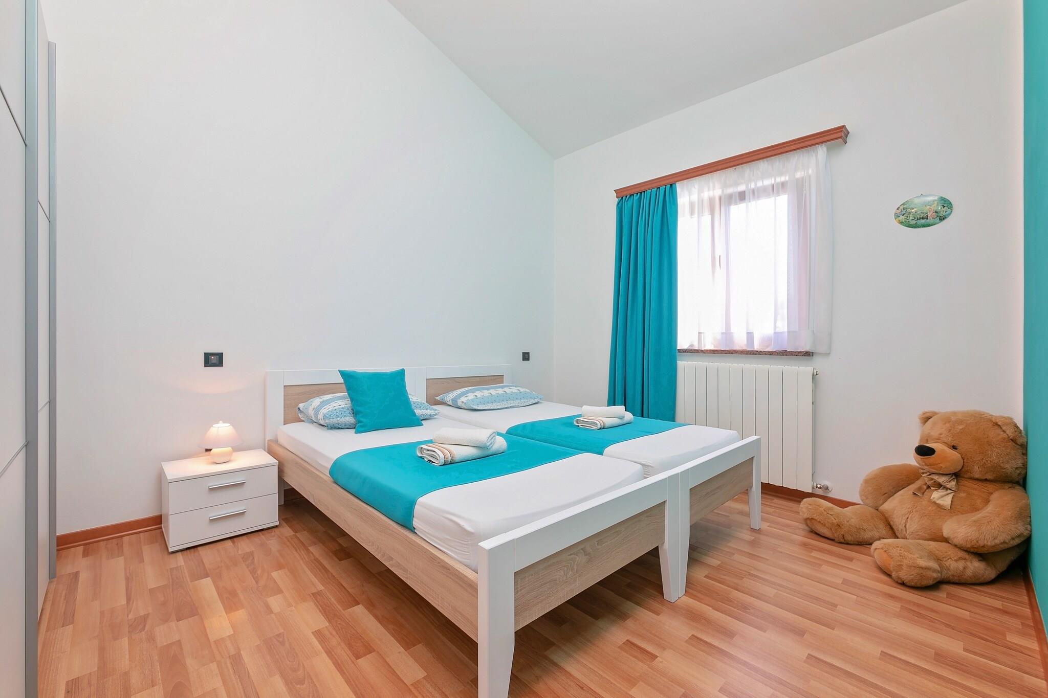 Flygt til denne smukke villa til ti gæster, der tilbyder en perfekt blanding af komfort og elegance i Vižinada. Beliggende kun 500 meter fra byens centrum og 15 km fra havet, tilbyder dette hjem gratis WiFi, en privat swimmingpool og en indhegnet gårdhave, der sikrer afslapning og privatliv. Uanset om du nyder udendørskøkkenet, slapper af i saunaen eller udforsker nærliggende attraktioner, lover denne villa et uforglemmeligt ophold. Indenfor finder du i stueetagen en hyggelig stue med en dobbelt sovesofa, satellit-tv og aircondition, et fuldt udstyret køkken med elkedel, brødrister, kaffemaskine, ovn, mikrobølgeovn, opvaskemaskine og køleskab med fryser samt to soveværelser, et med to enkeltsenge og et andet med en dobbeltseng. Første sal indeholder endnu en stue, et andet køkken, to ekstra soveværelser og to badeværelser, mens loftet tilbyder yderligere to soveværelser og en balkon. Gæsterne kan også nyde et boblebad, et loungesæt og legeredskaber, hvilket gør det ideelt for familier og grupper. I nærheden tilbyder Rossi Winery udsøgte lokale vine, mens Baredine Cave fremviser fantastiske underjordiske formationer. Udforsk Visnjan Observatorium, et fascinerende sted for astronomielskere. Til spisning serverer Konoba Jadruhi lækker middelhavsmad, mens Agroturizam Fatoric tilbyder specialiteter fra gård til bord. Uanset om du udforsker historie eller nyder lokale smagsoplevelser, er denne villa det perfekte tilflugtssted.